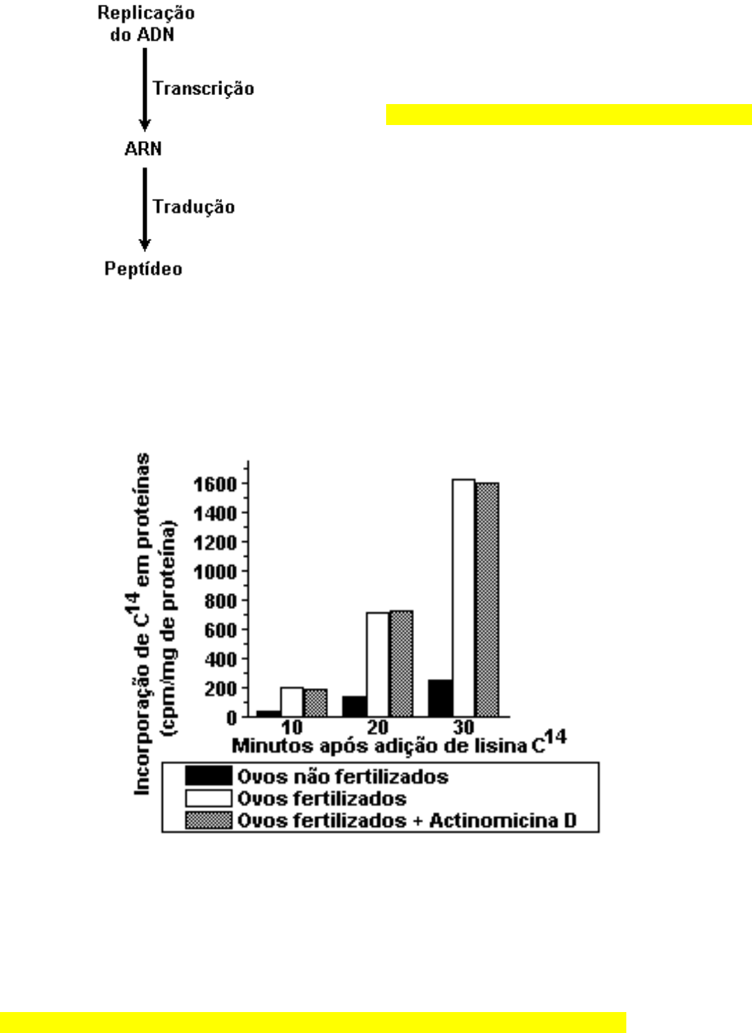 11) (Unirio 2003) A representação a seguir sintetiza o chamado dogma central da biologia celular. Este fluxo unidirecional de informações torna-se exceção nos retrovírus, como o da AIDS, pois esses vírus: a) têm a capacidade de sintetizar um peptídeo diretamente a partir do ADN. b) possuem transcriptase reversa que, a partir do ARN- m, orienta a tradução. c) têm a capacidade de sintetizar ARN-m a partir do ADN viral. d) possuem transcriptase reversa que, a partir do peptídeo, orienta a síntese do ARN-m. e) têm a capacidade de sintetizar ADN a partir de ARN. TEXTO PARA A PRÓXIMA QUESTÃO: Professor Astrogildo combinou com seus alunos visitar uma região onde ocorria extração de minério a céu aberto, com a intenção de mostrar os efeitos ambientais produzidos por aquela atividade. Durante o trajeto, professor Astrogildo ia propondo desafios a partir das situações do dia vivenciadas ao longo do passeio. Algumas das questões propostas por professor Astrogildo estão apresentadas a seguir para que você responda. 12) (Uerj 1999) O gráfico a seguir compara a síntese de proteínas em ovos fertilizados e não fertilizados de ouriço-do-mar, podendo-se notar um grande aumento desse tipo de síntese nos ovos fertilizados. Essa síntese foi monitorada pela incorporação, na proteína das células, do aminoácido lisina marcado radioativamente com carbono C14. O antibiótico actinomicina D inibe o processo de transcrição do DNA. No experimento demonstrado, ele foi adicionado junto com a lisina marcada. Analisando o efeito da adição do antibiótico sobre a incorporação do aminoácido de ovos fertilizados, podemos concluir que: a) a estabilidade das proteínas sintetizadas após a fertilização foi aumentada acentuadamente. b) a velocidade de tradução de DNA em RNA foi bastante acelerada pela fertilização dos ovos. c) a velocidade de transcrição de RNA mensageiro em proteína foi diminuída após a fertilização d) o RNA usado na síntese protéica em ovos fertilizados já tinha sido anteriormente sintetizado