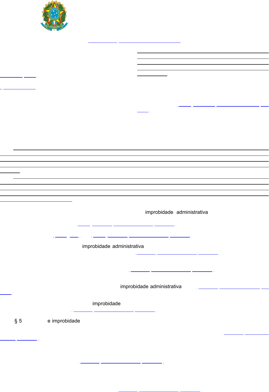 Presidência da República Casa Civil Subchefia para Assuntos Jurídicos LEI Nº 8.429, DE 2 DE JUNHO DE 1992 Texto compilado (Vide ADI 7236) Dispõe sobre as sanções aplicáveis aos agentes públicos nos casos de enriquecimento ilícito no exercício de mandato, cargo, emprego ou função na administração pública direta, indireta ou fundacional e dá outras providências. Dispõe sobre as sanções aplicáveis em virtude da prática de atos de improbidade administrativa, de que trata o § 4º do art. 37 da Constituição Federal; e dá outras providências. (Redação dada pela Lei nº 14.230, de 2021) O PRESIDENTE DA REPÚBLICA, Faço saber que o Congresso Nacional decreta e eu sanciono a seguinte lei: CAPÍTULO I Das Disposições Gerais Art. 1° Os atos de improbidade praticados por qualquer agente público, servidor ou não, contra a administração direta, indireta ou fundacional de qualquer dos Poderes da União, dos Estados, do Distrito Federal, dos Municípios, de Território, de empresa incorporada ao patrimônio público ou de entidade para cuja criação ou custeio o erário haja concorrido ou concorra com mais de cinqüenta por cento do patrimônio ou da receita anual, serão punidos na forma desta lei. Parágrafo único. Estão também sujeitos às penalidades desta lei os atos de improbidade praticados contra o patrimônio de entidade que receba subvenção, benefício ou incentivo, fiscal ou creditício, de órgão público bem como daquelas para cuja criação ou custeio o erário haja concorrido ou concorra com menos de cinqüenta por cento do patrimônio ou da receita anual, limitando-se, nestes casos, a sanção patrimonial à repercussão do ilícito sobre a contribuição dos cofres públicos. Art. 1º O sistema de responsabilização por atos de improbidade administrativa tutelará a probidade na organização do Estado e no exercício de suas funções, como forma de assegurar a integridade do patrimônio público e social, nos termos desta Lei. (Redação dada pela Lei nº 14.230, de 2021) Parágrafo único. (Revogado). (Redação dada pela Lei nº 14.230, de 2021) § 1º Consideram-se atos de improbidade administrativa as condutas dolosas tipificadas nos arts. 9º, 10 e 11 desta Lei, ressalvados tipos previstos em leis especiais. (Incluído pela Lei nº 14.230, de 2021) § 2º Considera-se dolo a vontade livre e consciente de alcançar o resultado ilícito tipificado nos arts. 9º, 10 e 11 desta Lei, não bastando a voluntariedade do agente. (Incluído pela Lei nº 14.230, de 2021) § 3º O mero exercício da função ou desempenho de competências públicas, sem comprovação de ato doloso com fim ilícito, afasta a responsabilidade por ato de improbidade administrativa. (Incluído pela Lei nº 14.230, de 2021) § 4º Aplicam-se ao sistema da improbidade disciplinado nesta Lei os princípios constitucionais do direito administrativo sancionador. (Incluído pela Lei nº 14.230, de 2021) § 5º Os atos de improbidade violam a probidade na organização do Estado e no exercício de suas funções e a integridade do patrimônio público e social dos Poderes Executivo, Legislativo e Judiciário, bem como da administração direta e indireta, no âmbito da União, dos Estados, dos Municípios e do Distrito Federal. (Incluído pela Lei nº 14.230, de 2021) § 6º Estão sujeitos às sanções desta Lei os atos de improbidade praticados contra o patrimônio de entidade privada que receba subvenção, benefício ou incentivo, fiscal ou creditício, de entes públicos ou governamentais, previstos no § 5º deste artigo. (Incluído pela Lei nº 14.230, de 2021) § 7º Independentemente de integrar a administração indireta, estão sujeitos às sanções desta Lei os atos de improbidade praticados contra o patrimônio de entidade privada para cuja criação ou custeio o erário haja concorrido ou concorra no seu patrimônio ou receita atual, limitado o ressarcimento de prejuízos, nesse caso, à repercussão do ilícito sobre a contribuição dos cofres públicos. (Incluído pela Lei nº 14.230, de 2021) 25/07/2024, 23:30 L8429 https://www.planalto.gov.br/ccivil_03/leis/l8429.htm 1/17 http://legislacao.planalto.gov.br/legisla/legislacao.nsf/Viw_Identificacao/lei%208.429-1992?OpenDocument https://www.planalto.gov.br/ccivil_03/leis/L8429compilada.htm https://portal.stf.jus.br/processos/detalhe.asp?incidente=6475588 https://www.planalto.gov.br/ccivil_03/_Ato2019-2022/2021/Lei/L14230.htm#art1 https://www.planalto.gov.br/ccivil_03/_Ato2019-2022/2021/Lei/L14230.htm#art1 https://www.planalto.gov.br/ccivil_03/_Ato2019-2022/2021/Lei/L14230.htm#art2 https://www.planalto.gov.br/ccivil_03/_Ato2019-2022/2021/Lei/L14230.htm#art4 https://www.planalto.gov.br/ccivil_03/_Ato2019-2022/2021/Lei/L14230.htm#art2 https://www.planalto.gov.br/ccivil_03/_Ato2019-2022/2021/Lei/L14230.htm#art2 https://www.planalto.gov.br/ccivil_03/_Ato2019-2022/2021/Lei/L14230.htm#art2 https://www.planalto.gov.br/ccivil_03/_Ato2019-2022/2021/Lei/L14230.htm#art2 https://www.planalto.gov.br/ccivil_03/_Ato2019-2022/2021/Lei/L14230.htm#art2 https://www.planalto.gov.br/ccivil_03/_Ato2019-2022/2021/Lei/L14230.htm#art2 https://www.planalto.gov.br/ccivil_03/_Ato2019-2022/2021/Lei/L14230.htm#art2 https://www.planalto.gov.br/ccivil_03/_Ato2019-2022/2021/Lei/L14230.htm#art2 https://www.planalto.gov.br/ccivil_03/_Ato2019-2022/2021/Lei/L14230.htm#art2 https://www.planalto.gov.br/ccivil_03/_Ato2019-2022/2021/Lei/L14230.htm#art2 Highlight Highlight Highlight § 8º Não configura improbidade a ação ou omissão decorrente de divergência interpretativa da lei, baseada em jurisprudência, ainda que não pacificada, mesmo que não venha a ser posteriormente prevalecente nas decisões dos órgãos de controle ou dos tribunais do Poder Judiciário. (Incluído pela Lei nº 14.230, de 2021) (Vide ADI 7236) Art. 2° Reputa-se agente público, para os efeitos desta lei, todo aquele que exerce, ainda que transitoriamente ou sem remun