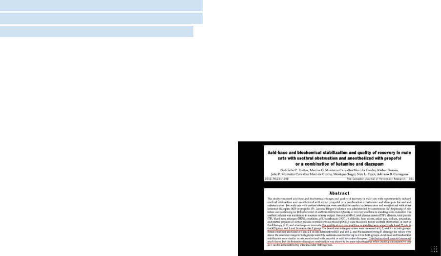 DISSOCIATIVA RESUMO NAVE Hipnose, sono e inconsciência -> agentes anestésicos gerais inalatórios e intravenosos (provocam depressão generalizada do SNC) Na dissociativa NÃO HÁ depressão do sistema nervoso central, inclusive algumas áreas podem ser estimuladas -Pode ser adm por via IM -Promove analgesia -Janela terapêutica é amplas (se refere à faixa de valores de doses que otimizam o equilíbrio entre a eficácia e a toxicidade do medicamento) - Deve ser usado em associação para equilibrar os efeitos indesejáveis desses medicamentos. Principal representante: Cetamina -Mistura racêmica composta por dois enantiômeros Molécula S+ > analgesia R- > ligada ao efeitos indesejáveis da Cetamina -Bloqueio dos receptores NMDA conferem analgesia -Atua nos receptores opiodes (parte do efeito analgesico, pode ser revertido com o uso da analoxona) - os dissociativos promovem analgesia especialmente somática (um grande diferença quando comparada aos anestésicos gerais) Anteriormente se acreditava que a Cetamina não era biotransformada nos gatos, mas na verdade esse anestésico é biotransformado tanto em felídeos como em canídeos, gerando um metabólito ativo a norcetamina, que tem 1/3 da capacidade anestésica da cetamina. A diferença é que os canídeos conseguem quebrar a norcetamina e eliminar metabólitos inativos. Os felídeos não conseguem quebrar e excretam a norcetamina de forma intacta. Então em pacientes com doença renal, temos o prolongamento da anestesia dissociativa. Tomar cuidado com a adm em gatos. Anestesia em gatos com obstrução uretral, com propofol e cetamina. Os animais anestesiados com cetamina tiveram uma demora maior para voltar da anestesia. Hidratação do paciente para a excreção. Tiletamina -Fórmula em pó (volume de adc melhor) -Mais potente do grupo -Comercialmente a apresentação do fármaco e um associação com o Zolazepam (benzodiazepínico) Em gatos o zolazepam tem um tempo de ação maior que o da tiletamina. > recuperação tende a ser mais calma Em cães o zolazepam tem um tempo de ação menor que o da tiletamina. > Então praticamente todos os cães que recebem essa associação tem uma péssima recuperação. Mecanismo de ação: - O principal neurotransmissor excitatório do sistema nervoso central é o Glutamato (atua principalmente nos receptores NMDA, presentes em cerca de 80% dos neurônios) A ativação desses receptores promove excitação neuronal Os anestésicos dissociativos são bloqueadores de receptores NMDA, de modo não competitivo ao glutamato (ou seja, atuam em outros sítio de ligação) Nesse caso há a depressão do SNC inibindo o sistema nervoso ↓ Estímulo de tato, dor , temperatura e visão, (exceto olfato) Bloqueio da recaptação de catecolaminas (há potencialização do efeito) - Estimulam o sistema límbico Estimula do SNC Relacionados a emoções, aprendizagem, memória, prazer, sonhos… Estimulação do sistema límbico e depressão do córtex cerebral A ANIMAL ESTÁ ANESTESIADO, MAS NÃO ESTÁ EM HIPNOSE -não pode considerar como anestesia geral Bloqueiam a recep. muscarínicos Ativação do sistema simpático Inativação do sistema parassimpático Efeito clínicos: SNC Aumento do fluxo sanguíneo cerebral e vasodilatação -> Aumento da PIC A convulsão gerada com o uso desses medicamentos está relacionada ao aumento da pressão intracraniana (isso só ocorre em pacientes com histórico de convulsão- não é recomendado usar anestesia dissociativa nesses animais) -Manutenção dos reflexos protetores (oculopalpebral e o laringotraqueal) -Centralização de globo ocular -Presença de nistagmo S. CARDIOVASCULAR Esimulação adrenergica: -Taquicardia -Hipertensão -Aumento do DC -Diminuição do VS Bom em pacientes hipertensos e desidratados Ruim em pacientes cardiopata, pois em taquicardia o miocárdio demanda mais O2 SISTEMA PULMONAR O padrão respiratório muda pouco na anestesia dissociativa O animal tem um tempo expiratório maior e um tempo inspiratório menor > respiração apnêustica Aumento de secreções respiratórias, o que pode dificultar a respiração Geralmente os animais que recebem anestesia dissociativa, não são intubados e não recebem suporte respiratório de O2. Há um dificuldade de intubação pela manutenção do reflexo laringotraqueal, mas que pode ser feita em grande animais. E não há impedimento para a utilização de uma máscara de O2 para melhorar a frança de o2 inspirada. Esse estudo demonstra a indução de equinos em anestesia dissociativa, por volta de 15 e com cerca de 10 min, os animais já apresentam hipoxemia. Demonstrando a importância da suplementação de o2, mesmo em procedimentos curtos. SISTEMA MUSCULAR Os anestésicos dissociativos promovem rigidez muscular, podendo confluir para movimentos involuntários. Por isso a importância da associação do miorrelaxante com o anestésico dissociativo. Geralmente um benzo ou a2 OUTROS EFEITOS ↑ PIO - não é interessante utilizar essa modalidade anestésica em pacientes que precisem dessa estabilidade ocular Efeito anti-inflamatório, modulando a produção de citocina - Pode ser interessante no protocolo de pacientes com endotoxemia. USO CLÍNICO Anestésico base- anestesia dissociativa Essa modalidade permite alguns procedimentos superficiais e ambulatoriais. p. ex., orquiectomia, dermorrafia. + Bloqueio local Essa modalidade anestésica não viabiliza acesso em cavidades, pois o animal sente todas as dores do ato. p. ex., OSH, cirurgias ortopédicas. Indutor anestésico- Para seguir para anestesia geral. Sempre associada a miorrelaxantes (é possível também com propofol) Atualmente essa é a base da indução de equinos e bovinos no momento. SEDAÇÃO (????) Doses baixas de cetamina, como p. ex., metade da dose anestésica promove a imobilização. Sedação: depressão generalizada no SNC sem hipnose. Uso de cetamina na MPA, que seja com algum outro medicamento, frequentemente o animal pode a