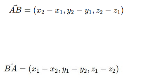 Não, os vetores AB⃗ e BA⃗ não são iguais, mesmo sendo definidos pelos mesmos pontos AB. São vetores opostos. Explicação: · O vetor AB⃗, definido pelos pontos A(x1,y1,z1) e B(x2,y2,z2), é obtido subtraindo as coordenadas de A das de B: Ele aponta de A para B. · O vetor BA⃗, mostrado pelos mesmos pontos, é obtido subtraindo as coordenadas de B das de A: Ele aponta de B para A. image1.png image2.png