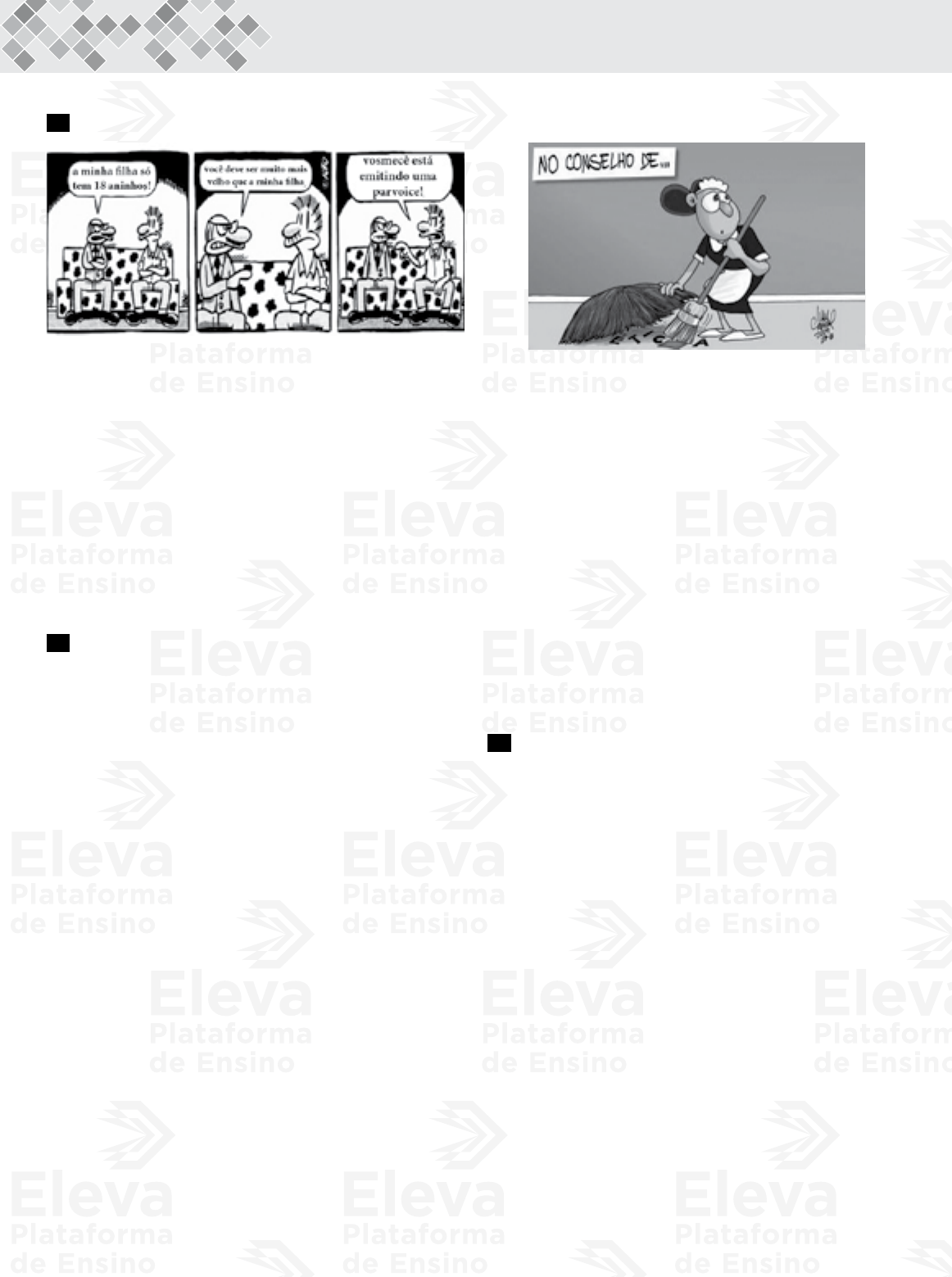 16 Ano Letivo: 2017 Códigos: ingLês – 31002 | espAnhoL – 31202 50 Adão Iturrusgarai – Aline Folha de S. Paulo, 31 ago. 2008. As variações e as mudanças nas línguas estão correlacionadas a fatores sociais. Na tira, a dedução do pai da garota é confirmada e gera o efeito de humor, pois seu interlocutor apresenta um vocabulário A urbano, típico de quem nasce nas grandes metrópoles brasileiras. B formal, relativo a quem frequenta a escola por muitos anos. C elitizado, encontrado entre falantes de classe socioeconômica alta. D especial, restrito a quem frequenta os espaços da juventude. E conservador, representado por uma fala arcaica para a geração atual. 51 TexTo I (...) Comunicação não se faz somente com palavras. Gestos, toques, imagens visuais e sonoras, até sensações olfativas ou gustativas fazem parte dos recursos de que se dispõem para a comunicação. Como as palavras, os sentidos também adaptam o ser humano ao meio sócio-ambiental, constituindo fontes de conhecimentos. Segundo Maria Helena Cozzolino, na obra Metodologia da Linguagem, “para compreender o mundo de forma plena e se comunicar, o ser humano usa as duas formas de expressão: verbal e não verbal, que são muitas vezes campos complementares e simultâneos”. A comunicação verbal e a não verbal se complementam, tornando mais rica, compreensível e acessível a comunicação humana. Em outras palavras, quando se expressa pela palavra, usa-se o raciocínio e a compreensão. A partir daí avança-se no conhecimento, etapa por etapa. Quando se usa uma linguagem não-verbal, como o mapa, a apreensão é imediata e global, já nas explicações verbais há uma sequência organizada e imediata. As duas formas de expressão são importantes e funcionais para a comunicação humana. (...) Disponíve em: www.faculdadefar.edu.br. (adaptado). TexTo II Disponivel em: www.ivancabral.blogspot.com. No texto I, discorre-se sobre a linguagem verbal e a não verbal, qualificando-as como igualmente relevantes no processo comunicativo e apontando-as como representativas, muitas vezes, de “campos complementares e simultâneos”. A esse respeito, o texto II A contraria as ideias desenvolvidas no texto II, por dispensar, para seu entendimento, os elementos verbais. B objetiva formular crítica voltada para o âmbito político, percebida justamente pela interação dos elementos verbais e não verbais. C tem o seu sentido garantido pela comunicação não verbal, que, sozinha, é capaz de esclarecer os objetivos do chargista. D apresenta lacuna na linguagem verbal (marcada pelas reticências), que inibe a possibilidade de entendimento dos propósitos autorais. E contém elementos do campo não verbal que não estão em consonância com a linguagem verbal. 52 Erro de português Quando o português chegou Debaixo duma bruta chuva Vestiu o índio Que pena! Fosse uma manhã de sol O índio tinha despido O português Oswald de Andrade A linguagem das manifestações artísticas do âmbito literário conta com o recurso da conotação, por meio do qual as palavras agregam valores significativos expressivos, diferentes dos que usualmente apresentam no chamado “estado de dicionário”. No texto acima, esse emprego conotativo se revela A no fato de o autor atribuir ao português conquistador uma lamentável atitude predatória em relação à terra conquistada. B no uso do verbo “vestir”, indicando a imposição, aos índios, de valores dos portugueses. C na utilização do verbo “chegar” para designar a presença dos portugueses em terras brasileiras. D no uso do verbo “despir”, indicando a vantagem do convívio do homem com a natureza. E pela presença das expressões “bruta chuva” e “manhã de sol” para indicar, pela ordem, ações positivas e negativas.