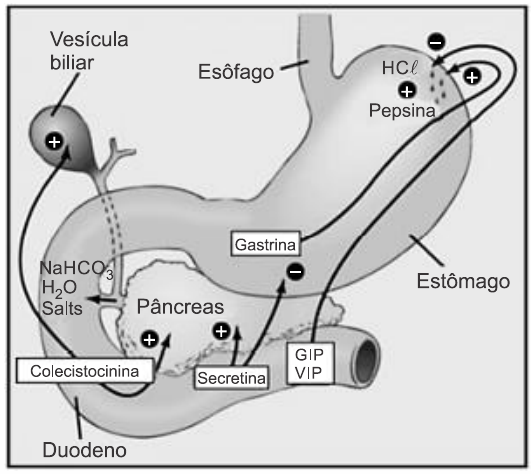 QUESTÕES PARA CASA 01) (Fatec 1999) Associe os grupos da Coluna I com as estruturas da Coluna II. Coluna I 1. Molusco 2. Porífera 3. Nematelminto 4. Artrópodo 5. Platelminto 6. Cnidário Coluna II A. Sistema digestivo completo B. Células digestivas C. Cavidade digestiva com células digestivas Assinale a alternativa que contém as associações corretas. a) 1A; 2C; 3B; 4A; 5C; 6A b) 1A; 2B; 3B; 4A; 5B; 6C c) 1A; 2C; 3A; 4A; 5A; 6A d) 1A; 2B; 3A; 4A; 5C; 6C e) 1A; 2B; 3C; 4A; 5B; 6C 02) (Pucmg 2015) A figura apresenta a origem e a ação positiva ou negativa de cinco hormônios gastrointestinais (gastrina, colecistocinina, secretina, GIP – proteína gástrica inibitória, VIP – peptídeo intestinal vasoativo), que atuam no controle da digestão. Com base na figura e em seus conhecimentos sobre o assunto, assinale a afirmação INCORRETA. a) A presença de alimento no estômago é estímulo para a liberação de gastrina, que age no próprio órgão estimulando a mobilidade e a liberação de secreções exócrinas. b) O hormônio liberado em resposta ao pH ácido do quimo e à presença de gordura estimula a liberação de bicarbonato e enzimas pela vesícula biliar. c) A passagem do quimo para o duodeno desencadeia respostas inibitórias da função gástrica, mas o efeito dessa inibição depende do esvaziamento do estômago. d) A secretina age no pâncreas estimulando a liberação de bicarbonato e enzimas e, no estômago, inibindo a liberação da secreção endócrina. 03) (Mackenzie 1997) Tiflossole e cecos intestinais são estruturas presentes no tubo digestivo de alguns animais. Nos seres humanos, suas funções são desempenhadas: a) pelas vilosidades e microvilosidades intestinais. b) pelo estômago. c) pelo fígado. d) pela mucosa gástrica. e) pelo esôfago. 04) (Uel 2007) Muitos vertebrados apresentam notáveis modificações estruturais no aparelho digestório, de forma que seja possível aproveitar mais eficientemente os recursos alimentares. Com base no texto e nos conhecimentos sobre o tema, considere as afirmativas a seguir: I. O papo do pardal é uma parte dilatada do estômago no qual ocorre acúmulo e digestão química do alimento, permitindo, desta forma, servi-lo já digerido aos seus filhotes. II. O intestino do tubarão-branco é relativamente curto, mas, para aumentar a superfície de absorção de nutrientes por esse órgão, apresenta uma estrutura conhecida como válvula espiral. III. A ausência de dentes nas aves restringe a exploração de diferentes itens alimentares, limitando o número de grupos tróficos nessa classe, ao contrário do que ocorre nos mamíferos, que apresentam dentes. IV. Carneiros apresentam estômago dividido em quatro câmaras e uma associação mutualística com microrganismos produtores de celulase. A alternativa que contém todas as afirmativas corretas é: a) I e II b) I e III c) II e IV d) I, II e IV e) II, III e IV