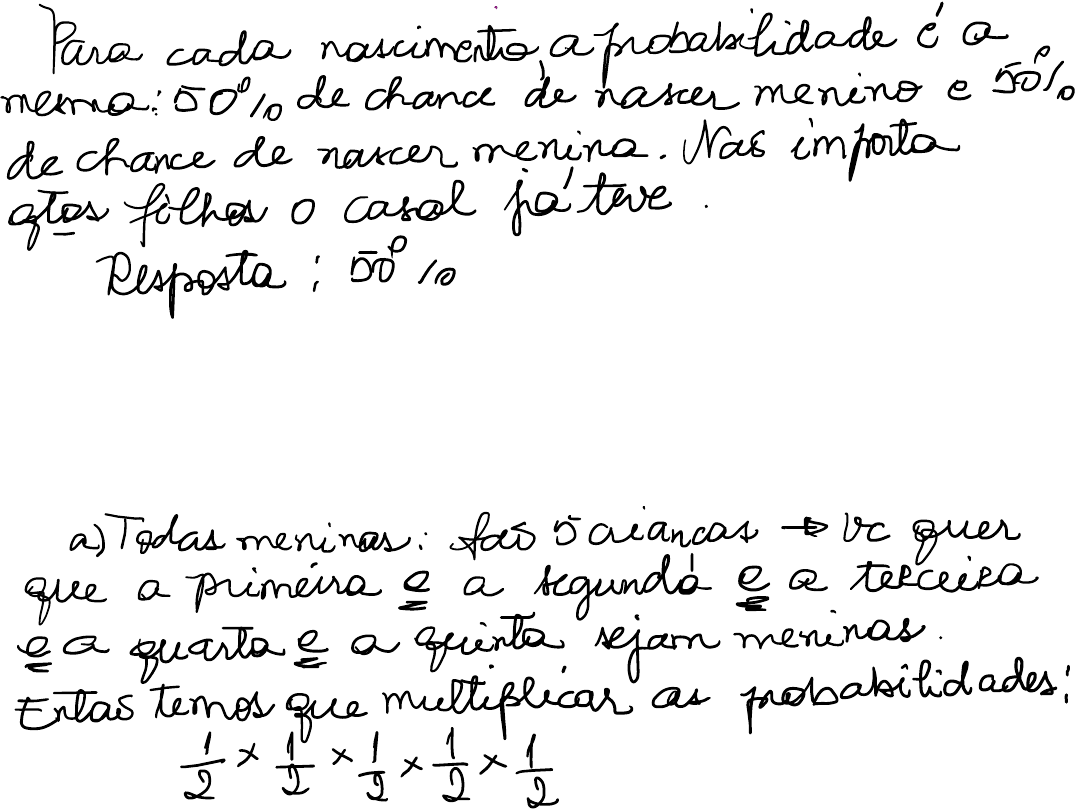 1- Um casal tem duas filhas e está esperando a terceira criança. Seu desejo é que seja um menino. Qual a probabilidade desse desejo ser atendido? 2- Cinco crianças nasceram em uma mesma noite em um certo hospital. Qual é a probabilidade de que: a) todas as cinco sejam meninas? b) todas as cinco sejam do mesmo sexo (isto é, todos meninos ou todas meninas)? 3- 3- Ao investigar a história genealógica de um paciente do sexo masculino, com 6 meses de idade, que manifestava a síndrome de Hurler, constatou-se que ele era o terceiro filho de um casal normal, cuja primeira filha faleceu aos 10 meses, aparentemente de pneumonia. O segundo filho desse casal era um menino com 3 anos, clinicamente normal. A mãe do paciente tinha uma única irmã, mais nova, solteira e normal. O pai do paciente tinha 2 irmãos mais velhos, normais. Cada um desses irmãos tinha duas filhas normais. O sogro da mãe do paciente também é tio paterno dela. A sogra da mãe do paciente é a filha mais nova das três geradas pela irmã do bisavô paterno do paciente. Construa o heredograma e responda: a) qual o parentesco entre os genitores do paciente? b) qual o parentesco entre os avós do paciente? c) E entre o bisavô paterno e a mãe do paciente? 4- 4- A analgesia congênita é uma condição rara, de herança autossômica recessiva. Na analgesia congênita os estímulos transmissores da dor são percebidos, porém não são interpretados como dor. Geralmente essa analgesia é acompanhada por sedação sem perda da consciência. Uma criança tem um tio materno e uma tia paterna com analgesia congênita. Qual a probabilidade de que essa criança tenha o mesmo problema? 5- A fenilcetonúria (PKU) é um distúrbio hereditário que resulta da incapacidade de metabolizar a fenilalanina obtida com a alimentação. Sem tratamento, a doença se manifesta cedo na infância e leva a problemas neurológicos e retardo mental grave. PKU é um fenótipo autossômico recessivo. Um casal pretende ter filhos e consultam um aconselhador genético pq o homem tem uma irmã com PKU , e a esposa tem um irmão com o mesmo problema. Esses são os únicos casos nas famílias de ambos. Qual a probabilidade estimada pelo aconselhador de que o casal venha a ter uma criança com fenilcetonúria? 6- A penetrância estimada para o retinoblastoma (tumor infantil da retina) é de aproximadamente 90%. Se um homem teve retinoblastoma familiar e se relaciona com uma mulher que não tem a mutação para essa doença, qual o risco de a sua prole desenvolver o retinoblastoma? 7- Uma forma comum de daltonismo, relacionada à visão de cores como o vermelho e o verde, é devida a um alelo recessivo ligado ao cromossomo X. Assim sendo, responda: a) Um casal em que ambos são portadores dessa forma de daltonismo pode ter uma criança normal? b) Pais sem daltonismo podem ter uma filha daltônica? E um filho? 8- Em certas partes da população Judaica, ocorre com maior frequencia uma doença genética chamada Doença de Tay Sachs. Essa doença é fatal, e as crianças afetadas vão a óbito nos primeiros cinco anos de vida. O alelo responsável pela doença é recessivo, ou seja, os afetados são homozigotos. Como você explica a persistência da doença na população, já que os afetados morrem muito antes da idade reprodutiva? Em outras palavras, pq o alelo não desaparece da população? 9- O sistema ABO do sangue humano é controlado por uma série de 3 alelos: A e B dominantes sobre O e codominantes entre si. Quais os tipos sanguíneos prováveis dos descendentes de um casamento onde ambos os cônjuges são do grupo A? Nas três questões seguintes, diga quem é o pai mais provável da criança: a) Mãe do tipo A, e a criança do tipo AB, um dos possíveis pais é A e o outro é B; b) Mãe do tipo O, e a criança também; um dos possíveis pais é A e o outro é AB; c) Mãe do tipo AB, e criança também; um dos possíveis pais é A e outro é AB.