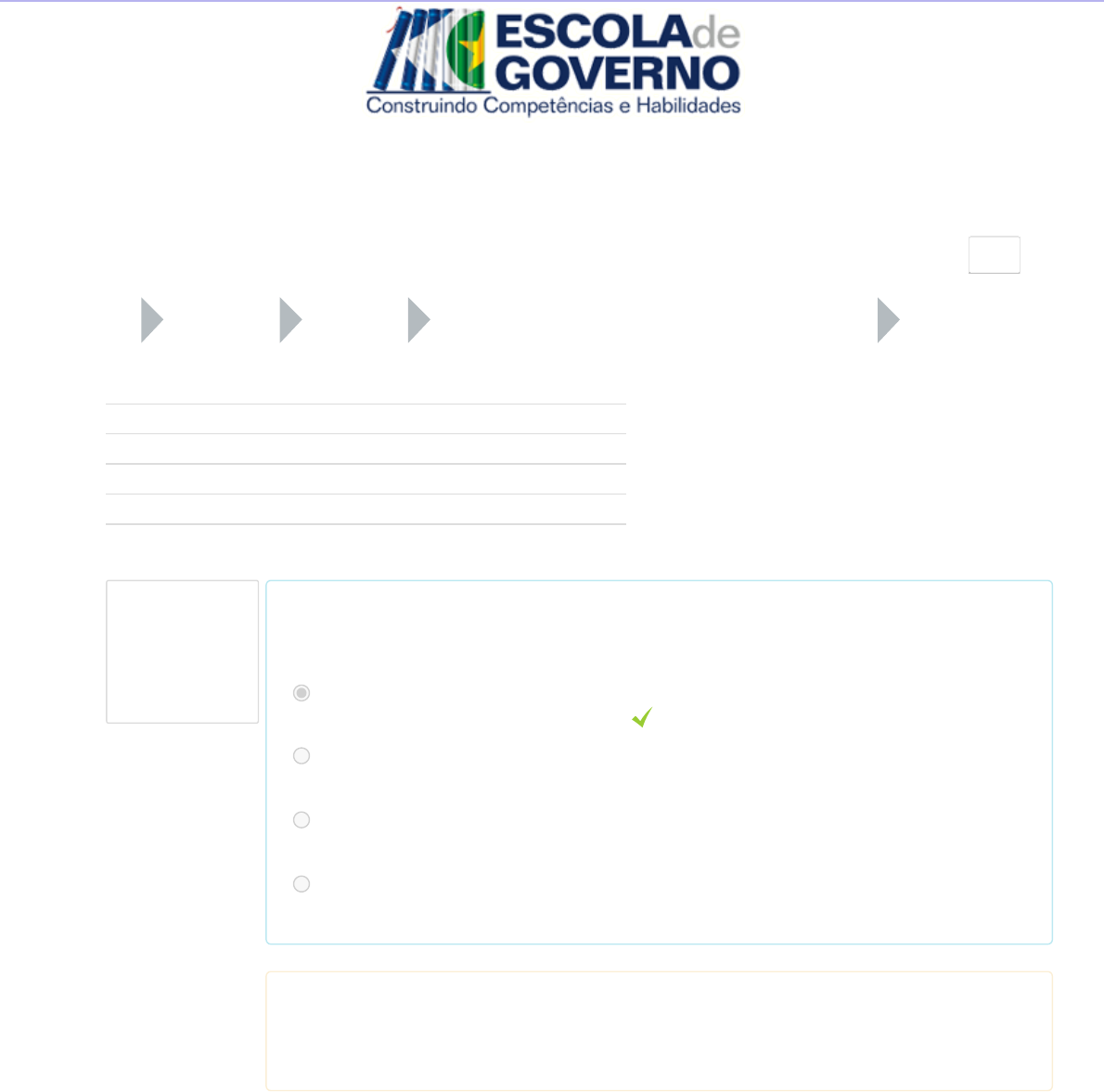 Buscar cursos Questão 1 Correto Atingiu 10,00 de 10,00 Iniciado em quarta, 13 Nov 2024, 11:01 Estado Finalizada Concluída em quarta, 13 Nov 2024, 11:10 Tempo empregado 8 minutos 7 segundos Avaliar 100,00 de um máximo de 100,00 Assinale a alternativa correta. Escolha uma: a. A gestão de risco tem por finalidade diminuir a probabilidade e o impacto de eventos negativos sobre os contratos. b. A gestão de risco não tem por finalidade aumentar a probabilidade e o impacto de eventos positivos sobre os contratos. c. As técnicas de gestão de risco em contratos não se preocupam em diminuir a probabilidade e impacto de eventos negativos. d. As técnicas de gestão de risco em projetos são inadequadas para gestão de risco em contratos. Fonte: Vídeo V405, Prof. Sidartha Carvalho, trecho 5min0s a 8min0. A resposta correta é: A gestão de risco tem por finalidade diminuir a probabilidade e o impacto de eventos negativos sobre os contratos.. Noções de Licitação, Contrato e Risco - T3/2024 Mensagens LILIAN MÁRCIA CUNHA DE MORAES 2024 Cursos NLCR0324 4 - Avaliação de Riscos Contratuais (11/11 a 17/11/2024) Q401 NLCR - Questionário de Verificação http://eadeg.gestao.mt.gov.br/ http://eadeg.gestao.mt.gov.br/ http://eadeg.gestao.mt.gov.br/message/index.php http://eadeg.gestao.mt.gov.br/ http://eadeg.gestao.mt.gov.br/course/index.php?categoryid=14 http://eadeg.gestao.mt.gov.br/course/view.php?id=184 http://eadeg.gestao.mt.gov.br/course/view.php?id=184§ion=4 http://eadeg.gestao.mt.gov.br/mod/quiz/view.php?id=10035 Questão 2 Correto Atingiu 10,00 de 10,00 Questão 3 Correto Atingiu 10,00 de 10,00 Assinale a alternativa correta. Escolha uma: a. A transferência de todos os riscos ao contratado não causará impactos nos preços das licitações e contratos licitados. b. A gestão e alocação de risco em contratações públicas não compõe em hipótese alguma a equação econômico-financeira do contrato licitado. c. A alocação indevida ou inadequada dos riscos além das possibilidades do contratado não repercute em ação contrária aos objetivos da alocação de risco em si considerada. d. A gestão de riscos em contratações abrange necessariamente a alocação de riscos que causem impacto econômico-financeiro nos contratos licitados. Fonte: Texto T401, Prof. Lindineide Cardoso, pg. 17 e 19. A resposta correta é: A gestão de riscos em contratações abrange necessariamente a alocação de riscos que causem impacto econômico-financeiro nos contratos licitados.. Assinale a alternativa correta. Escolha uma: a. A NBR ISO-31000 2018 estabelece que a identificação de riscos é processo pelo qual é compreendida a natureza e características detalhada de cada risco. b. A NBR ISO-31000 2018 não indica nenhuma espécie de técnica de identificação e caracterização de riscos, limitando-se a recomendar que sejam os riscos apurados e caracterizados. c. A NBR ISO-31000 2018 indica a técnica de ameaças e oportunidades como uma das técnicas que podem ser utilizadas para identificar, caracterizar e documentar riscos em licitações e contratos. d. A NBR ISO-31000 2018 estabelece que a identificação de riscos deva se concentrar exclusivamente nos riscos contratuais e licitatórios cujas fontes estão sobre o controle da Administração. Fonte: Texto T404, ISO-31000-2018, pg.12 e 13. A resposta correta é: A NBR ISO-31000 2018 indica a técnica de ameaças e oportunidades como uma das técnicas que podem ser utilizadas para identificar, caracterizar e documentar riscos em licitações e contratos.. Questão 4 Correto Atingiu 10,00 de 10,00 Questão 5 Correto Atingiu 10,00 de 10,00 Assinale a alternativa correta. Escolha uma: a. O planejamento da gestão de risco de contratos e licitações deve obrigatoriamente possuir resposta planejada para toda e qualquer evento incerto que possa ser identificado. b. A identificação e planejamento de respostas a riscos cessa depois que foi celebrado o respectivo contrato licitado. c. Considera-se opinião especializada em risco é aquela que foi recolhida perante pessoa experiente em relação a respectiva situação ou ação relativa a um risco específico. d. Opinião especializada em risco é aquela que foi recolhida através da técnica de brainstorming entre os mais altos gestores da organização. Fonte: Vídeo V407, Prof. Sidartha Carvalho, trecho 11min0s a 16min0s. A resposta correta é: Considera-se opinião especializada em risco é aquela que foi recolhida perante pessoa experiente em relação a respectiva situação ou ação relativa a um risco específico.. Assinale a alternativa correta. Escolha uma: a. A técnica de análise de valor monetário esperado é uma técnica de análise qualitativa de risco que calcula as ameaças em termos de valor positivo. b. A análise quantitativa dos riscos é caracterizada pela medição e análise numérica das dimensões de probabilidade e impacto que podem atingir um contrato ou uma licitação. c. A matriz de análise qualitativa de risco utiliza a combinação entre impacto em termos monetários versus o percentual de probabilidade de ocorrência do risco para assim classificar as eventuais ameaças por ordem de valor monetário. d. A técnica de análise por arvore de decisão é uma técnica de análise qualitativa de risco que calcula a probabilidade de ocorrência de um risco identificado, medido e considerado. Fonte: Vídeo V406, Prof. Sidartha Carvalho, trecho 14min0s a 26min0s. A resposta correta é: A análise quantitativa dos riscos é caracterizada pela medição e análise numérica das dimensões de probabilidade e impacto que podem atingir um contrato ou uma licitação.. Questão 6 Correto Atingiu 10,00 de 10,00 Questão 7 Correto Atingiu 10,00 de 10,00 Assinale a alternativa correta. Escolha uma: a. O princípio pureza de que trata a NBR ISO-31000-2018 considera que a gestão de risco deva ser clara e transparente quanto as limitações e incertezas das informações ut