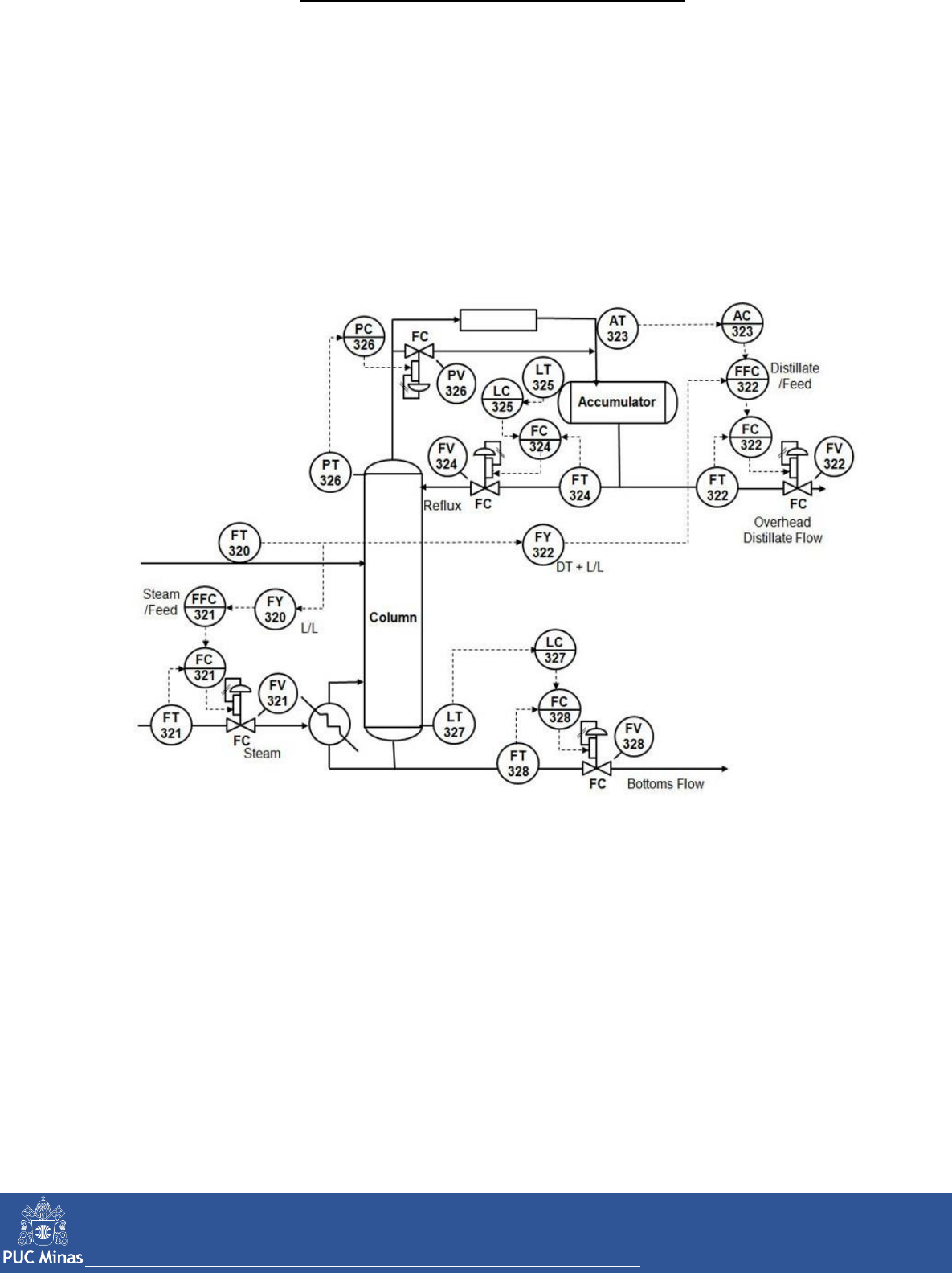 Automação e Instrumentação Industrial Exercício avaliativo: Identificação Funcional e Pressão 3 pontos _________________________________________________________________________ Página | 1 Prof. Talisson de Souza Barbosa Nome: Thayssa Cristina Silva RA: 671566 Data: 03/09/2024 1. Para o diagrama de P&id mostrado abaixo, faça: a. Identifique todos os instrumentos de acordo com a ISA 5.1, incluindo os tipos de sinais presentes nas linhas. b. Qual a função da malha 321? Automação e Instrumentação Industrial Exercício avaliativo: Identificação Funcional e Pressão 3 pontos _________________________________________________________________________ Página | 2 Prof. Talisson de Souza Barbosa Automação e Instrumentação Industrial Exercício avaliativo: Identificação Funcional e Pressão 3 pontos _________________________________________________________________________ Página | 3 Prof. Talisson de Souza Barbosa Automação e Instrumentação Industrial Exercício avaliativo: Identificação Funcional e Pressão 3 pontos _________________________________________________________________________ Página | 4 Prof. Talisson de Souza Barbosa 2. Para o diagrama de P&id mostrado abaixo, faça: a. Identifique todos os instrumentos de acordo com a ISA 5.1, incluindo os tipos de sinais presentes nas linhas. Transmissor e indicador de vazão, localizado na malha 101, instrumento compartilhado montado em campo, acionado por sinal elétrico. Sensor de vazão, localizado na malha 101, instrumento compartilhado, montado em campo, acionado por sinal elétrico. Controlador de estado, presença ou sequência de eventos, localizado nas malhas 101, 102, 103 e 104, controlador programável com locação principal normalmente acessível ao operador, pode ser acionado por sinal elétrico (101 e 102), sinal elétrico binário (104) ou sinal de software (103). Controlador de estado, presença ou sequência de eventos, localizado nas malhas 101 e 103, instrumento compartilhado com locação principal normalmente acessível ao operador, acionado por sinal elétrico. Automação e Instrumentação Industrial Exercício avaliativo: Identificação Funcional e Pressão 3 pontos _________________________________________________________________________ Página | 5 Prof. Talisson de Souza Barbosa Chave de alto nível, localizado nas malhas 102, 104-1 e 104-2, instrumento discreto, montado em campo, acionado por sinal elétrico binário. Chave de baixo nível, localizado nas malhas 104-1 e 104-2, instrumento discreto, montado em campo, acionado por sinal elétrico. Transmissor indicador de nível, localizado na malha 103, instrumento discreto, montado em campo, acionado por sinal elétrico. Indicador de temperatura, localizado nas malhas 102 e 105, instrumento discreto, montado em campo, acionado por sinal elétrico. (OBS: na malha 102 está escrito T1, não sei se foi erro de digitação, portanto coloquei como indicador de temperatura assim como na malha 105 que está como TI.) 3. Uma oficina mecânica utiliza um sistema hidráulico para levantar carros durante manutenções. O sistema é composto por dois cilindros conectados, um pequeno (cilindro mestre) e um grande (cilindro escravo). O cilindro mestre tem um pistão com diâmetro de 2 cm, e o cilindro escravo tem um pistão com diâmetro de 20 cm. Um mecânico aplica uma força de 150 N sobre o pistão do cilindro mestre. Considerando que o sistema é ideal (sem perdas) e obedece ao princípio de Pascal: a. Calcule a pressão gerada no fluido hidráulico pelo cilindro mestre. 𝐴1 = 𝜋 ( 𝑑1 2 ) 2 = 𝜋 ( 2 2 ) 2 = 𝜋 𝑐𝑚2 𝑃 = 𝐹1 𝐴1 = 150 𝜋 ≅ 47,75 𝑁/𝑐𝑚2 𝑃 = 47,75 𝑁/𝑐𝑚2 b. Determine a força exercida pelo pistão do cilindro escravo sobre o carro. 𝐴2 = 𝜋 ( 𝑑2 2 ) 2 = 𝜋 ( 20 2 ) 2 = 100𝜋 𝑐𝑚2 𝐹2 = 𝑃𝐴2 = 47,75 ∗ 100𝜋 = 15000𝑁 𝐹2 = 15000𝑁 Automação e Instrumentação Industrial Exercício avaliativo: Identificação Funcional e Pressão 3 pontos _________________________________________________________________________ Página | 6 Prof. Talisson de Souza Barbosa c. Se o sistema for utilizado para levantar um carro de 1500 kg, o sistema será capaz de levantar o carro? Justifique sua resposta. 𝑃𝑐𝑎𝑟𝑟𝑜 = 𝑚𝑔 𝑃𝑐𝑎𝑟𝑟𝑜 = 1500 ∗ 10 𝑚/𝑠2 𝑃𝑐𝑎𝑟𝑟𝑜 = 15000 𝑁 Portanto, o sistema é capaz de levantar o carro, pois a força do cilindro escravo é suficiente para equilibrar o carro. d. Se o carro deve ser elevado por 10cm, qual deve ser o deslocamento do cilindro mestre? 𝑊 = 𝐹1𝑑1 = 𝐹2𝑑2 𝑑1 = 𝐹2𝑑2 𝐹1 = 15000 ∗ 10 150𝑁 = 1000𝑐𝑚 𝑑1 = 10𝑚 4. Em um processo industrial, deseja-se medir a vazão volumétrica de um fluido que escoa através de uma tubulação horizontal de 10 cm de diâmetro. Para isso, um tubo de Pitot é utilizado para medir a velocidade do fluido no centro da tubulação. A diferença de pressão registrada entre a pressão total e a pressão estática é de 1200 Pa. Considere que o fluido é água com densidade 𝜌 = 1000 𝑘𝑔/𝑚3 = 1000, e que a aceleração da gravidade é 9,81 𝑚/𝑠2 a. Calcule a velocidade do fluido no centro da tubulação usando as medições do tubo de Pitot. ΔP = ( 1 2 ) ρ𝑣2 𝑣 = √2 ΔP ρ → 𝑣 = √2 1200 1000 𝑣 = 1,55 m/s b. Determine a vazão volumétrica do fluido na tubulação. A = π ( d 2 ) 2 = π ( 0,1 2 ) 2 𝐴 ≅ 0,00785 𝑚2 𝑄 = 𝐴𝑣 = 0,00785 ∗ 1,55 𝑄 ≅ 0,0122 𝑚3/𝑠 c. Se a vazão necessária para o processo for de 0,08 𝑚3/𝑠, o sistema está operando conforme a especificação? Justifique sua resposta. Não, pois a vazão medida foi igual 0,0122 m3/s, que é menor que a vazão necessária para operar. Automação e Instrumentação Industrial Exercício avaliativo: Identificação Funcional e Pressão 3 pontos ______________________________________________________