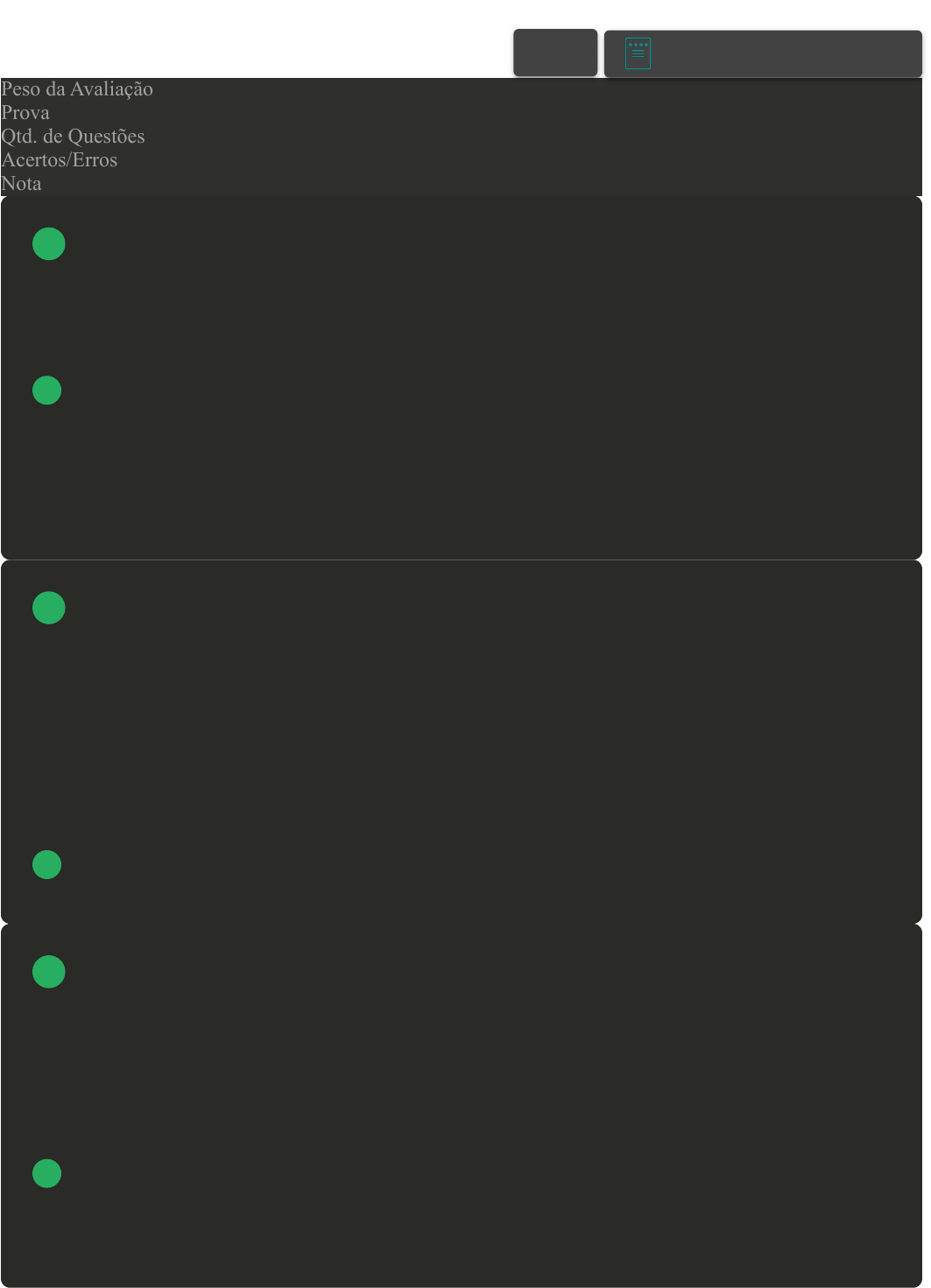 18/11/2024 16:43 Avaliação disciplina on-line about:blank 1/4 Prova Impressa GABARITO | Avaliação disciplina on-line (Cod.:990265) Peso da Avaliação 10,00 Prova 92730025 Qtd. de Questões 10 Acertos/Erros 9/1 Nota 9,00 Existem vários tipos de mapa, quando se fala que são uma representação espacial das populações. Exemplos: índices populacionais, taxas de analfabetismo, migrações etc. Neste caso, se está falando de que tipo de mapa? A Mapas gerais. B Mapas demográficos. C Mapas geográficos. D Mapas físicos. Este tipo de gráfico é utilizado para demonstrar uma sequência numérica de uma variável ao longo do tempo. É indicado para demonstrar tanto evoluções como regressões, referentes ao comportamento de um determinado fenômeno. De que gráfico estamos falando? A Gráfico de Coluna. B Gráfico de Dispersão. C Gráfico de Barra. D Gráfico de Linhas. Este tipo de gráfico mostra os dados como uma coleção de pontos. Cada ponto determina o valor de uma varável, bem como sua posição no eixo horizontal junto com outra variável e sua posição no eixo vertical. De que gráfico estamos falando? A Gráfico de Linhas. B Gráfico de Área. C Gráfico de Dispersão. D Gráfico de Barra. VOLTAR A+ Alterar modo de visualização 1 2 3 18/11/2024 16:43 Avaliação disciplina on-line about:blank 2/4 Este tipo de gráfico é comum na medição de termos especificamente estatísticos e até em jogos de videogames. Sua função é comparar valores distintos de uma mesma variável. De que gráfico estamos falando? A Gráfico de Área. B Gráfico de Radar. C Gráfico de Linhas. D Gráfico de Dispersão. Esse tipo de gráfico é muito comum em nosso cotidiano. É indicado para expressar relações de proporcionalidade, sendo que a soma de todos os dados compõe um dado aspecto da realidade. De que gráfico estamos falando? A Gráfico de Linhas. B Gráfico de Pizza. C Gráfico de Barra. D Gráfico de Coluna. A palavra imagem significa: representação (gráfica, plástica, fotográfica) de algo ou alguém, ou ainda reprodução obtida por meios técnicos, cópia. Seu termo vem latim imago e faz referência a quê? A A uma figura, representação, semelhança ou aparência de algo. B A um padrão com empilhado e curvas. C A um padrão com curvas e linhas. D A um conjunto de dados que não se consegue descrever. Mapa é uma representação visual de uma região. Geralmente são representações bidimensionais de um espaço tridimensional. A ciência da concepção e fabricação de mapas designa-se cartografia. Em relação aos tipos de mapa, analise o mapa a seguir. Que tipo de mapa é? 4 Revisar Conteúdo do Livro 5 6 7 18/11/2024 16:43 Avaliação disciplina on-line about:blank 3/4 FONTE DA IMAGEM: http://m.getulionascimento.com/news/a-formacao-do-territorio-brasileiro/. Acesso em: 20 mar. 2019. A Mapa econômico. B Mapa histórico. C Mapa físico. D Mapa demográfico. Esse tipo de mapa representa a produção do espaço econômico, ou seja, as atividades econômicas de uma determinada área e a distribuição de dados estatísticos. Exemplo: a receita financeira dos estados brasileiros. De que tipo de mapa estamos falando? A Mapa físico. B Mapa histórico. C Mapa demográfico. D Mapa econômico. Os mapas conjugam-se com a prática histórica, podendo revelar diferentes visões do mundo. Existem os tipos de mapa que representam as divisas e fronteiras entre países. Quanto ao nome dado a esse tipo de mapa, assinale a alternativa CORRETA: A Mapas de tema. B Mapas demográficos. C Mapas políticos. D Mapas de tipo. 8 9 18/11/2024 16:43 Avaliação disciplina on-line about:blank 4/4 Quando se fala em mapas, somos remetidos à Geografia, por ser esse um aspecto cultural, mas esse mesmo mapa pode nos remeter a outras situações de análise de contextos que foram nele baseadas. Com relação aos mapas, assinale a alternativa CORRETA: A Um mapa é uma representação aleatória de imagens. B Um mapa são imagens que representam a flora brasileira. C Um mapa pode remeter a outras áreas de conhecimentos. D Um mapa somente é uma representação fidedigna das regiões. 10 Imprimir