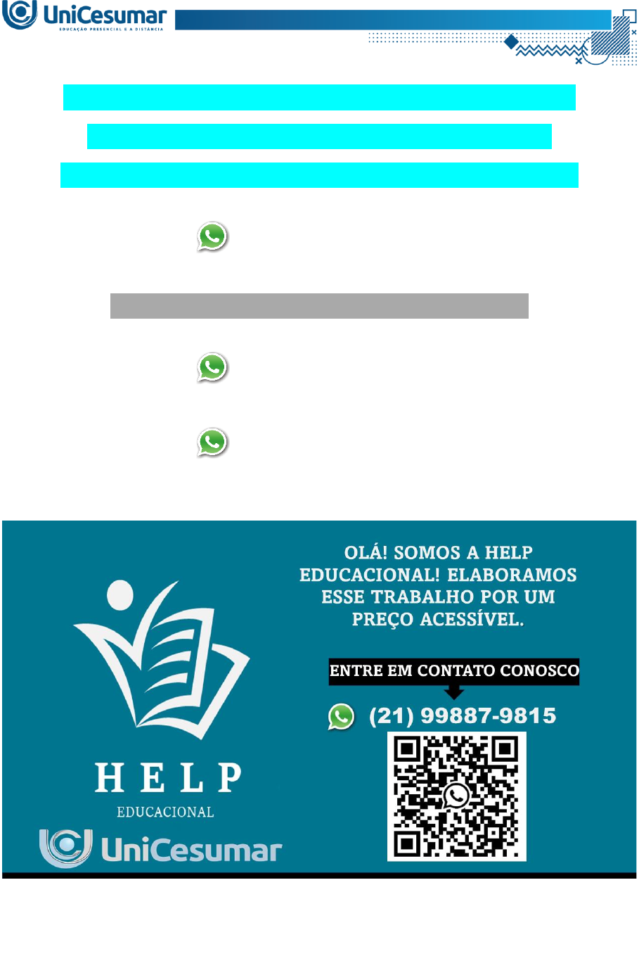 PORTFÓLIO – MKT - IMERSÃO PROFISSIONAL: SUSTENTABILIDADE, CONSUMO E NOVAS PERSPECTIVAS PARA O MARKETING - 54_2024 (21) 99887-9815 ASSESSORIA NOS SEUS TRABALHOS (21) 99887-9815 (21) 99887-9815 A sustentabilidade ambiental pode ser atingida intensificando-se o uso de recursos potenciais para fins socialmente benéficos; limitando o consumo de combustíveis fósseis e outros recursos e produtos que se esgotam facilmente ou são danosos ao ambiente, substituindo-os por recursos ou produtos renováveis, abundantes e não prejudiciais ao meio ambiente; reduzindo a quantidade de resíduos e poluição; e ampliando a pesquisa em tecnologias sustentáveis. ECYCLE. Sustentabilidade ambiental: definição e princípios. Disponível em: https://www.ecycle.com.br/sustentabilidade-ambiental/. Acesso em: 20, ago. 2024. Imagine que você é o responsável por tornar a marca "Conforto Verde", que produz almofadas, mais ambientalmente responsável. A empresa deseja alinhar suas ope- rações com práticas de sustentabilidade para atender às expectativas dos consumi- dores e contribuir positivamente com o meio ambiente. Assim, sua tarefa será: 1) Identificar 3 ações sustentáveis que a marca pode implementar. Essas ações podem estar relacionadas à embalagem das almofadas, aos materiais utilizados na produção, ao transporte dos produtos, ou a qualquer outra parte do processo opera- cional da empresa. 2) Explicar e justificar cada uma dessas ações, destacando como elas podem con- tribuir para a sustentabilidade ambiental e como podem beneficiar a marca tanto em termos de imagem quanto de operação Dicas: - Descreva cada ação de forma clara e objetiva. - Justifique suas escolhas, considerando os impactos ambientais e os benefícios para a marca. - Pense em como essas ações podem ser comunicadas ao consumidor para refor- çar a imagem sustentável da marca. Bons estudos! OLÁ! SOMOS A HELP EDUCACIONAL! ELABORAMOS ESSE TRABALHO POR UM PREÇO ACESSÍVEL. ENTRE EM CONTATO CONOSCO (21) 99887-9815
