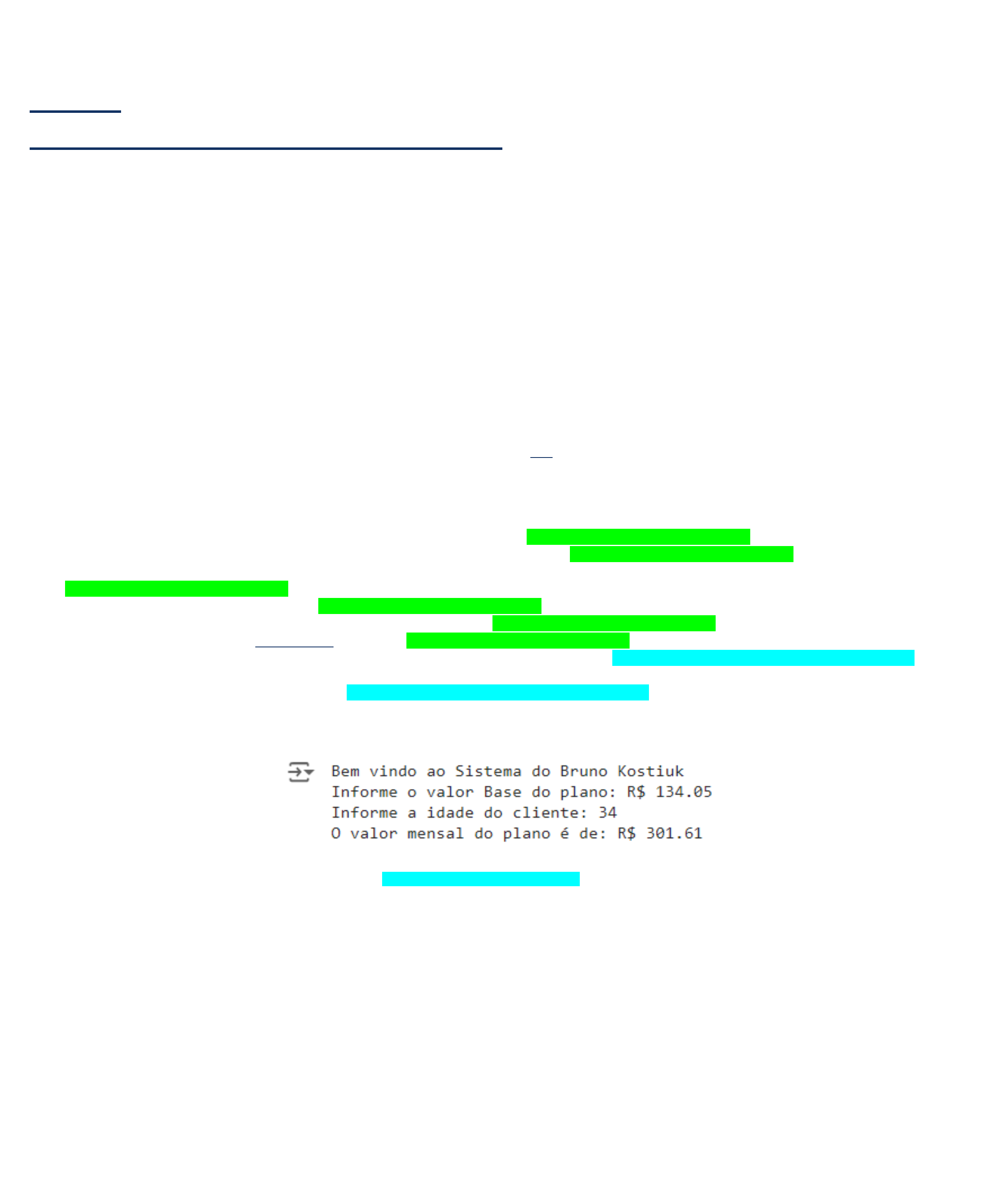 Figura 1.1: Exemplo de saída de console que o aluno deve fazer. Em que se perguntar o valorBase do plano (pode ser qualquer valor) e a idade