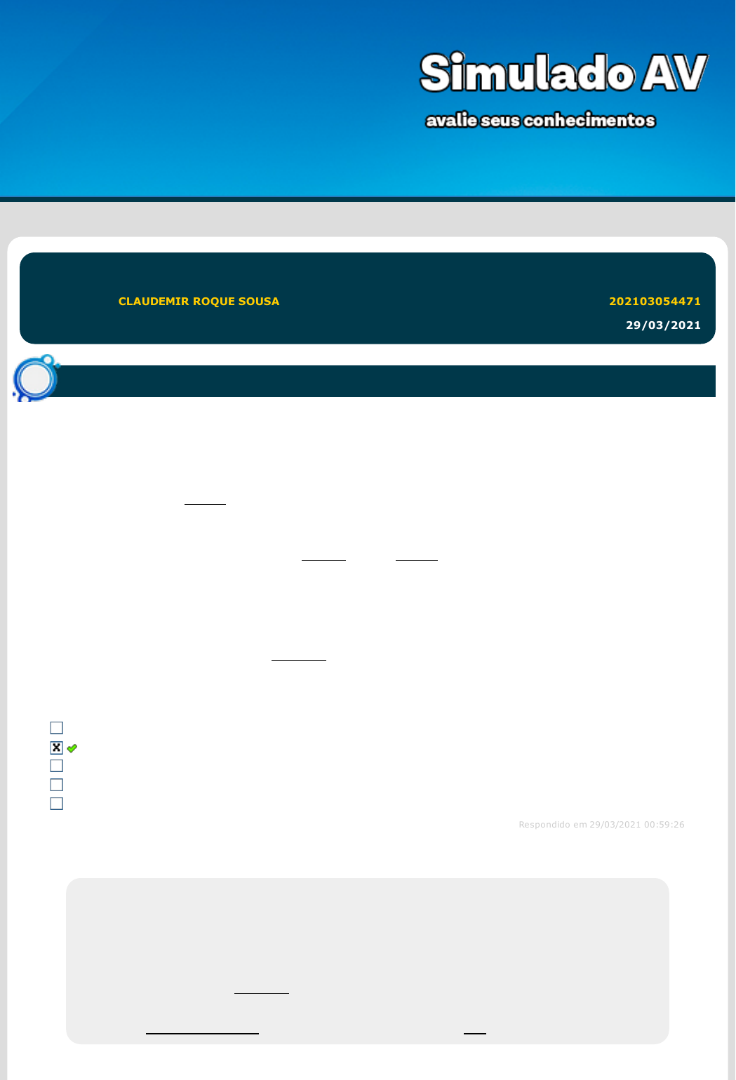 Disc.: BASES DE GESTÃO Aluno(a): LUIZ CLAUDEMIR ROQUE SOUSA 202103054471 Acertos: 10,0 de 10,0 29/03/2021 Acerto: 1,0 / 1,0 Segundo Sinek (2018), o Círculo Dourado é uma visão alternativa para as suposições existentes sobre o motivo pelo qual alguns líderes e organizações exercem tão grande influência sobre as pessoas e os clientes. Segundo o autor alguns líderes preferem inspirar pessoas em torno do padrão que chamou de Círculo Dourado. Considerando o Círculo Dourado, podemos afirmar que segundo Sinek: I - Toda empresa sabe O QUE faz. Não importa se é grande, pequena, nem o campo de atividade em que ela atua. As pessoas que nela trabalham também são capazes de descrever os produtos e serviços que sua companhia vende ou listar as atividades inerentes ao cargo que ocupam. II - Algumas companhias e pessoas sabem COMO fazem e O QUE fazem, seja por meio da proposta de valor diferenciada, processo patenteado ou ideia criativa que garante vantagem competitiva. Em geral, como são as estratégias usadas para diferenciar produtos e serviços. Ao contrário do o que, existem empresas que não sabem como chegar a este nível de diferenciação. Falta-lhes comportamento estratégico. III - Poucas pessoas ou empresas não conseguem responder com clareza por que fazem o que fazem. Quando Sinek explica o porquê, ele deixa óbvio que não se trata e nem está se referindo aos lucros ou aos salários pagos por um trabalho realizado. O PORQUÊ é o propósito, a causa, a crença, o motivo pelo qual sua organização existe. Com base nas afirmações feitas podemos concluir que: Somente as afirmações I e III são verdadeiras Somente as afirmações I e II são verdadeiras Todas as afirmações não são verdadeiras Todas as afirmações são verdadeiras Somente as afirmações II e III são verdadeiras Respondido em 29/03/2021 00:59:26 Explicação: Segundo o Circulo Dourado de Sinek as afirmativas I e II estão corretas. Quanto a terceira afirmativa ela é incorreta, porque a afirmativa de Sinek é: "Poucas pessoas ou empresas conseguem responder com clareza por que fazem o que fazem. Quando Sinek explica o porquê, ele deixa óbvio que não se trata e nem está se referindo aos lucros ou aos salários pagos por um trabalho realizado. O PORQUÊ é o propósito, a causa, a crença, o motivo pelo qual sua organização existe". Concluindo, não é correto dizer que "Poucas pessoas ou empresas não conseguem responder... Questão1a Firefox https://simulado.estacio.br/bdq_simulados_avaliacao_parcial_resultado... 1 of 6 16/04/2021 10:34 Luiz Claudemir Realce Luiz Claudemir Realce Luiz Claudemir Realce Luiz Claudemir Realce Luiz Claudemir Realce Acerto: 1,0 / 1,0 O Microambiente de uma organização, também chamado de Ambiente Tarefa, é aquele onde estão as relações com clientes, fornecedores, mercado de trabalho, concorrentes e stakeholders em geral. Para compreender este ambiente, devemos ignorar as relações com: Nenhuma das alternativas. O ambiente interno. A organização. As variáveis demográficas. As variáveis culturais. Respondido em 29/03/2021 01:00:00 Explicação: Principalmente considerando o Pensamento Sistêmico, compreender Microambiente de uma organização, depende da compreensão de seu macroambiente e, também, de seu ambiente interno. Como sistema aberto, todas as relações são fundamentais para conhecer o todo, o "individual" e suas interdependências. Acerto: 1,0 / 1,0 As ações de cada área/departamento são definidas no planejamento tático, com as responsabilidades atribuídas para cada especialidade. Ainda assim, pequenas organizações também têm planejamento tático, que envolve aspectos de médio prazo e associados a uma função específica, mesmo que não seja realizado por profissionais exclusivos. A respeito do planejamento tático, analise as afirmativas com situações hipotéticas: I - A diretora de Marketing de uma empresa multinacional participa de reuniões do conselho gestor para apresentar relatório sobre a concorrência, a ser considerado no plano trianual de gestão. II - O dono de uma pequena empresa de serviços em marcenaria planeja qual o perfil de fornecedores será consultado para suprir a necessidade de matérias-primas no ano corrente. III - O gerente de operações de uma empresa produtora de embalagens define qual é a missão e visão da empresa. Estão mais adequados a um contexto de planejamento em nível tático, somente o que consta em: II e III I e II I, apenas II, apenas I e III Respondido em 29/03/2021 01:00:26 Explicação: I - A diretora de Marketing de uma empresa multinacional participa de reuniões do conselho gestor para apresentar relatório sobre a concorrência, a ser considerado no plano trianual de gestão. (PLANO TRIANUAL E REUNIÕES DO CONSELHO GESTOR SÃO ELEMENTOS TÍPICOS DO PLANEJAMENTO ESTRATÉGICO) II - O dono de uma pequena empresa de serviços em marcenaria planeja qual o perfil de fornecedores será consultado para suprir a necessidade de matérias-primas no ano corrente. (O ANO CORRENTE, OU ATUAL, E O PERFIL DE FORNECEDORES SÃO ELEMENTOS TÍPICOS DE PLANEJAMENTO TÁTICO, AINDA QUE SE TRATE DO DONO DA EMPRESA, POIS, NESTE CASO, ELE DESENVOLVE AS FUNÇÕES DE TODOS OS NÍVEIS DE PLANEJAMENTO) III - O gerente de operações de uma empresa produtora de embalagens define qual é a missão e visão da empresa. (É IMPROVÁVEL QUE O GERENTE DE OPERAÇÕES DE UMA EMPRESA VENHA A DEFINIR ELEMENTOS DO PLANEJAMENTO ESTRATÉGICO. DE TODO MODO, MISSÃO E VISÃO NÃO FAZEM PARTE DO PLANEJAMENTO TÁTICO) Questão2a Questão3a Firefox https://simulado.estacio.br/bdq_simulados_avaliacao_parcial_resultado... 2 of 6 16/04/2021 10:34 Luiz Claudemir Realce Luiz Claudemir Realce Acerto: 1,0 / 1,0 Em entrevista para o Jornal Indústria Globalizada a gerente industrial Idalina Mesquita mencionou: "Bem, na nossa indústria Massa dos Deuses a gente procura trabalhar em todo processo produtivo a qualidade do produt