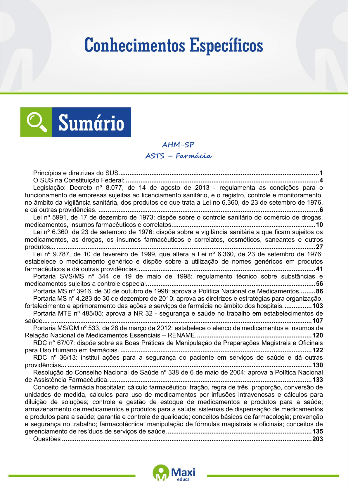 . 1 AHM-SP ASTS – Farmácia Princípios e diretrizes do SUS.............................................................................................................. 1 O SUS na Constituição Federal; .......................................................................................................... 4 Legislação: Decreto nº 8.077, de 14 de agosto de 2013 - regulamenta as condições para o funcionamento de empresas sujeitas ao licenciamento sanitário, e o registro, controle e monitoramento, no âmbito da vigilância sanitária, dos produtos de que trata a Lei no 6.360, de 23 de setembro de 1976, e dá outras providências. ......................................................................................................................... 6 Lei nº 5991, de 17 de dezembro de 1973: dispõe sobre o controle sanitário do comércio de drogas, medicamentos, insumos farmacêuticos e correlatos. .............................................................................. 10 Lei nº 6.360, de 23 de setembro de 1976: dispõe sobre a vigilância sanitária a que ficam sujeitos os medicamentos, as drogas, os insumos farmacêuticos e correlatos, cosméticos, saneantes e outros produtos... .............................................................................................................................................. 27 Lei nº 9.787, de 10 de fevereiro de 1999, que altera a Lei nº 6.360, de 23 de setembro de 1976: estabelece o medicamento genérico e dispõe sobre a utilização de nomes genéricos em produtos farmacêuticos e dá outras providências. ................................................................................................. 41 Portaria SVS/MS nº 344 de 19 de maio de 1998: regulamento técnico sobre substâncias e medicamentos sujeitos a controle especial. ............................................................................................ 56 Portaria MS nº 3916, de 30 de outubro de 1998: aprova a Política Nacional de Medicamentos. ........ 86 Portaria MS nº 4.283 de 30 de dezembro de 2010: aprova as diretrizes e estratégias para organização, fortalecimento e aprimoramento das ações e serviços de farmácia no âmbito dos hospitais. ............... 103 Portaria MTE nº 485/05: aprova a NR 32 - segurança e saúde no trabalho em estabelecimentos de saúde.... ............................................................................................................................................... 107 Portaria MS/GM nº 533, de 28 de março de 2012: estabelece o elenco de medicamentos e insumos da Relação Nacional de Medicamentos Essenciais – RENAME. ............................................................... 120 RDC n° 67/07: dispõe sobre as Boas Práticas de Manipulação de Preparações Magistrais e Oficinais para Uso Humano em farmácias. ......................................................................................................... 122 RDC nº 36/13: institui ações para a segurança do paciente em serviços de saúde e dá outras providências... ...................................................................................................................................... 130 Resolução do Conselho Nacional de Saúde nº 338 de 6 de maio de 2004: aprova a Política Nacional de Assistência Farmacêutica. ............................................................................................................... 133 Conceito de farmácia hospitalar; cálculo farmacêutico: fração, regra de três, proporção, conversão de unidades de medida, cálculos para uso de medicamentos por infusões intravenosas e cálculos para diluição de soluções; controle e gestão de estoque de medicamentos e produtos para a saúde; armazenamento de medicamentos e produtos para a saúde; sistemas de dispensação de medicamentos e produtos para a saúde; garantia e controle de qualidade; conceitos básicos de farmacologia; prevenção e segurança no trabalho; farmacotécnica: manipulação de fórmulas magistrais e oficinais; conceitos de gerenciamento de resíduos de serviços de saúde. ............................................................................... 135 Questões ......................................................................................................................................... 203 Apostila gerada especialmente para: Ricardo Bomtempo de Souza 339.288.298-40 . 2 Candidatos ao Concurso Público, O Instituto Maximize Educação disponibiliza o e-mail professores@maxieduca.com.br para dúvidas relacionadas ao conteúdo desta apostila como forma de auxiliá-los nos estudos para um bom desempenho na prova. As dúvidas serão encaminhadas para os professores responsáveis pela matéria, portanto, ao entrar em contato, informe: - Apostila (concurso e cargo); - Disciplina (matéria); - Número da página onde se encontra a dúvida; e - Qual a dúvida. Caso existam dúvidas em disciplinas diferentes, por favor, encaminhá-las em e-mails separados. O professor terá até cinco dias úteis para respondê-la. Bons estudos! Apostila gerada especialmente para: Ricardo Bomtempo de Souza 339.288.298-40 . 1 Caro(a) candidato(a), antes de iniciar nosso estudo, queremos nos colocar à sua disposição, durante todo o prazo do concurso para auxiliá-lo em suas dúvidas e receber suas sugestões. Muito zelo e técnica foram empregados na edição desta obra. No entanto, podem ocorrer erros de digitação ou dúvida conceitual. Em qualquer situação, solicitamos a comunicação ao nosso serviço de atendimento ao cliente para que possamos esclarecê-lo. Entre em contato conosco pelo e-mail: professores @maxieduca.com.br Diretrizes do Sistema Único de Saúde (SUS) Em 1985, o regime militar chega ao fim. Com o advento da Nova República, lideranças do movimento sanitário assumem efetivamente posições em postos-chave nas instituições responsáveis pela política de saúde no 