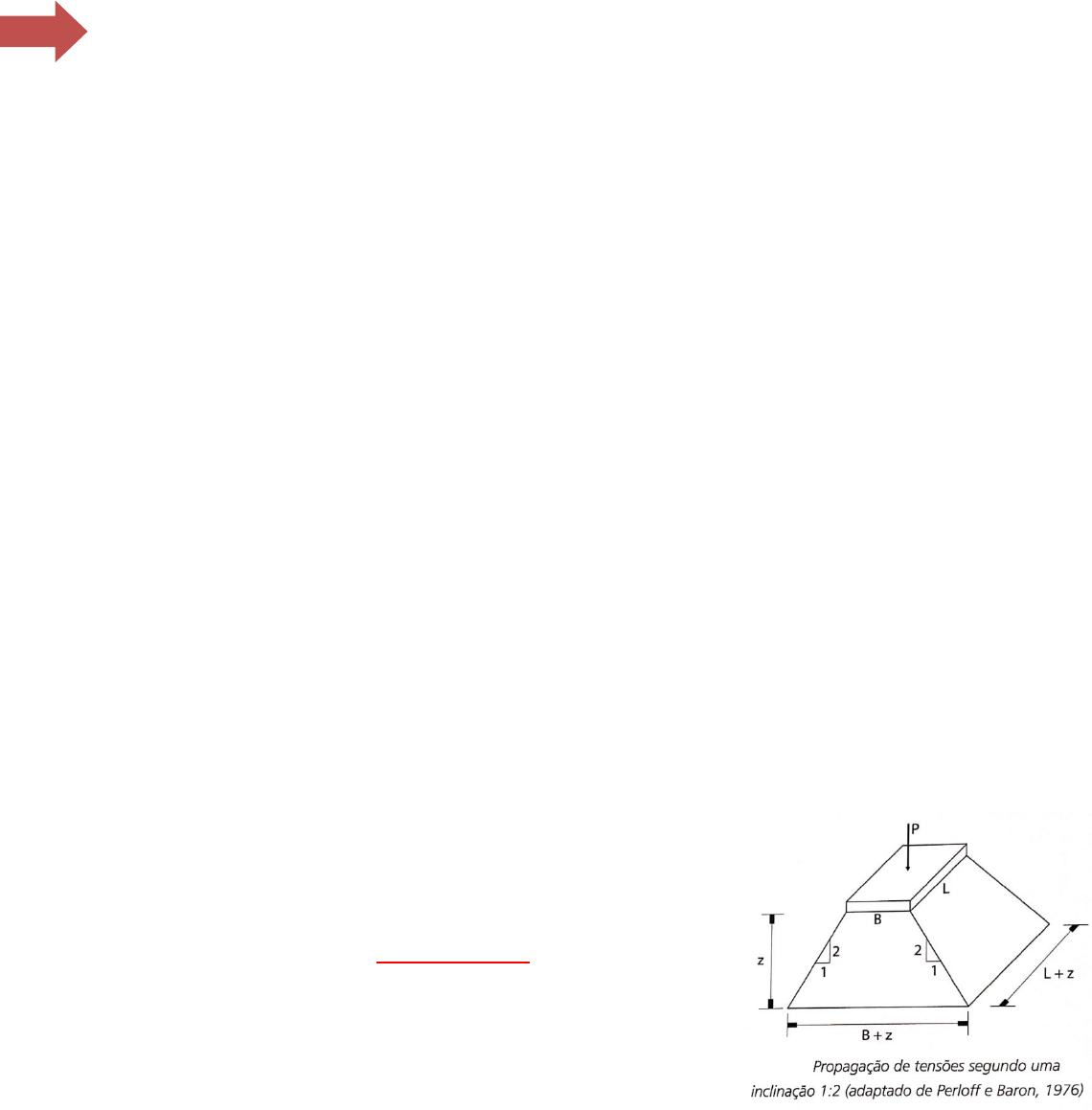 Fundações I UNINOVE – Universidade Nove de Julho “A educação exige os maiores cuidados, porque influi sobre toda a vida.” - Sêneca. 1 Aula 05 – Correlações e Solos Estratificados Prof: João Henrique Sumário Solo Estratificado ............................................................................................................. 1 Bulbo de Tensões ............................................................................................................. 1 2 Camadas ........................................................................................................................ 2 Obtenção do Peso Específico natural (𝛾nat) ..................................................................... 4 Obtenção de parâmetros de resistência ao cisalhamento .................................................. 4 Atividade 1 ....................................................................................................................... 5 Atividade 2 ....................................................................................................................... 6 Atividade 3 ....................................................................................................................... 7 Atividade 4 ....................................................................................................................... 8 Solo Estratificado Não é raro que o maciço de solo se apresente estratificado em camadas distintas. Para tratar dessa condição, vamos revisar o conceito de bulbo de tensões, o que exige lembrarmos um pouco de propagação de tensões. Bulbo de Tensões Além dos métodos vistos na Mecânica dos Solos, podemos admitir, para um cálculo prático e aproximado, que a propagação de tensões ocorre de uma forma simplificada, mediante uma inclinação 1:2 (que corresponde a aproximadamente 27 graus com a vertical), conforme figura abaixo, em que z é a distância da base da sapata ao topo da segunda camada. Portanto, a parcela de Δσ de tensão propagada à distância z é aproximadamente: 𝛥𝜎 = 𝜎. 𝐵. 𝐿 (𝐵 + 𝑧). (𝐿 + 𝑧) Segundo Simons e Menzies (1981), cálculos mais rigorosos para sapatas flexíveis, pela Teoria da Elasticidade, dão os seguintes valores de profundidade do bulbo de tensões, em função da forma da base da sapata: Fundações I UNINOVE – Universidade Nove de Julho “A educação exige os maiores cuidados, porque influi sobre toda a vida.” - Sêneca. 2 i. Sapata Circular: z = 1,5.B ii. Sapata Quadrada: z = 2,5.B iii. Sapata Retangular: z = 3,0.B iv. Sapata Corrida: z = 4,0.B Portanto, para adotar os parâmetros c, θ e 𝛾 do maciço situado sob a base da sapata devemos considerar apenas a espessura atingida pelo bulbo de tensões. Se for uma camada de mesmo solo, mas com alguma variação nesses parâmetros, podemos determinar o valor médio de cada um dentro do bulbo de tensões, assim como a média dos valores de Nspt, se for o caso. 2 Camadas Subjacente à camada superficial em que está embutida a sapata, consideremos uma segunda sapata com características de resistência e compressibilidade diferentes da outra, ambas atingidas pelo bulbo de tensões. Nesse caso, o problema da capacidade de carga torna-se complexo, conforme demonstrado por Vesic (1975). Por isso, vamos apresentar um procedimento prático, detalhado a seguir. Primeiramente, determinas a capacidade de carga, considerando apenas a primeira camada (Δr1) e, depois, a capacidade de carga para uma sapata fictícia apoiada no topo da segunda camada (Δr2), conforme o esquema ao lado. Ao comparar os dois valores, se tivermos: 𝜎𝑟1 ≤ 𝜎𝑟2 → 𝑜𝑘! Significa que a parte inferior da superfície de ruptura se desenvolve em solo mais resistente e, então, poderemos adotar, a favor da segurança, que a capacidade do sistema (σr) é: 𝜎𝑟 = 𝜎𝑟1 No caso da segunda camada ser menos resistente, adotamos uma solução prática aproximada, que consiste, inicialmente, em obter a média ponderada dos dois valores, dentro do bulbo de tensões: 𝜎𝑟1,2 = 𝑎. 𝜎𝑟1 + 𝑏. 𝜎𝑟2 𝑎 + 𝑏 Em seguida, verificamos se não haveria antes a ruptura da segunda camada, na iminência de a sapata aplicar esse valor de tensão. Para isso, calculamos a parcela propagada dessa tensão até o topo da segunda camada (Δσ) e, depois comparamos Δσ com σr2. Fundações I UNINOVE – Universidade Nove de Julho “A educação exige os maiores cuidados, porque influi sobre toda a vida.” - Sêneca. 3 Assim, se tivermos: Δσ ≅ Δr1,2. B. L (𝐵 + 𝑧). (𝐿 + 𝑧) ≤ Δr2 → ok! Então a capacidade de caga do sistema (Δr) será a própria capacidade de carga média do bulbo (Δr1,2): Δr = Δr1,2 Caso a verificação não for satisfeita (Δσ > Δr2), será necessário reduzir o valor da capacidade de carga média, de modo que o valor propagado Δσ não ultrapasse Δr2. Para isso, basta utilizar uma regra de três simples, pela qual a capacidade de carga do sistema (Δr) resulta em: Δr = Δσ1,2. Δr2 Δσ Fluxograma Capacidade de Carga Solo 1 Capacidade de Carga Solo 2 𝜎𝑟1 ≤ 𝜎𝑟2 → 𝑜𝑘! Adotar 𝜎𝑟1! Tirar a Média Ponderada 𝜎𝑟1,2 = 𝑎. 𝜎𝑟1 + 𝑏. 𝜎𝑟2 𝑎 + 𝑏 Calcular Parcela Propagada e Comparar com 𝜎2 ! Δσ ≅ Δr1,2. B. L 𝐵 + 𝑧 . 𝐿 + 𝑧 ≤ Δr2 → ok! Δr = Δr1,2 (Δσ > Δr2), Reduzir a Capacidade Média! Δr = Δσ1,2. Δr2 Δσ Fundações I UNINOVE – Universidade Nove de Julho “A educação exige os maiores cuidados, porque influi sobre toda a vida.” - Sêneca. 4 Obtenção do Peso Específico natural (𝛾nat) Obtenção de parâmetros de resistência ao cisalhamento Obtenção da coesão: 𝑐 = 0,01 ∗ 𝑁𝑠𝑝𝑡 (𝑀𝑃𝑎) 𝑇𝑒𝑖𝑥𝑒𝑖𝑟𝑎 𝑒 𝐺𝑜𝑑𝑜𝑦 (1996) 𝑐 = 10 . 𝑁𝑠𝑝𝑡 (𝐾𝑃𝑎) 𝑇𝑒𝑖𝑥𝑒𝑖𝑟𝑎 𝑒 𝐺𝑜𝑑𝑜𝑦 (1996)