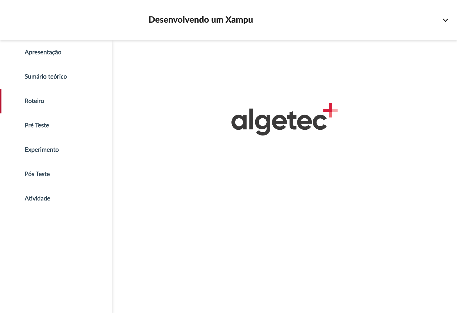 <p>Roteiro</p><p>INSTRUÇÕES GERAIS</p><p>1. Neste experimento, você irá aprimorar seus conhecimentos sobre preparo e desenvolvimento</p><p>de xampu.</p><p>2. Utilize a seção “Recomendações de Acesso” para melhor aproveitamento da experiência</p><p>virtual e para respostas às perguntas frequentes a respeito do Laboratório Virtual.</p><p>3. Caso não saiba como manipular o Laboratório Virtual, utilize o “Tutorial” presente neste</p><p>Roteiro.</p><p>4. Caso já possua familiaridade com o Laboratório Virtual, você encontrará as instruções para</p><p>realização desta prática na subseção “Procedimentos”.</p><p>Anterior</p><p>Sumário teórico</p><p>Próximo</p><p>Pré Teste Apresentação</p><p>Sumário teórico</p><p>Roteiro</p><p>Pré Teste</p><p>Experimento</p><p>Pós Teste</p><p>A�vidade</p><p></p><p></p><p></p><p></p><p></p><p></p><p></p><p>Desenvolvendo um Xampu KL </p><p>19/08/2024, 18:34 Desenvolvendo um Xampu :: Plataforma A</p><p>https://uniasselvi.grupoa.education/sagah/object/view-object/6215330f0f6e1e001312bbf9?lessonid=5535085 1/43</p><p>5.Ao finalizar o experimento, responda aos questionamentos da seção “Avaliação dos</p><p>Resultados”.</p><p>RECOMENDAÇÕES DE ACESSO</p><p>DICAS DE DESEMPENHO</p><p>Para otimizar a sua experiência no acesso aos laboratórios virtuais, siga as seguintes dicas de</p><p>desempenho:</p><p>Feche outros aplicativos e abas: Certifique-se de fechar quaisquer outros aplicativos ou abas</p><p>que possam estar consumindo recursos do seu computador, garantindo um desempenho mais</p><p>eficiente.</p><p>Navegador Mozilla Firefox: Recomendamos o uso do navegador Mozilla Firefox,</p><p>conhecido por seu baixo consumo de recursos em comparação a outros navegadores,</p><p>proporcionando uma navegação mais fluida.</p><p>Aceleração de hardware: Experimente habilitar ou desabilitar a aceleração de hardware no seu</p><p>navegador para otimizar o desempenho durante o acesso aos laboratórios virtuais.</p><p>Requisitos mínimos do sistema: Certifique-se de que seu computador atenda aos requisitos</p><p>mínimos para acessar os laboratórios virtuais. Essa informação está disponível em nossa</p><p>Central de Suporte.</p><p>Monitoramento do sistema: Utilize o Gerenciador de Tarefas (Ctrl + Shift + Esc) para verificar o</p><p>uso do disco, memória e CPU. Se estiverem em 100%, considere fechar outros aplicativos ou</p><p>reiniciar a máquina para otimizar o desempenho.</p><p>Teste de velocidade de internet: Antes de acessar, realize um teste de velocidade de internet</p><p>para garantir uma conexão estável e rápida durante o uso dos laboratórios virtuais.</p><p>Anterior</p><p>Sumário teórico</p><p>Próximo</p><p>Pré Teste Apresentação</p><p>Sumário teórico</p><p>Roteiro</p><p>Pré Teste</p><p>Experimento</p><p>Pós Teste</p><p>A�vidade</p><p></p><p></p><p></p><p></p><p></p><p></p><p></p><p>Desenvolvendo um Xampu KL </p><p>19/08/2024, 18:34 Desenvolvendo um Xampu :: Plataforma A</p><p>https://uniasselvi.grupoa.education/sagah/object/view-object/6215330f0f6e1e001312bbf9?lessonid=5535085 2/43</p><p>https://www.mozilla.org/pt-BR/firefox/new/</p><p>https://suporte-virtual.algetec.com.br/</p><p>Atualizações do navegador e sistema operacional: Mantenha seu navegador e sistema</p><p>operacional atualizados para garantir compatibilidade e segurança durante o acesso aos</p><p>laboratórios.</p><p>PRECISA DE AJUDA?</p><p>Em caso de dúvidas ou dificuldades técnicas, visite nossa Central de Suporte para encontrar artigos</p><p>de ajuda e informações para usuários. Acesse a Central de Suporte através do link: https://suporte-</p><p>virtual.algetec.com.br</p><p>Se preferir, utilize os QR Codes abaixo para entrar em contato via WhatsApp ou ser direcionado para</p><p>a Central de Suporte. Estamos aqui para ajudar! Conte conosco!</p><p>DESCRIÇÃO DO LABORATÓRIO</p><p>Anterior</p><p>Sumário teórico</p><p>Próximo</p><p>Pré Teste Apresentação</p><p>Sumário teórico</p><p>Roteiro</p><p>Pré Teste</p><p>Experimento</p><p>Pós Teste</p><p>A�vidade</p><p></p><p></p><p></p><p></p><p></p><p></p><p></p><p>Desenvolvendo um Xampu KL </p><p>19/08/2024, 18:34 Desenvolvendo um Xampu :: Plataforma A</p><p>https://uniasselvi.grupoa.education/sagah/object/view-object/6215330f0f6e1e001312bbf9?lessonid=5535085 3/43</p><p>https://suporte-virtual.algetec.com.br/</p><p>https://suporte-virtual.algetec.com.br/</p><p>https://suporte-virtual.algetec.com.br/</p><p>https://suporte-contato.algetec.com.br/</p><p>https://suporte-virtual.algetec.com.br/</p><p>https://suporte-contato.algetec.com.br/</p><p>https://suporte-contato.algetec.com.br/</p><p>https://suporte-virtual.algetec.com.br/</p><p>https://suporte-virtual.algetec.com.br/</p><p>MATERIAIS NECESSÁRIOS</p><p>· Agitador mecânico;</p><p>· Bastão de vidro;</p><p>· Béquer (250 mL);</p><p>· Béquer contendo ácido benzóico 0,50 %;</p><p>· Béquer contendo água deionizada 5,09 %;</p><p>· Béquer contendo ácido desidroacético 0,50 %;</p><p>· Béquer contendo cocamidopropil betaína 10 %;</p><p>· Béquer contendo cocamida DEA (dietanolamida de ácido graxo) 4 %;</p><p>· Béquer contendo extrato de folha de Hamamelis virginiana;</p><p>· Béquer contendo fenoxietanol 0,50 %;</p><p>· Béquer contendo perfume 0,25 %;</p><p>· Béquer contendo Laurilsulfato de sódio 30 %;</p><p>· Copo graduado;</p><p>· Copo graduado contendo água deionizada 45 %;</p><p>· Embalagem para xampu;</p><p>· Espátula;</p><p>· Jaleco;</p><p>· Luvas;</p><p>Anterior</p><p>Sumário teórico</p><p>Próximo</p><p>Pré Teste Apresentação</p><p>Sumário teórico</p><p>Roteiro</p><p>Pré Teste</p><p>Experimento</p><p>Pós Teste</p><p>A�vidade</p><p></p><p></p><p></p><p></p><p></p><p></p><p></p><p>Desenvolvendo um Xampu KL </p><p>19/08/2024, 18:34 Desenvolvendo um Xampu :: Plataforma A</p><p>https://uniasselvi.grupoa.education/sagah/object/view-object/6215330f0f6e1e001312bbf9?lessonid=5535