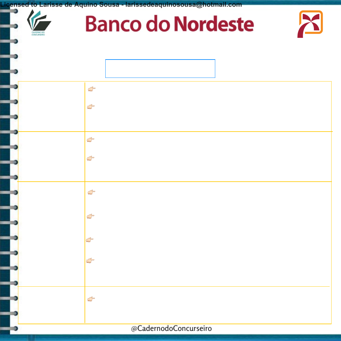 LÍNGUA PORTUGUESA ACENTUAÇÃO MONOSSÍLABO TÔNICO !SÃO ACENTUADOS OS QUE TERMINAM EM A(s),E(s),O(s) EX: JÁ,LÊ,SÓS !ACENTUAM-SE TAMBÉM OS DITONGOS CRESCENTES (AS PRIMEIRAS VOGAIS QUANDO ABERTOS OU TÔNICOS) - EI(s),EU(s),OI(s) EX: CÉU, RÉU, DÓI OXÍTONAS !SÃO ACENTUADAS AS TERMINADAS EM A(s),E(s),O(s),EM,ENS !ACENTUAM-SE TAMBÉM OS DITONGOS CRESCENTES (AS PRIMEIRAS EX: PARÁ,VOCÊ,AVÔ,TAMBÉM,ARMAZÉNS EI(s),EU(s),OI(s)VOGAIS QUANDO ABERTOS OU TÔNICOS) - EX:PAPÉIS,CHAPÉUS,HERÓIS PAROXÍTONAS !NÃO SE ACENTUAM AS TERMINADAS EM A(s),E(s),O(s),EM,ENS EX:VÍRUS,BÍCEPS,TÁXI,CARÁTER,AMÁVEL,ÓRGÃO !ACENTUAM-SE AS TERMINADAS EM DITONGO EX:PRECÁRIAS,DISTÂNCIA,INDÚSTRIA !NÃO SE ACENTUAM AS TERMINADAS EM DITONGOS ABERTOS ÉI,ÓI EX:IDEIA,HEROICO !NÃO SE ACENTUAM I E TÔNICOS QUANDO VIEREM APÓSU DITONGO DECRESCENTE EX: FEIURA PROPAROXÍTONAS !SÃO TODAS ACENTUADAS EX:SÓLIDO,TÔNICO,PERÍODO Licensed to Larisse de Aquino Sousa - larissedeaquinosousa@hotmail.com LÍNGUA PORTUGUESA ACENTUAÇÃO HIATOS ACENTUAM-SE O EXCEÇÃO I E U TÔNICOS DOS HIATOS (COM OU SEM S) EX: BAÚ,SAÚDE,JUÍZES FORMAREM SÍLABA COM CONSOANTES QUANDO FOREM SEGUIDOS DE NH EX:RAINHA REPETIREM A VOGAL - EX:ENJOO QUE NÃO SEJA O S - EX:JUIZ ACENTOS DIFERENCIAIS PÔDE X PODE PÔR X POR VÊM/TEM X VEM/TEM FÔRMA X FORMA !PÔDE - PRETÉRITO DO INDICATIVO !PODE - PRESENTE DO INDICATIVO !PÔR - VERBO !POR - PREPOSIÇÃO !VÊM/TÊM - (3ª PESSOA DO PLURAL) !VEM/TEM - (3ª PESSOA DO SINGULAR) !FÔRMA (OBJETO) - FACULTATIVO !FORMA - VERBO FORMAR Licensed to Larisse de Aquino Sousa - larissedeaquinosousa@hotmail.com LÍNGUA PORTUGUESA ACENTUAÇÃO HÍFEN (REGRAS GERAIS) NÃO TEM HÍFEN TEM HÍFEN !EM CASO DE VOGAIS DIFERENTES !EM CASO DE CONSOANTES DIFERENTES !APÓS NÃO E QUASE !ENTRE PALAVRAS COM ELEMENTO DE LIGAÇÃO !EM CASO DE VOGAIS IGUAIS !EM CASO DE CONSOANTE IGUAL !CASO NÃO HAJA ELEMENTO DE LIGAÇÃO !ANTES DE PALAVRA COM “H” !”SUB” e “SOB” + R/B 🔹EX:MICRO-ONDAS; CONTRA-ATAQUE 🔹EX:INTER-REGIONAL;SUPER-ROMÂNTICO 🔹SEMI-HOSPITALAR;PRÉ-HISTÓRICO 🔹PORTA-MALAS;BOA-FÉ !ALÉM,AQUÉM,SEM,RECÉM,PRE,PÓS, EX,VICE 🔹SUB-REGIONAL;SUB-REINO 🔹RECÉM-CASADO,VICE-PRESIDENTE 🔹COAUTOR;VIDEOAULA 🔹INTERMUNICIPAL 🔹MÃO DE OBRA; DIA A DIA !EM GERAL, O PREFIXO “CO” AGLUTINA-SE COM O SEGUNDO ELEMENTO, AINDA QUANDO ESTE SE INICIA POR “O” 🔹COOBRIGAÇÃO !QUANDO O PREFIXO TERMINA EM VOGAL E O SEGUNDO ELEMENTO COMEÇA POR CONSOANTE DIFERENTE DE “R” OU “S” 🔹AUTODEFESA; ANTEPOSTO !COM OS PREFIXOS “CIRCUM” E “PAN”,USA-SE O HÍFEN DIANTE DA PALAVRA INICIADA POR M,N E VOGAL !CIRCUM-NAVEGAÇÃO,PAN-AMERICANO . . Licensed to Larisse de Aquino Sousa - larissedeaquinosousa@hotmail.com LÍNGUA PORTUGUESA ACENTUAÇÃO USO DOS PORQUÊS POR QUE !EQUIVALE A “POR QUAL RAZÃO”, “POR QUAL MOTIVO”, “PELA QUAL”,”PELOS QUAIS” EX - POR QUE VOCÊ QUER SER APROVADO NO CONCURSO DA PF? EX - ESTAS SÃO AS RAZÕES POR QUE ESTUDO BASTANTE POR QUÊ !É UTILIZADO NO FINAIS DE FRASES, ANTES DE PONTO FINAL,DE INTERROGAÇÃO, DE EXCLAMAÇÃO OU DE RETICÊNCIAS EX - ESTUDO BASTANTE PARA SER APROVADO. SABE POR QUÊ? EX - O CONTRATO NÃO FOI ASSINADO. POR QUÊ? PORQUE !CORRESPONDE A UMA EXPLICAÇÃO OU UMA CAUSA (POIS,JÁ QUE,UMA VEZ QUE,PORQUANTO..) EX - COMPREI ESTE COMPUTADOR PORQUE É MAIS BARATO EX - ESTUDO PORQUE EU QUERO PASSAR (PERGUNTA) (FIM DE FRASE) (RESPOSTA) PORQUÊ (SUBSTANTIVO) !EQUIVALE A UM SUBSTANTIVO(É ANTECEDIDO DE UM - TEM SIGNIFICADO DE “MOTIVO”, “RAZÃO”DETERMINANTE) EX - NÃO SEI O PORQUÊ DESSA ESCOLHA EX - EU SEI O PORQUÊ DA SUA DEDICAÇÃO : Licensed to Larisse de Aquino Sousa - larissedeaquinosousa@hotmail.com