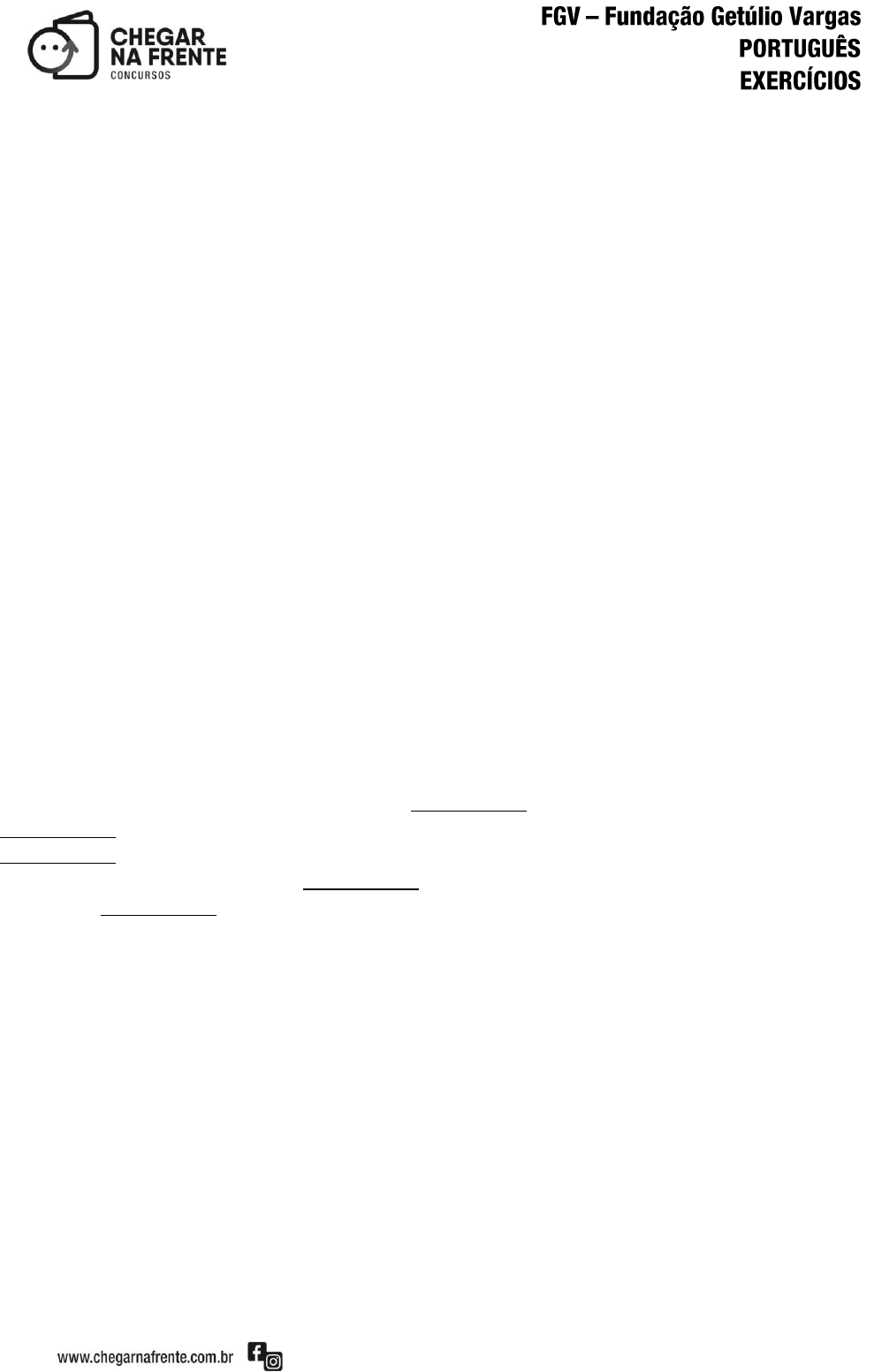 76 e) anula possibilidades de defesa diante do perigo. 188 - ( 2017 - ALERJ - Analista Legislativo – Sintaxe ) ‚A percepção de um perigo iminente, real ou imaginário, provoca uma descarga automática de adrenalina em nosso sistema nervoso. O efeito imediato disso é a adoção de um comportamento defensivo que, por sua vez, anula a causa original da descarga. A adrenalina torna o indivíduo mais alerta e atento a mudanças no ambiente e estimula ações impulsivas de resposta ao perigo, como a fuga ou a busca de abrigo‛ – Eduardo Giannetti, Vícios privados, benefícios públicos) O comentário correto sobre os componentes desse segmento de texto é: a) houve troca indevida do autor entre os parônimos iminente/eminente; b) houve troca indevida entre os parônimos imediato/mediato; c) a troca de ordem dos adjetivos ‚real‛ e ‚imaginário‛ provoca mudança de sentido; d) o emprego do verbo ‚tornar‛ indica continuidade de estado; e) os substantivos ‚fuga‛ e ‚busca‛ exigem a mesma preposição no complemento. 189 - ( 2017 - ALERJ - Analista Legislativo ) Texto 4 - PRIVAÇÕES Verissimo, O Globo, 20/10/2016 ‚Durante anos, o Brasil sofreu a privação do Frank Sinatra. Passava ano, passava ano, e o Frank Sinatra não vinha. Nossa maior angústia era com o tempo: se demorasse muito para vir, o Frank Sinatra, quando viesse, não seria mais o mesmo. Poderia não ter mais a grande voz, ou ser uma múmia de si mesmo. Por que o Frank Sinatra não vinha ao Brasil enquanto era tempo? E, finalmente, o Frank Sinatra veio ao Brasil. E a espera, concordaram todos, tinha valido a pena. Sinatra cantou no Rio Palace para endinheirados e no Maracanã para uma multidão. Sua voz era a mesma dos bons tempos, apenas envelhecida em tonéis de carvalho como um bom Bourbon. O Brasil agradeceu a Sinatra com o maior público de sua carreira. E ficou feliz‛. Nesse primeiro parágrafo de uma crônica de Verissimo há cinco vezes o termo Frank Sinatra. A repetição idêntica tem a finalidade de: a) indicar a angústia da espera pela visita de Sinatra; b) criticar o exagero das pessoas na admiração ao artista; c) destacar a importância da presença do cantor entre nós; d) mostrar que a expectativa era de todas as classes sociais; e) enfatizar os vários argumentos a favor da vinda do artista.