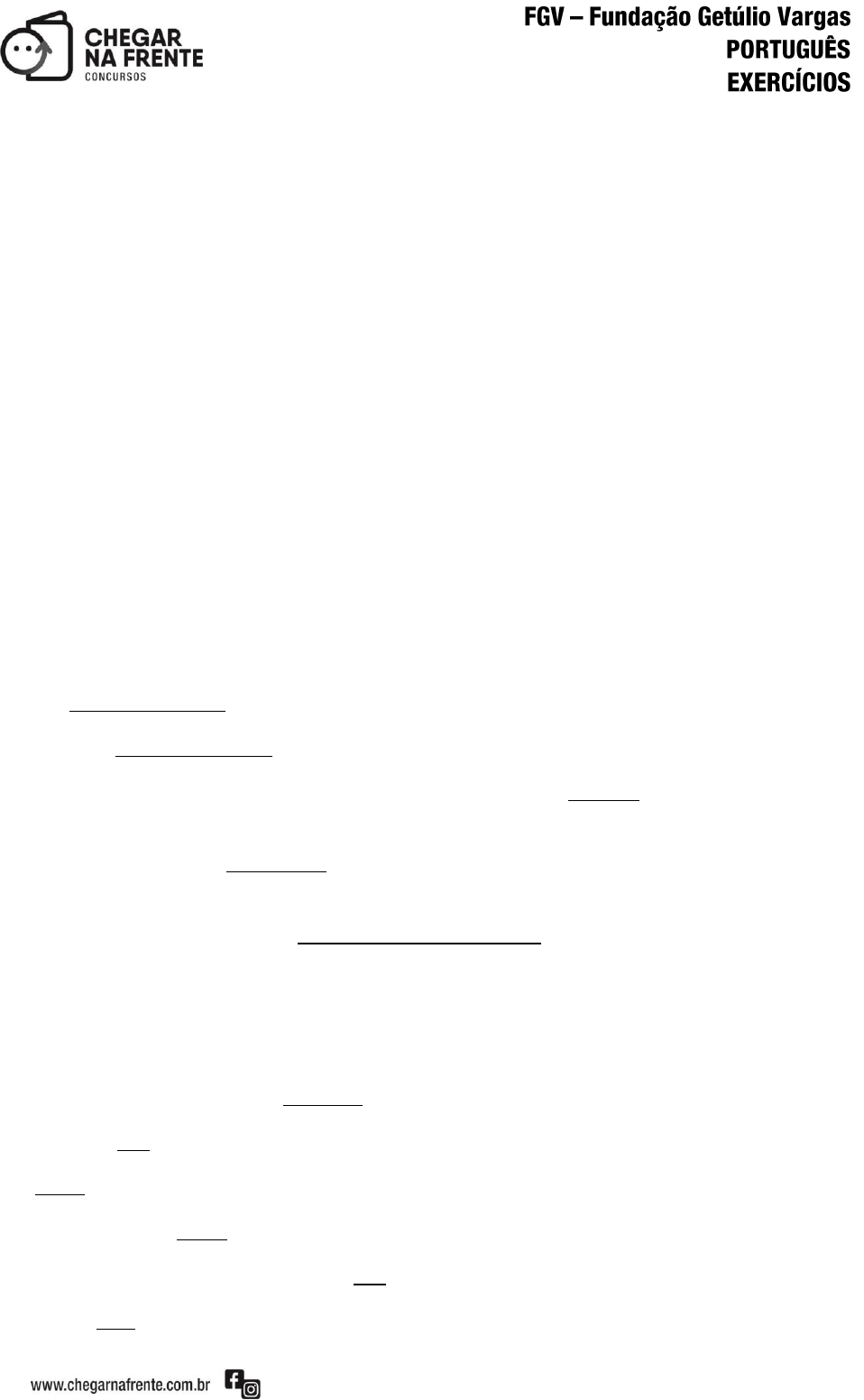 77 190 - ( 2017 - ALERJ - Analista Legislativo ) No texto 4 está presente o seguinte segmento: ‚Poderia não ter mais a grande voz, ou ser uma múmia de si mesmo‛. Nesse segmento exemplifica-se a seguinte figura de linguagem: a) antítese; b) metáfora; c) metonímia; d) pleonasmo; e) paradoxo. 191 - ( 2016 - COMPESA - Administrador de banco de dados ) Muitas orações se estruturam na forma reduzida – com formas verbais no particípio, gerúndio ou infinitivo; nas frases a seguir, pretendeu-se reescrever as formas reduzidas de infinitivo sublinhadas em forma de orações desenvolvidas. Assinale a opção que indica a frase em que essa reescritura foi feita de forma adequada. a) “É melhor acender uma vela do que amaldiçoar a escuridão”. / o acendimento de uma vela. b) ‚Não é preciso acender uma vela para o sol‛. / que se acenda. c) “Hipótese é uma coisa que não é, mas a gente faz de conta que é, para ver como seria se ela fosse”. / para que víssemos. d) “A última função da razão é reconhecer que há uma infinidade de coisas que a ultrapassam”. / o reconhecimento de. e) “A sutileza do pensamento consiste em descobrir a semelhança das coisas diferentes e a diferença das coisas semelhantes”. / na descoberta da semelhança. 192 - ( 2016 - COMPESA - Administrador de banco de dados – Morfologia ) Assinale a frase em que houve troca indevida entre sob/sobre. a) “Infância é vida sob uma ditadura”. b) “Falar sobre música é como dançar sobre arquitetura”. c) “O verso é uma vitória sobre os limites da linguagem”. d) “A interpretação é a vingança do intelecto sob a arte”. e) “Se tudo está sob controle é porque não se está indo suficientemente rápido”.