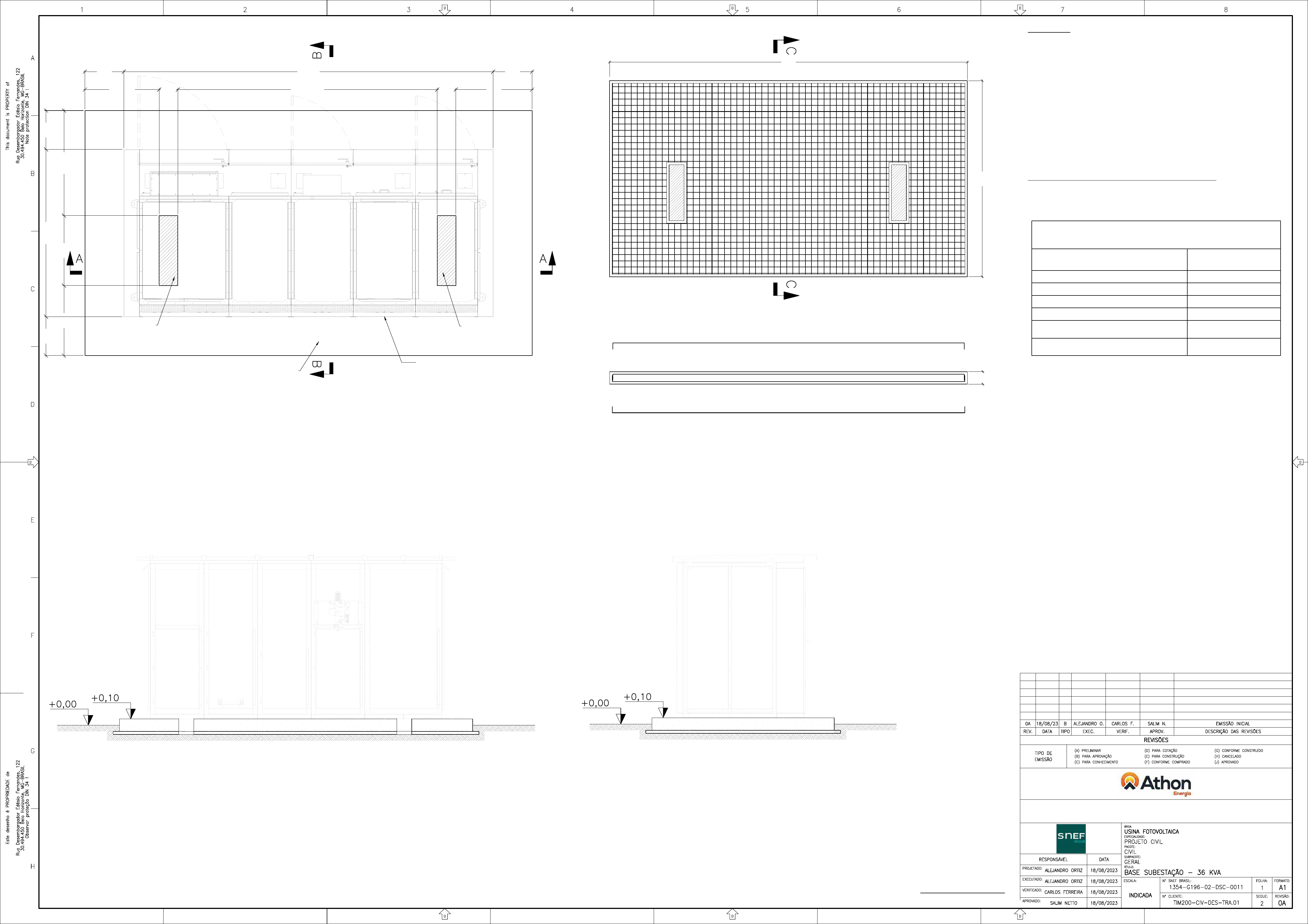 50 475 50 50 21 5 50 FLANGE PARA PASSAGEM DE CABOS FLANGE PARA PASSAGEM DE CABOS BASE DE CONCRETO PROJEÇÃO DO EQUIPAMENTO 90 90 13 5 95.5 24 333.5 24 98 BASE SUBESTAÇÃO - 36kV ESC.: 1:20 CORTE C-C ESC.: 1:25 LAJE DE PISO - ARMAÇÃO ESC.: 1:25 20 575 31 5 TELA Q335 587 10 10 TELA Q246 585 10 10 CORTE A-A ESC.: 1:25 CORTE B-B ESC.: 1:25 NOTAS CARLOS FERREIRA Engenheiro Responsável CREA: 349018 MG RESUMO QUANTITATIVOS (1 EQUIPAMENTO) DESCRIÇÃO QUANTITATIVO ESCAVAÇÃO (S/ EMPOLAMENTO) 2,72 m³ REGULARIZAÇÃO DE SUPERFÍCIE 18,20 m² CONCRETO MAGRO (fck>15MPa) 0,91 m³ CONCRETO ESTRUTURAL (fck>25MPa) 3,62 m³ TELA Q246 (BARRA DE Ø5,6 mm MALHA DE 10x10cm) 68,06 KG TELA Q335 (BARRA DE Ø8 mm MALHA DE 15x15cm) 93,48 KG SN EF B R A SI L SN EF B R A SI L USINA FOTOVOLTAICA ATHON T200 1. DIMENSÕES EM CENTÍMETRO, NÍVEIS E ELEVAÇÕES EM METRO; 2. COBRIMENTO MÍNIMO DA ARMADURA: 4cm; 3. RESISTÊNCIA CARACTERÍSTICA À COMPRESSÃO DO CONCRETO (RESISTÊNCIA DE PROJETO) E DEMAIS CARACTERÍSTICAS: 3.1. CONCRETO MAGRO fck=15MPa (C15); 3.2. CONCRETO ESTRUTURAL fck>25MPa (C25); 3.3. FATOR ÁGUA/CIMENTO 25MPa (C25); 3.3. FATOR ÁGUA/CIMENTO 15MPa) 0,36 m³ CONCRETO ESTRUTURAL (fck>25MPa) 1,43 m³ TELA Q246 (BARRA DE Ø5,6 mm MALHA DE 10x10cm) 26,21 KG TELA Q335 (BARRA DE Ø8 mm MALHA DE 15x15cm) 36,00 KG Sheets and Views TIM200-CIV-DES-BAS.01-R0A-01 TIM200-CIV-DES-BAS.01-R0A-02
