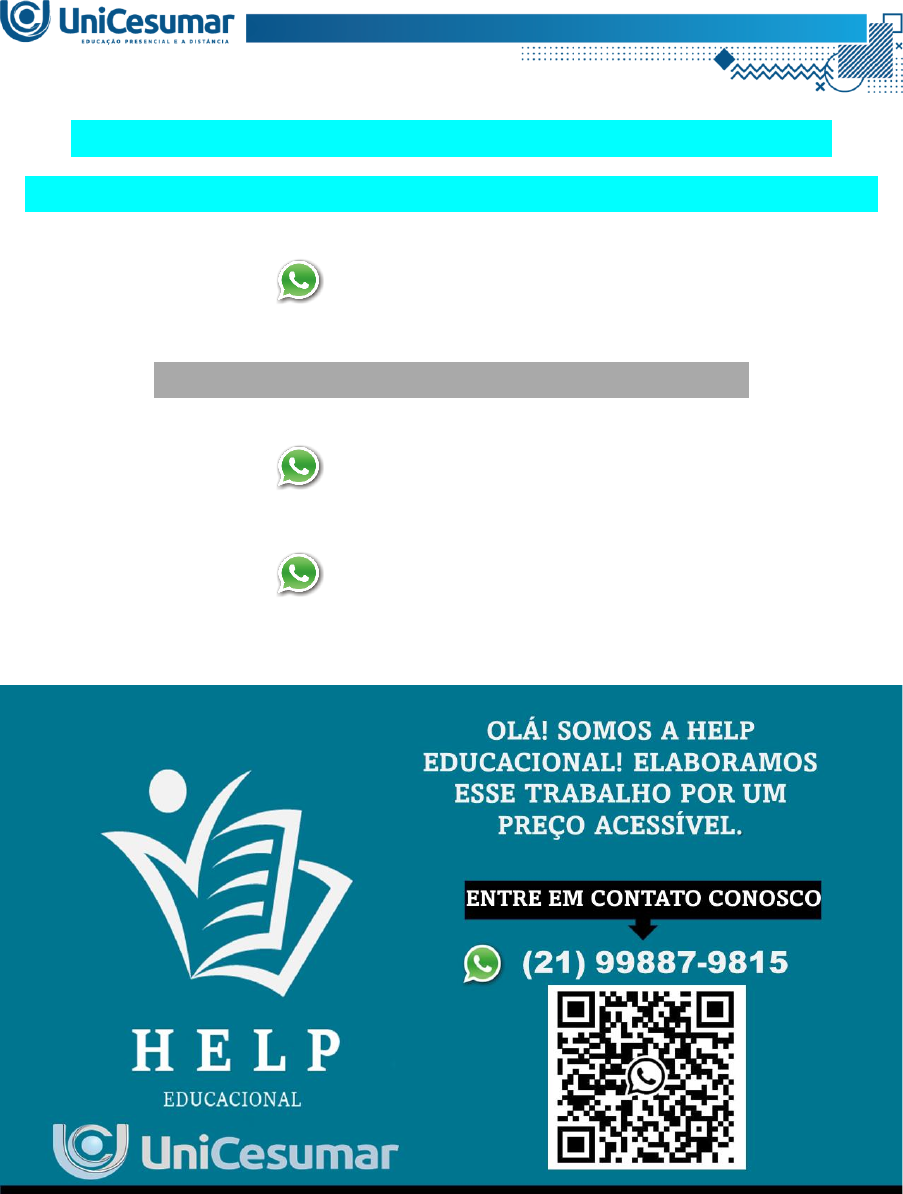 MAPA – TEOL - HISTÓRIA DO CRISTIANISMO: DA REFORMA PROTESTANTE AOS DIAS ATUAIS - 54_2024 (21) 99887-9815 ASSESSORIA NOS SEUS TRABALHOS (21) 99887-9815 (21) 99887-9815 No dia 31 de outubro de 1517, Martinho Lutero anunciou uma nova proposta de re- forma da doutrina católica em frente à igreja de Wittenberg, na Alemanha. Essa data, celebrada a mais de 500 anos, marcou um dos mais importantes movimentos religiosos do mundo. Como estudante de teologia e membro de uma igreja evangé- lica, você percebe que muitos irmãos têm dúvidas sobre esse tema. Para esclarecer essas dúvidas, você deverá criar uma aula em vídeo de 15 a 20 mi- nutos, abordando as causas, principais eventos e consequências da Reforma Pro- testante. A aula deve incluir uma introdução contextualizando o tema, uma explica- ção teórica detalhada, um momento de reflexão crítica e uma avaliação final. Você pode utilizar recursos visuais e interativos para tornar o vídeo dinâmico e educativo. Ao final, as pessoas que assistem devem ser capazes de compreender a importân- cia histórica e teológica da Reforma Protestante e como ela ainda influencia a prá- tica religiosa atual. ESTRUTURA DO VÍDEO Introdução: Contextualize o tema e apresente o cenário em que a Reforma Protes- tante ocorreu. Desenvolvimento: Explique a relevância do tema e faça perguntas que despertem a curiosidade dos alunos; Relacione o tema com o cotidiano dos alunos e sua relevân- cia prática; Incentive os alunos a refletirem sobre a importância da Reforma para a prática religiosa atual; Apresente uma explicação sobre uma das causas, eventos ou consequências da Reforma. Conclusão: Conclua convidando-os ao aprofundamento no tema, e destacando a importância da reforma protestante para o cristianismo. Após a gravação da vídeoaula, faça o upload do vídeo para o Youtube com privaci- dade "não-listado", copie o link e cole no template (formulário padrão) destinado para a resposta dessa atividade ATENÇÃO: Não envie o arquivo do vídeo no campo de respostas do MAPA, sua en- trega deverá ser em formato de link colado dentro do template da atividade, se tiver dúvidas, consulte o vídeo de orientação e o(a) professor(a) mediador(a) OLÁ! SOMOS A HELP EDUCACIONAL! ELABORAMOS ESSE TRABALHO POR UM PREÇO ACESSÍVEL. ENTRE EM CONTATO CONOSCO (21) 99887-9815