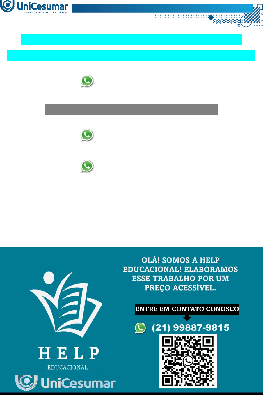 MAPA – TEOL - HISTÓRIA DO CRISTIANISMO: DA REFORMA PROTESTANTE AOS DIAS ATUAIS - 54_2024 (21) 99887-9815 ASSESSORIA NOS SEUS TRABALHOS (21) 99887-9815 (21) 99887-9815 No dia 31 de outubro de 1517, Martinho Lutero anunciou uma nova proposta de reforma da doutrina católica em frente à igreja de Wittenberg, na Alemanha. Essa data, celebrada a mais de 500 anos, marcou um dos mais importantes movimentos religiosos do mundo. Como estudante de teologia e membro de uma igreja evangélica, você percebe que muitos irmãos têm dúvidas sobre esse tema Para esclarecer essas dúvidas, você deverá criar uma aula em vídeo de 15 a 20 minutos, abordando as causas, principais eventos e consequências da Reforma Protestante. A aula deve incluir uma introdução contextualizando o tema, uma explicação teórica detalhada, um momento de reflexão crítica e uma avaliação final. Você pode utilizar recursos visuais e interativos para tornar o vídeo dinâmico e educativo. Ao final, as pessoas que assistem devem ser capazes de compreender a importância histórica e teológica da Reforma Protestante e como ela ainda influencia a prática religiosa atual ESTRUTURA DO VÍDEO Introdução: Contextualize o tema e apresente o cenário em que a Reforma Protestante ocorreu Desenvolvimento: Explique a relevância do tema e faça perguntas que despertem a curiosidade dos alunos; Relacione o tema com o cotidiano dos alunos e sua relevância prática; Incentive os alunos a refletirem sobre a importância da Reforma para a prática religiosa atual; Apresente uma explicação sobre uma das causas, eventos ou consequências da Reforma. Conclusão: Conclua convidando-os ao aprofundamento no tema, e destacando a importância da reforma protestante para o cristianismo. Após a gravação da vídeoaula, faça o upload do vídeo para o Youtube com privacidade "não-listado", copie o link e cole no template (formulário padrão) destinado para a resposta dessa atividade. ATENÇÃO: Não envie o arquivo do vídeo no campo de respostas do MAPA, sua entrega deverá ser em formato de link colado dentro do template da atividade, se tiver dúvidas, consulte o vídeo de orientação e o(a) professor(a) mediador(a) OLÁ! SOMOS A HELP EDUCACIONAL! ELABORAMOS ESSE TRABALHO POR UM PREÇO ACESSÍVEL. ENTRE EM CONTATO CONOSCO (21) 99887-9815 image1.png image2.png image3.png
