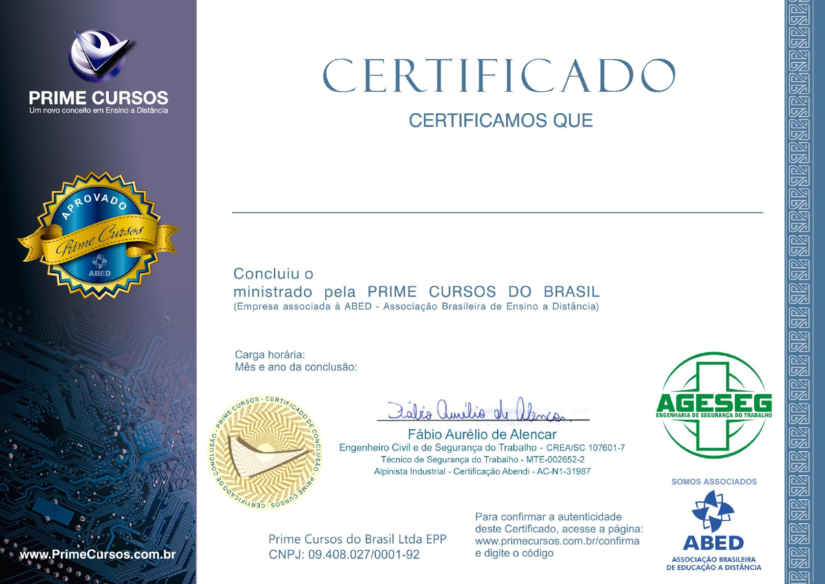 JORGE GABRIEL PALHERES DE OLIVEIRA Curso de NR 10 Básico - Segurança em Instalações e Serviços em Eletricidade 40 horas Março de 2024 10157-12331722 Embasamento Legal: Os Cursos oferecidos pela PRIME CURSOS DO BRASIL, têm base legal constituída pelo Decreto Presidencial nº 5.154 e nossa metodologia segue as normas do MEC através da Resolução CNE nº 04/99. Conteúdo Programático: Apresentação da Norma NR 10 Introdução à Eletricidade Energia Elétrica - Geração, Transmissão e Distribuição Atividades de Manutenção e Inspeção na Geração, Transmissão e Distribuição Riscos em Instalações e Serviços com Eletricidade - Choque Elétrico Tipos de Choques Elétricos Efeitos do Choque Elétrico - Contrações Musculares Efeitos do Choque Elétrico - Queimaduras Causas Determinantes de Choques Elétricos Os Perigos do Arco Elétrico Campos Eletromagnéticos Outros Perigos e Riscos de Ambiente Causas Diretas de Acidentes com Eletricidade Causas Indiretas de Acidentes com Eletricidade Medidas de Controle do Risco Elétrico - MCRE MCRE - Desenergização MCRE - Aterramento Funcional, de Proteção e Temporário (TN / TT / IT) MCRE - Equipotencialização MCRE - Seccionamento Automático da Alimentação MCRE - Dispositivo de proteção a corrente diferencial-residual ?DR MCRE - Proteção por Extrabaixa Tensão: SELV E PELV MCRE - Barreiras e Invólucros MCRE - Bloqueios e Impedimentos MCRE - Isolamento MCRE - Proteção por Colocação Fora de Alcance e Separação Elétrica Equipamentos de Proteção Coletiva e Individual (EPC/EPI) Primeiros Socorros em Caso de Acidente com Eletricidade Documentação de Instalações Elétricas Normas ABNT sobre Instalações Elétricas Bibliografia/Links Recomendados