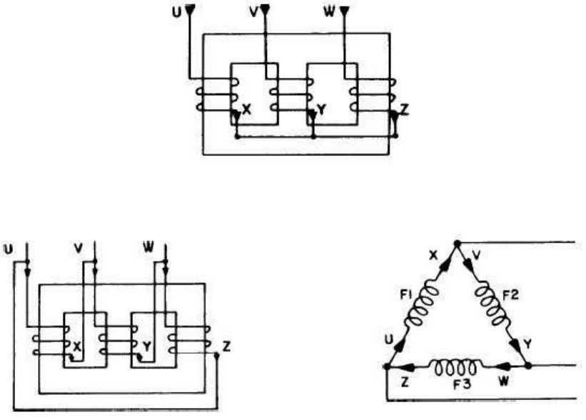 Escola Estadual de Educação Profissional [EEEP] Ensino Médio Integrado à Educação Profissional Automação Industrial – Máquinas e Comandos Elétricos. 62 Como ficou visto acima, essas letras são normalizadas. • U, V e W são sempre entradas. • X, Y e Z são sempre saídas. Para o fechamento em estrela, temos que ligar as três saídas das fases. Fechamos X, Y e Z. Esse fechamento origina o ponto neutro. U, V e W ficam sendo as entradas das fases. Vamos, agora, ao fechamento em triângulo, conforme as notações de entrada e saída. Veja o diagrama abaixo: Esse diagrama representa as conexões internas de um transformador fechado em triângulo. Tem, ainda, as notações de entrada e saída das fases. Em U, V e W temos as entradas das fases. Para o fechamento em triângulo, as ligações são feitas da seguinte forma: • Entrada de F1 com saída de F3 ⇒ U com Z; • Entrada de F2 com saída de F1 ⇒ V com X; • Entrada de F3 com saída de F2 ⇒ X com Y. Essas conexões são válidas para primário e secundário. Vimos os fechamentos estrela e triângulo, conforme as notações para entrada e saída. Vamos, agora, complementá-las: • Para o primário você notará U1, V1 e W1; • Para o secundário você notará U2, V2 e W2. Por norma, temos que observar os terminais que correspondem à entrada e saída do transformador. Não confundir entrada e saída das fases, com a entrada e saída do transformador. Escola Estadual de Educação Profissional [EEEP] Ensino Médio Integrado à Educação Profissional Automação Industrial – Máquinas e Comandos Elétricos. 63 A entrada e saída do transformador se refere aos terminais de entrada e saída do primário e secundário. Esses terminais ficam na tampa, na parte superior externa do transformador. Veja, na figura abaixo, onde tem origem os terminais do primário e secundário. Note que por hipótese, suas fases são ligadas em triângulo e estrela. A notação dos terminais é feita conforme as normas da ABNT: • H1, H2 e H3 ⇒ é usada para os terminais de tensão mais alta; • X1, X2 e X3 ⇒ é usada para os terminais de tensão mais baixa. Essas notações devem obedecer, ainda, a outras regras: O terminal H1 deve ficar à direita de quem olha para os terminais, a partir do lado de tensão mais alta. Em frente a H1 deve ficar o terminal X1, de tensão mais baixa. Escola Estadual de Educação Profissional [EEEP] Ensino Médio Integrado à Educação Profissional Automação Industrial – Máquinas e Comandos Elétricos. 64 Ligação ziguezague A ligação de um secundário em ziguezague é assim denominada porque, como você pode observar nas ilustrações, o secundário das fases é distribuído, metade numa coluna e metade na outra. Veja o exemplo da ligação ziguezague da fase 1. A metade 7-8 está na coluna 1 e a segunda metade (18-17) está na coluna 2. Na ilustração abaixo, você pode perceber como é ligada a fase 2. A primeira metade(11- 12), na coluna 2, e a segunda metade (9-10), na coluna 1. A outra figura representa a fase 3. A primeira metade (15-16) está na coluna 3 e, a segunda (13-14), na coluna 2. Note que todas as primeiras metades estão num sentido e, as segundas metades, em outro. Isso é necessário para retorno do fluxo magnético. Veja como são feitas as ligações de linhas e fases, em ziguezague, no secundário de um transformador. Essa ligação tem saída para o condutor neutro (X0), para cargas monofásicas de 120 volts. Escola Estadual de Educação Profissional [EEEP] Ensino Médio Integrado à Educação Profissional Automação Industrial – Máquinas e Comandos Elétricos. 65 A figura acima, mostra a A figura acima, mostra a representação das bobinas mesma ligação, em secundárias ligadas em representação esquemática. ziguezague, nas colunas. A ligação ziguezague é recomendada para pequenos transformadores de distribuição, cuja carga no secundário não seja equilibrada. Imagine que a carga do secundário, por exemplo, na fase 1, se desequilibra, isto é a fase 1 receba maior carga que os demais. Como a fase 1 está distribuída em 2 colunas, ela recebe indução dessas duas colunas. Assim, a maior carga de fase 1 será compensada pela indução de 2 colunas. Isso tenderá a equilibrar a carga no primário do transformador, resultando menor queda de tensão na fase secundária correspondente. Escola Estadual de Educação Profissional [EEEP] Ensino Médio Integrado à Educação Profissional Automação Industrial – Máquinas e Comandos Elétricos. 66 Capitulo 11 Comandos Elétricos Introdução Comandos elétricos utilizam circuitos onde os equipamentos elétricos têm a função de comandar e controlar o funcionamento de sistemas elétricos, principalmente motores elétricos. Estes tiveram início com os relês eletromecânicos, e depois evoluíram para os contatores e posteriormente nos dias atuais através dos controladores e chaves de controle eletrônico, como os conversores e inversores de frequência. Um simples toque em um interruptor em nossa residência é um tipo de comando elétrico onde o seu funcionamento tem a ação do homem, mas temos também comando que não é necessária a intervenção do homem, como as lâmpadas da iluminação pública onde estas acendem e apagam sozinhas através do comando de uma foto-célula. Os comandos elétricos são aplicados nas indústrias com a finalidade de controlar processos de produção. Dependendo da área de atuação da indústria pode-se trabalhar com comandos elétricos, hidráulicos e/ou pneumáticos. Vemos que apesar da evolução tecnológica nesse ramo através de CLP's (Controladores Lógicos Programáveis), conversores e inversores de frequência, que estão sendo utilizados pelas máquinas industriais, ainda existe muito do "velho comando elétrico" nestas máquinas. Baseado na descrição acima é de suma importância um profissional da área eletroeletrônica conhecer fundamentos básicos e