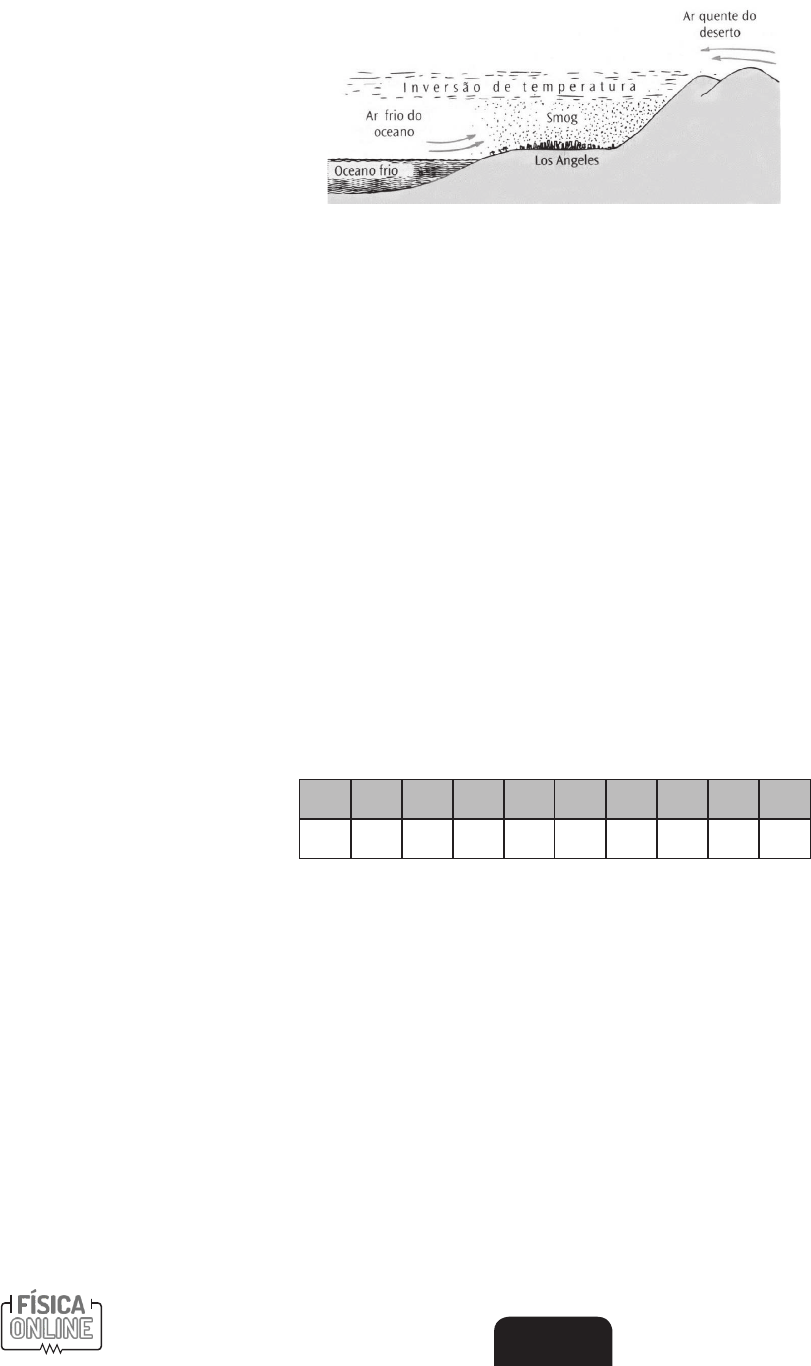 136 Fí si ca - 1. 00 0 Q ue st õe s 9. Em Los Angeles, Estados Unidos, fumaça e outros poluentes atmosféricos constituem o smog, que fica aprisionado sobre a cidade, devido a um fenômeno chamado “Inversão de temperatura”. Isso ocorre quando o ar frio e de baixa altitude, vindo do oceano, é retido sob o ar quente que se move por cima das montanhas, vindo do deserto de Mojave. O fenômeno é representado no esquema a seguir: HEWITT, P. G. Física Conceitual. 11ª ed. Porto Alegre: Bookman, 2011. A principal propriedade física do smog, que dificulta sua dispersão, é A) sua umidade relativa. B) seu calor específico. C) sua densidade. D) seu coeficiente de dilatação volumétrico. 10. Um conjunto de placas de aquecimento solar eleva a temperatura da água de um reservatório de 500 litros de 20 oC para 47 oC em algumas horas. Se no lugar das placas solares fosse usada uma resistência elétrica, quanta energia elétrica seria consumida para produzir o mesmo aquecimento? Adote 1,0 kg/litro para a densidade e 4,0 kJ/(kg ∙oC) para o calor específico da água. Além disso, use 1 kWh = 103 W x 3.600 s = 3,6 x 106 J. A) 15 kWh. B) 26 kWh. C) 40.000 kWh. D) 54.000 kWh. GABARITO CALORIMETRIA - I 1 2 3 4 5 6 7 8 9 10 C A C D D E B B C A 137 Fí si ca - 1. 00 0 Q ue st õe s CALORIMETRIA - II 1. Um médico deseja instalar um aparelho de ar condicionado num laboratório retangular de (6x5)m e 4m de altura para cli- matizá- lo. A temperatura média externa é de 25 oC e a do laboratório deve ser de 20 oC. Depois de ligado, o aparelho deve diminuir essa temperatura em 5 minutos. Considere que, nessa faixa de temperatura, são constantes: o calor específico do ar de 0,25 cal/g.oC e sua densidade de 0,0012 g/cm3. Lembre-se de que 1 BTU = 0,25 kcal. Para atender o desejo do médico, o valor aproximado da potência do aparelho dever ser de: A) 9.000 BTU/h. B) 12.000 BTU/h. C) 18.000 BTU/h. D) 22.000 BTU/h. 2. Durante uma experiência em um laboratório de física, Magali utilizou 1.000 cal de calor para variar, em ∆T, a temperatura de 100 gramas de água, cujo calor específico é igual a 1,0 cal/g.oC. Qual será a quantidade de calor, em quilocalorias, que Magali deverá fornecer para aquecer 250 gramas de batata, cujo calor específico é igual a 1,8 cal/g.oC, para variar a mesma temperatura ∆T sofrida pela água? A) 4,5 B) 45 C) 450 D) 4.500 3. O gráfico 1 mostra a variação da pressão atmosférica em função da altitude e o gráfico 2 a relação entre a pressão atmos- férica e a temperatura de ebulição da água. Gráfico 1 (www.seara.ufc.br. Adaptado.) Gráfico 2 (www.if.ufrgs.br. Adaptado.) Gráfico 1 (www.seara.ufc.br. Adaptado.) Gráfico 2 (www.if.ufrgs.br. Adaptado.) Considerando o calor específico da água igual a 1,0 cal/(g · oC), para aquecer 200 g de água, de 20 oC até que se ini- cie a ebulição, no topo do Pico da Neblina, cuja altitude é cerca de 3.000 m em relação ao nível do mar, é necessário fornecer para essa massa de água uma quantidade de calor de, aproximadamente, A) 4,0 × 103 cal. B) 1,4 × 102 cal. C) 1,2 × 103 cal. D) 1,2 × 107 cal. E) 1,4 × 104 cal. 4. Em um recipiente de capacidade térmica desprezível, 300 g de água, inicialmente a 20 oC, foram aquecidos.Após 2,0 minutos, quando a temperatura da água era 40 oC, mais 300 g de água a 20 oC foram adicionados ao recipiente. Considerando que não ocorreu perda de calor da água para o meio e que a fonte fornece calor a uma potência constante durante o processo, o tempo decorrido, após a adição da água, para que a temperatura da água atingisse 80 oC foi de A) 5,0 min. B) 14,0 min. C) 10,0 min. D) 15,0 min. E) 8,0 min. 138 Fí si ca - 1. 00 0 Q ue st õe s 5. Willian é uma pessoa metódica e sempre prepara seu chá com água a 85 oC. Certo dia, ao preparar o chá, percebeu que a água estava a 95 oC e, para atingir a temperatura desejada, adicionou no bule certa quantidade de água a 25 oC. Considere que a troca de calor se deu apenas entre a água que estava no bule e a que foi adicionada. Sabendo que inicialmente o bule continha 600 g de água, a quantidade de água, em gramas, colocada no bule para atingir a temperatura de 85 oC foi A) 240 B) 180 C) 300 D) 100 E) 60 6. Em um laboratório de física é encontrado um frasco opaco contendo 100 g de um líquido desconhecido, armazenado na geladeira do laboratório a uma tempera- tura de 6 graus Celsius. Um estudante deseja identificar o líquido sem abrir o frasco, usando um calorímetro ideal. No calorímetro, o estudante insere 100 ml de água pura, a 20 graus Celsius, e em seguida insere o frasco contendo o líquido. Após certo tempo, o frasco com o líquido desconhecido entra em equilíbrio térmico com a água, que passa a ter uma temperatura de 16 graus Celsius. Vamos supor que não há trocas de calor do conteúdo do calorímetro com o ambiente, e que a massa do frasco seja desprezível. O calor específico da água é de aproximadamente 4,2 J g–1 K–1 e sua densidade é 1,0 g/ml. A tabela abaixo tem a informação do calor específico de uma variedade de líquidos. Qual deles deve ser o líquido desconhecido? SUBSTÂNCIA CALOR ESPECÍFICO (J g–1 K–1) Tolueno 1,59 Azeite 1,68 Acetona 2,13 Glicerina 2,43 Parafina 3,26 A) Parafina. B) Glicerina. C) Acetona. D) Azeite. E) Tolueno. 7. Um garçom coloca 2 cubos de gelo, que estão a 0 oC, para refrescar um suco de fruta que está inicialmente a 25 oC. A massa de cada cubo de gelo é 10 gramas, e o volume do suco é 0,5 litro. Suponha que o copo de suco esteja dentro de um recipiente de isopor de forma que não ocorra troca de calor com o ambiente. A quantidade de calor cedida pelo suco é suficiente para derreter o gelo. Após ter sido atingido o equilíbrio térmico entre a massa original de gelo e o suco, a temperatura final da mistura é, em oC, aproximadamente, Dados: Densidade do suco = 1 g/cm3; 1 litro = 103 cm3 Calor específico do suco = Calor específico da 