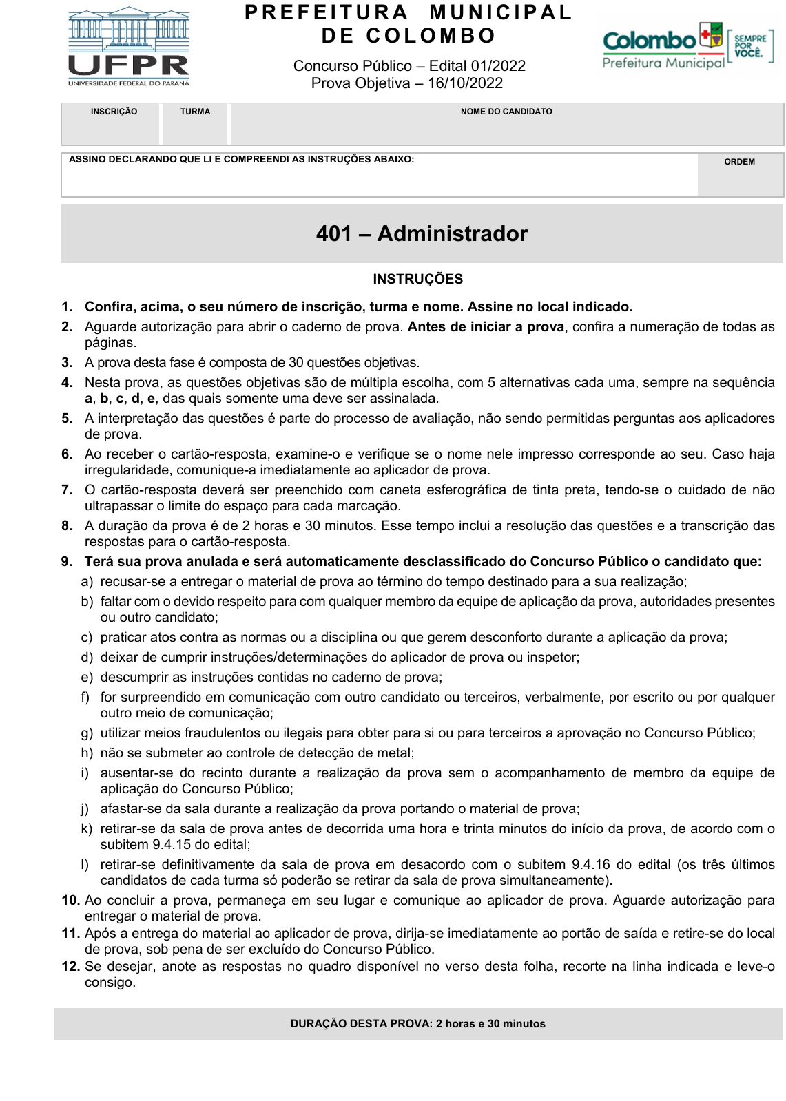 pcimarkpci MDAwMDowMDAwOjAwMDA6MDAwMDowMDAwOmZmZmY6YzkxMDpjMzEx:V2VkLCAyMCBOb3YgMjAyNCAxMDowMDo0NiAtMDMwMA== www.pciconcursos.com.br P R E F E I T U R A M U N I C I P A L D E C O L O M B O Concurso Público – Edital 01/2022 Prova Objetiva – 16/10/2022 INSCRIÇÃO TURMA NOME DO CANDIDATO ASSINO DECLARANDO QUE LI E COMPREENDI AS INSTRUÇÕES ABAIXO: ORDEM 401 – Administrador INSTRUÇÕES 1. Confira, acima, o seu número de inscrição, turma e nome. Assine no local indicado. 2. Aguarde autorização para abrir o caderno de prova. Antes de iniciar a prova, confira a numeração de todas as páginas. 3. A prova desta fase é composta de 30 questões objetivas. 4. Nesta prova, as questões objetivas são de múltipla escolha, com 5 alternativas cada uma, sempre na sequência a, b, c, d, e, das quais somente uma deve ser assinalada. 5. A interpretação das questões é parte do processo de avaliação, não sendo permitidas perguntas aos aplicadores de prova. 6. Ao receber o cartão-resposta, examine-o e verifique se o nome nele impresso corresponde ao seu. Caso haja irregularidade, comunique-a imediatamente ao aplicador de prova. 7. O cartão-resposta deverá ser preenchido com caneta esferográfica de tinta preta, tendo-se o cuidado de não ultrapassar o limite do espaço para cada marcação. 8. A duração da prova é de 2 horas e 30 minutos. Esse tempo inclui a resolução das questões e a transcrição das respostas para o cartão-resposta. 9. Terá sua prova anulada e será automaticamente desclassificado do Concurso Público o candidato que: a) recusar-se a entregar o material de prova ao término do tempo destinado para a sua realização; b) faltar com o devido respeito para com qualquer membro da equipe de aplicação da prova, autoridades presentes ou outro candidato; c) praticar atos contra as normas ou a disciplina ou que gerem desconforto durante a aplicação da prova; d) deixar de cumprir instruções/determinações do aplicador de prova ou inspetor; e) descumprir as instruções contidas no caderno de prova; f) for surpreendido em comunicação com outro candidato ou terceiros, verbalmente, por escrito ou por qualquer outro meio de comunicação; g) utilizar meios fraudulentos ou ilegais para obter para si ou para terceiros a aprovação no Concurso Público; h) não se submeter ao controle de detecção de metal; i) ausentar-se do recinto durante a realização da prova sem o acompanhamento de membro da equipe de aplicação do Concurso Público; j) afastar-se da sala durante a realização da prova portando o material de prova; k) retirar-se da sala de prova antes de decorrida uma hora e trinta minutos do início da prova, de acordo com o subitem 9.4.15 do edital; l) retirar-se definitivamente da sala de prova em desacordo com o subitem 9.4.16 do edital (os três últimos candidatos de cada turma só poderão se retirar da sala de prova simultaneamente). 10. Ao concluir a prova, permaneça em seu lugar e comunique ao aplicador de prova. Aguarde autorização para entregar o material de prova. 11. Após a entrega do material ao aplicador de prova, dirija-se imediatamente ao portão de saída e retire-se do local de prova, sob pena de ser excluído do Concurso Público. 12. Se desejar, anote as respostas no quadro disponível no verso desta folha, recorte na linha indicada e leve-o consigo. DURAÇÃO DESTA PROVA: 2 horas e 30 minutos pcimarkpci MDAwMDowMDAwOjAwMDA6MDAwMDowMDAwOmZmZmY6YzkxMDpjMzEx:V2VkLCAyMCBOb3YgMjAyNCAxMDowMDo0NiAtMDMwMA== www.pciconcursos.com.br RESPOSTAS 01 04 - 07 - 10 - 13 - 16 - 19 - 22 - 25 - 28 - 02 - 05 - 08 - 11 - 14 - 17 - 20 - 23 - 26 - 29 - 03 - 06 - 09 - 12 - 15 - 18 - 21 - 24 - 27 - 30 - ........................................................................................................................................................................................................... pcimarkpci MDAwMDowMDAwOjAwMDA6MDAwMDowMDAwOmZmZmY6YzkxMDpjMzEx:V2VkLCAyMCBOb3YgMjAyNCAxMDowMDo0NiAtMDMwMA== www.pciconcursos.com.br 3/7 LÍNGUA PORTUGUESA O texto a seguir é referência para as questões 01 a 10. Guerra diminuiu apetite por risco de investidores de startup Emanuel Pessoa Desde a crise financeira de 2008, os países desenvolvidos, principalmente os Estados Unidos, injetam grandes volumes de 1 dinheiro na economia. Isso aumentou fortemente a quantidade de capital disponível nos mercados, com mais dinheiro em circulação 2 nos últimos 14 anos. 3 Um dos efeitos colaterais foi o inchaço do valor de mercado das empresas de tecnologia e o aumento descomunal no número 4 de startups investidas. Com dinheiro ______ preço extremamente baixo se comparado ao período pré-2008, os investidores tinham 5 dinheiro em excesso e aportaram em empresas de mérito duvidoso. Só no Brasil, as startups receberam US$ 9,4 bilhões em 2021, 6 segundo levantamento da plataforma Distrito. 7 , essa tendência apresenta desgaste. O ponto de inflexão pode ser a guerra da Ucrânia. Nos últimos meses, 8 muitos investidores já demonstraram a necessidade de verem resultados concretos de suas investidas. No entanto, a maior parte 9 deles ainda os ignorava diante de um discurso megalomaníaco por parte dos fundadores do próximo Uber disso ou do novo 10 Facebook daquilo. 11 O conflito provocou um aumento fortíssimo no preço das commodities, já que as sanções contra a Rússia e o receio de uma 12 escalada na disputa armada levaram os investidores ______ anteciparem uma subida futura de preços, comprarem mais para 13 estocar e aportarem capital em várias delas (sendo o ouro um exemplo) para proteger seu dinheiro. 14 Assim, o apetite por risco diminuiu de modo que as startups agora precisam comprovar uma relação de probabilidade entre 15 risco e retorno, muito superior ao período precedente ______ guerra, para receberem os mesmos investimentos. 16 Embora o capital barato tenha incentivado o crescimento de startups, esse tipo de montante também mascarava