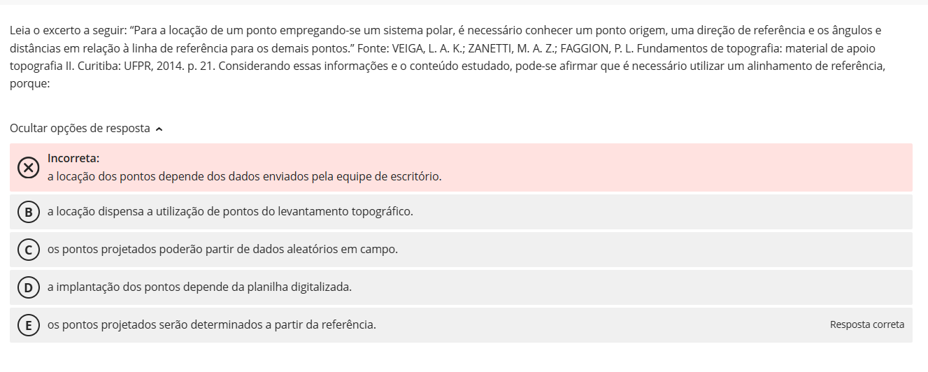 Para determinar o erro angular, o que deve ser verificado primeiramente com relação à poligonal? A. Se a poligonal tem desnível. B. Se a poligonal é q