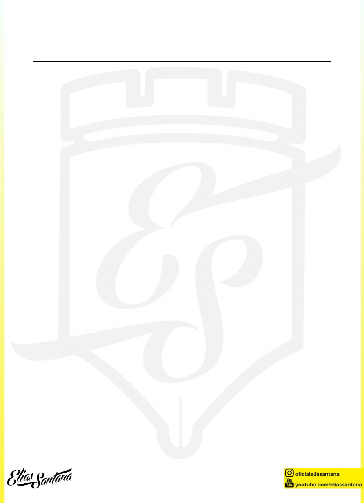 SINTAXE DO PERÍODO SIMPLES Português Eficaz | Professor Elias Santana Introdução A sintaxe do período simples é um tema fundamental nos estudos de língua portuguesa para concursos. Iremos explorar em detalhes os principais conceitos relacionados a esse tópico, fornecendo uma base sólida para o entendimento da estrutura das orações e seus elementos. 1. O Período Simples 1.1 Definição de Período Simples O período simples é uma unidade textual que vai da letra maiúscula até o ponto final e contém apenas uma oração, ou seja, um único verbo ou locução verbal. 1.2 Estrutura do Período Simples A estrutura básica do período simples é composta por dois termos essenciais: 1. Sujeito 1. Predicado O sujeito é o termo com o qual o verbo concorda, enquanto o predicado é tudo aquilo que não é sujeito. 1.3 Ordem Direta da Oração Na língua portuguesa, existe uma ordem preferencial para a organização dos termos na oração, conhecida como ordem direta ou canônica. Essa ordem segue o padrão: S + V + C + A Em que: 1. S = Sujeito 1. V = Verbo 1. C = Complemento 1. A = Adjunto adverbial Por exemplo: "O aluno (S) estudou (V) a lição (C) ontem à noite (A)." É importante ressaltar que, embora essa seja a ordem preferencial, a língua portuguesa permite inversões na sentença, o que pode alterar essa estrutura em determinados contextos. 2. O Sujeito 2.1 Definição de Sujeito O sujeito é o termo da oração com o qual o verbo estabelece concordância (concordância verbal). 2.2 Identificação do Sujeito Para identificar o sujeito em uma oração, podemos seguir alguns passos: 1. Localizar o verbo da oração 1. Fazer a pergunta "quem?" ou "o que?" antes do verbo 1. A resposta a essa pergunta será o sujeito Além disso, é importante observar algumas características do sujeito: 1. Não é separado do verbo por vírgula 1. Não é preposicionado (não começa com preposição) 1. Possui um núcleo, que é um substantivo sem preposição 2.3 Tipos de Sujeito · Sujeito Expresso O sujeito expresso é aquele que aparece claramente na oração, sendo facilmente identificável. Ele pode ser classificado em dois tipos: simples e composto. 1. Sujeito Simples O sujeito simples é aquele que possui apenas um núcleo, ou seja, um elemento principal que exerce a função de sujeito na oração. Exemplos: 1. O cachorro latiu durante a noite. 1. As crianças brincavam no parque. 1. A professora explicou a lição. Nestes exemplos, os termos "cachorro", "crianças" e "professora" são os núcleos dos sujeitos simples em suas respectivas orações. 2. Sujeito Composto O sujeito composto, por sua vez, é aquele que possui dois ou mais núcleos. Isso significa que há mais de um elemento exercendo a função de sujeito na oração. Exemplos: 1. O pai e a mãe chegaram do trabalho. 1. Carros, motos e bicicletas transitavam pela avenida. 1. O sol, a lua e as estrelas iluminam o céu. Nos exemplos acima, podemos observar que há mais de um elemento exercendo a função de núcleo do sujeito em cada oração. · Sujeito Não Expresso O sujeito não expresso é aquele que não aparece explicitamente na oração, mas pode ser identificado pelo texto ou pelo discurso. Existem dois tipos de sujeito não expresso: o elíptico (desinencial ou oculto) e o indeterminado. 1. Sujeito Elíptico (Oculto ou Desinencial) O sujeito elíptico, também chamado de oculto ou desinencial, é aquele que não está explícito na oração, mas pode ser facilmente identificado pelo texto ou pelo discurso. Este tipo de sujeito ocorre em três situações principais: 1. Quando o verbo está na primeira ou segunda pessoa do singular ou plural: 0. (Eu) Preciso estudar mais. 0. (Nós) Vamos ao cinema hoje à noite. 0. (Tu) Falas com muita eloquência. 0. (Vós) Sois muito gentis. 1. Quando o verbo está na terceira pessoa do singular: 1. (Ele/Ela) Chegou cedo hoje. 1. (Ele/Ela) Gosta muito de música clássica. 1. Quando o verbo está na terceira pessoa do plural, mas com referente textual: 2. Os alunos fizeram a prova. (Eles) Terminaram rapidamente. 2. As crianças brincavam no parque. (Elas) Corriam e pulavam sem parar. É importante notar que, no caso da terceira pessoa do singular ou plural, sempre haverá um referente textual que permite identificar o sujeito oculto. 2. Sujeito Indeterminado O sujeito indeterminado é aquele que não pode ser identificado pelo texto ou pelo discurso. Existem três formas principais de indeterminar o sujeito: 1. Verbo na terceira pessoa do plural sem referente textual: 0. Roubaram minha carteira ontem. 0. Dizem que vai chover amanhã. 0. Estão construindo um novo shopping na cidade. 1. Verbo na terceira pessoa do singular + partícula "se" (índice de indeterminação do sujeito): 1. Precisa-se de funcionários. 1. Vive-se bem nesta cidade. 1. Trabalha-se muito nesta empresa. 1. Verbo no infinitivo impessoal: 2. É importante preservar o meio ambiente. 2. Viver é aprender constantemente. 2. Sorrir faz bem à saúde. · Orações Sem Sujeito As orações sem sujeito são aquelas em que o verbo não possui um termo para estabelecer concordância. Nestes casos, o verbo é chamado de impessoal e sempre permanece na terceira pessoa do singular. Existem três situações principais em que ocorrem orações sem sujeito: 1. Verbos que indicam fenômenos da natureza Os verbos que indicam fenômenos naturais são sempre impessoais e, portanto, não admitem sujeito. Alguns exemplos são: 1. Choveu muito ontem. 1. Está nevando nas montanhas. 1. Ventava forte durante a tempestade. 1. Anoiteceu rapidamente. 1. Relampejou várias vezes durante a noite. 2. Verbo "haver" no sentido de "existir", "ocorrer" ou "acontecer" Quando o verbo "haver" é utilizado com o sentido de "existir", "ocorrer" ou "acontecer", ele se torna impessoal e, consequentemente, não admite sujeito. Exemplos: 1. Há muitas pessoas na fila do banco. 1. Houve um acidente na rodovia. 1. Haverá uma reunião importante aman