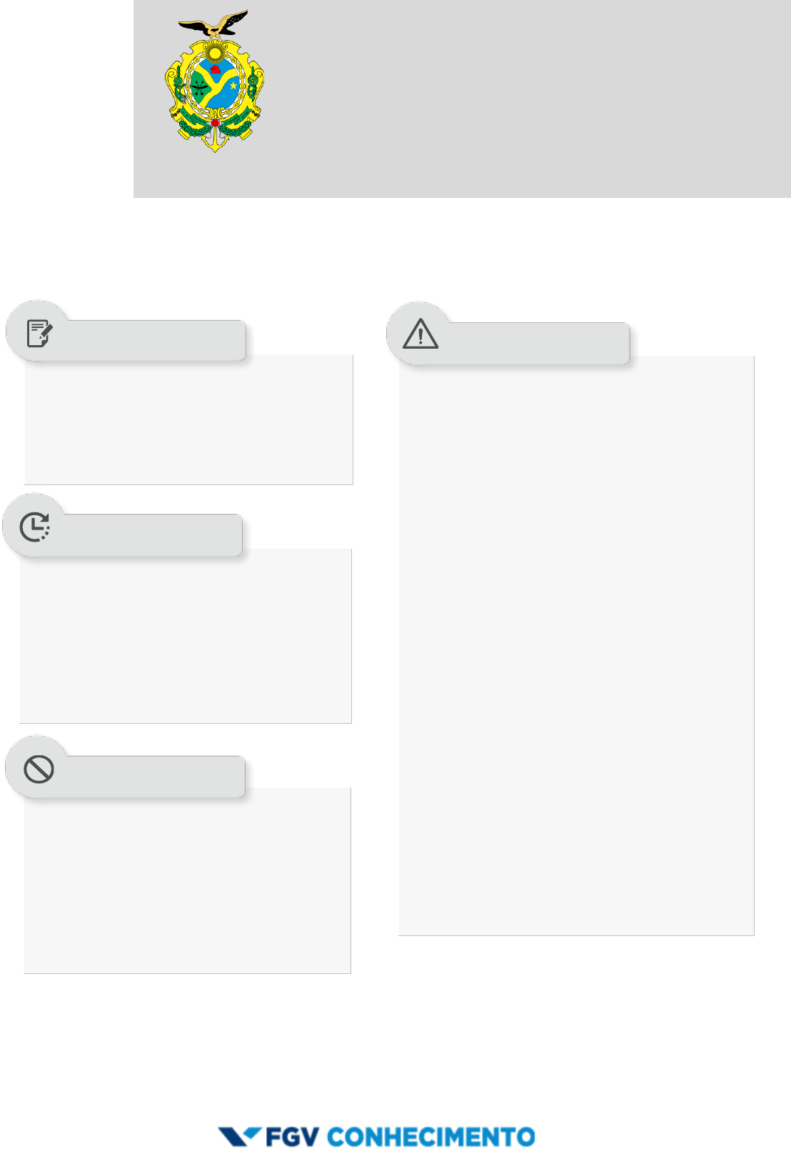 SSP-AM SECRETARIA DE SEGURANÇA PÚBLICA DO AMAZONAS TARDE ASSISTENTE OPERACIONAL NÍVEL MÉDIO TIPO 1 – BRANCA As questões objetivas têm cinco alternativas de resposta (A, B, C, D, E) e somente uma delas está correta; Além deste caderno contendo sessenta questões objetivas, você receberá do fiscal de prova a folha de respostas. Verifique se seu caderno está completo, sem repetição de questões ou falhas. Caso contrário, notifique imediatamente o fiscal da sala, para que sejam tomadas as devidas providências; Confira seus dados pessoais, especialmente nome, número de inscrição e documento de identidade e leia atentamente as instruções para preencher a folha de respostas; Use somente caneta esferográfica, fabricada em material transparente, com tinta preta ou azul; Assine seu nome apenas no(s) espaço(s) reservado(s); Confira seu cargo, cor e tipo do caderno de provas. Caso tenha recebido caderno de cargo ou cor ou tipo diferente do impresso em sua folha de respostas, o fiscal deve ser obrigatoriamente informado para o devido registro na ata da sala; Reserve tempo suficiente para o preenchimento da sua folha de respostas. O preenchimento é de sua responsabilidade e não será permitida a troca da folha de respostas em caso de erro cometido por você; Para fins de avaliação, serão levadas em consideração apenas as marcações realizadas na folha de respostas; A FGV coletará as impressões digitais dos candidatos na folha de respostas; Os candidatos serão submetidos ao sistema de detecção de metais quando do ingresso e da saída de sanitários durante a realização das provas; Boa sorte! Você dispõe de 3 horas e 30 minutos para a realização da prova, já incluído o tempo para a marcação da folha de respostas; 2 horas após o início da prova é possível retirar- se da sala, sem levar o caderno de prova; A partir dos 15 minutos anteriores ao término da prova é possível retirar-se da sala levando o caderno de provas. Qualquer tipo de comunicação entre os candidatos durante a aplicação da prova; Anotar informações relativas às respostas em qualquer outro meio que não seja o caderno de prova; Levantar da cadeira sem autorização do fiscal de sala; Usar o sanitário ao término da prova, após deixar a sala. SUA PROVA TEMPO NÃO SERÁ PERMITIDO INFORMAÇÕES GERAIS SECRETARIA DE SEGURANÇA PÚBLICA DO ESTADO DO AMAZONAS - SSPAM FGV Assistente Operacional Tipo 1 – Branca – Página 2 Língua Portuguesa As questões desta prova, elaboradas a partir de pequenos textos cuja temática está relacionada com a sua futura atividade, pretendem verificar a sua capacidade de interpretar/compreender textos, e de redigir com correção e adequação. 1 “A segurança pública é um direito humano fundamental, essencial à preservação da vida e à garantia de direitos. Portanto, independentemente de condição social, econômica, política, filosófica, a todo ser humano lhe é assegurado o direito de viver em segurança.” Assinale a afirmação correta sobre o conteúdo desse texto. (A) A segurança pública é uma causa da existência dos direitos humanos. (B) Os direitos humanos diferem em função das condições sociais dos cidadãos. (C) Entre os direitos humanos fundamentais está a segurança de todos. (D) A segurança pública garante a todos o direito à vida. (E) Os direitos sociais, econômicos, políticos e filosóficos são garantidos pela segurança pública. 2 Um jurista conhecido disse: “O grande mal do Brasil tem sido o crime sem castigo. O que reduz a criminalidade é a certeza da punição”. Esse pensamento está dividido em dois períodos, separados por um ponto. Em relação ao primeiro período, o segundo mostra a seguinte função: (A) explicar o que é um crime sem castigo. (B) indicar a consequência de os crimes ficarem impunes. (C) justificar a opinião dada anteriormente. (D) mostrar outro parecer independente do primeiro. (E) retificar uma falha do pensamento anterior. ATENÇÃO: o enunciado a seguir refere-se às duas próximas questões. O ex-ministro da Fazenda Roberto Campos afirmou: “Nossa Constituição é uma mistura de dicionário de utopias e regulamentação minuciosa do efêmero”. 3 Ao afirmar que nossa Constituição se mostra como um “dicionário de utopias”, o ex-ministro quer dizer que as leis (A) estão dispostas em ordem alfabética. (B) são de difícil entendimento pelos cidadãos. (C) tratam de fatos de difícil ocorrência. (D) mostram-se de impossível efetivação. (E) se fundamentam em princípios filosóficos. 4 Quando, no mesmo pensamento, o ex-ministro declara que nossa Constituição traz “uma regulamentação minuciosa do efêmero”, ele quer mostrar que nossas leis (A) se perdem em detalhes inúteis. (B) tratam de fatos de rara ocorrência. (C) exploram os temas de forma profunda. (D) indicam medidas sem aplicabilidade. (E) recomendam providências que não se tomam. 5 O ex-presidente americano Thomas Jefferson declarou que “Fundamental é aplicar a lei a homens de todas as condições”. O segmento sublinhado traz um verbo no infinitivo e, por isso, a oração em que esse segmento está inserido denomina-se reduzida de infinitivo. A forma de oração desenvolvida adequada desse segmento é (A) que se aplicasse. (B) que a lei fosse aplicada. (C) a lei ser aplicada. (D) a aplicação da lei. (E) que se aplique. 6 Nosso grande escritor Machado de Assis escreveu em uma de suas crônicas: “Creio em poucas coisas, e uma das que entram no meu credo é a justiça, tanto a do céu como a da terra, assim a pública como a particular”. Considerando os componentes desse pensamento, podemos afirmar que: (A) a afirmação mais importante do pensamento é a de que Machado crê integralmente na justiça. (B) os argumentos que defendem a afirmação inicial são “tanto a do céu como a da terra, assim a pública como a particular”. (C) a afirmação inicial do texto é fruto dos in