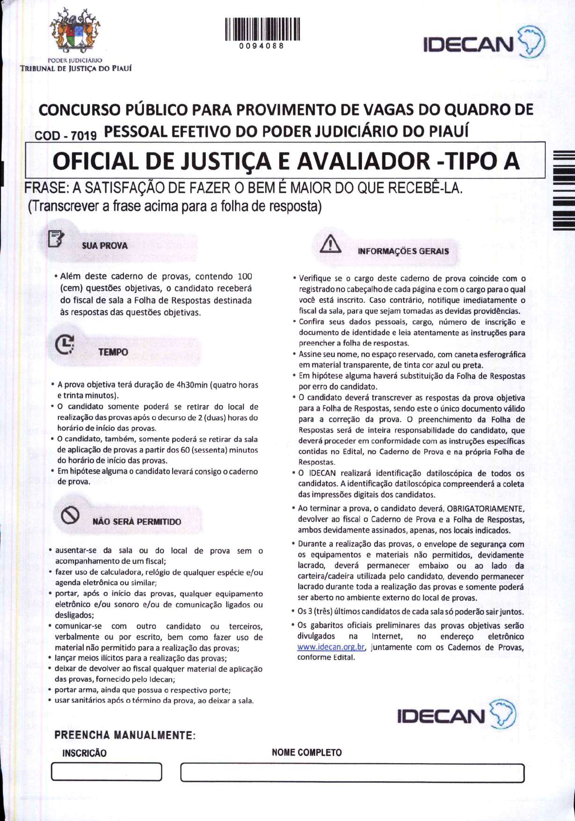 PODER JUDICIÁRIO TRIBUNAL DE JUSTIÇA DO PIAUÍ CONCURSO PÚBLICO PARA PROVIMENTO DE VAGAS DO QUADRO DE 0094088 cop - 7019 PESSOAL EFETIVO DO PODER JUDICIÁRIO DO PIAUÍ IDECANS) OFICIAL DE JUSTIÇA E AVALIADOR -TIPO A FRASE: A SATISFAÇÃO DE FAZER O BEM É MAIOR DO QUE RECEBÊ-LA. (Transcrever a frase acima para a folha de resposta) E, SUA PROVA * Além deste caderno de provas, contendo 100 (cem) questões objetivas, o candidato receberá do fiscal de sala a Folha de Respostas destinada às respostas das questões objetivas. L. ” TEMPO * A prova objetiva terá duração de 4h30min (quatro horas e trinta minutos). * O candidato somente poderá se retirar do local de realização das provas após o decurso de 2 (duas) horas do horário de início das provas. * O candidato, também, somente poderá se retirar da sala de aplicação de provas a partir dos 60 (sessenta) minutos do horário de início das provas. * Em hipótese alguma o candidato levará consigo o caderno de prova. SO NÃO SERÁ PERMITIDO * ausentar-se da sala ou do local de prova sem o acompanhamento de um fiscal; * fazer uso de calculadora, relógio de qualquer espécie e/ou agenda eletrônica ou similar; * portar, após o início das provas, qualquer equipamento eletrônico e/ou sonoro e/ou de comunicação ligados ou desligados; * comunicar-se com outro candidato ou terceiros, verbalmente ou por escrito, bem como fazer uso de material não permitido para a realização das provas; * lançar meios ilícitos para a realização das provas; * deixar de devolver ao fiscal qualquer material de aplicação das provas, fornecido pelo Idecan; * portar arma, ainda que possua o respectivo porte; * usar sanitários após o término da prova, ao deixar a sala. PREENCHA MANUALMENTE: INSCRIÇÃO A INFORMAÇÕES GERAIS * Verifique se o cargo deste caderno de prova coincide com o registrado no cabeçalho de cada página e com o cargo para o qual você está inscrito. Caso contrário, notifique imediatamente o fiscal da sala, para que sejam tomadas as devidas providências. Confira seus dados pessoais, cargo, número de inscrição e documento de identidade e leia atentamente as instruções para preencher a folha de respostas. Assine seu nome, no espaço reservado, com caneta esferográfica em material transparente, de tinta cor azul ou preta. Em hipótese alguma haverá substituição da Folha de Respostas por erro do candidato. O candidato deverá transcrever as respostas da prova objetiva para a Folha de Respostas, sendo este o único documento válido para a correção da prova. O preenchimento da Folha de Respostas será de inteira responsabilidade do candidato, que deverá proceder em conformidade com as instruções específicas contidas no Edital, no Caderno de Prova e na própria Folha de Respostas. O IDECAN realizará identificação datiloscópica de todos os candidatos. A identificação datiloscópica compreenderá a coleta das impressões digitais dos candidatos. Ao terminar a prova, o candidato deverá, OBRIGATORIAMENTE, devolver ao fiscal o Caderno de Prova e a Folha de Respostas, ambos devidamente assinados, apenas, nos locais indicados. Durante a realização das provas, o envelope de segurança com os equipamentos e materiais não permitidos, devidamente lacrado, deverá permanecer embaixo ou ao lado da carteira/cadeira utilizada pelo candidato, devendo permanecer lacrado durante toda a realização das provas e somente poderá ser aberto no ambiente externo do local de provas. Os 3 (três) últimos candidatos de cada sala só poderão sair juntos. Os gabaritos oficiais preliminares das provas objetivas serão divulgados na Intemet, no endereço eletrônico www.idecan.org.br, juntamente com os Cadernos de Provas, conforme Edital. IDECANS) NOME COMPLETO CARGO: OFICIAL DE JUSTIÇA E AVALIADOR - TIPO A ( ) N a 4 IDECANS, | LÍNGUA PORTUGUESA | Texto para as questões 1 a 25 As ruínas de culto misterioso milenar que pode mudar entendimento da pré-história N a s a S o r R O N S A D O S s I N H A S = S 2 S B S B S I N D A R A S I B S B I S S E S S I S S B B I S A E S N D O carro deslizava suavemente pela rodovia impecavelmente conservada de AlUla, uma região no noroeste da Arábia Saudita, quando o motorista saiu abruptamente da estrada. "Perdi o desvio", disse ele. Olhei pela janela meio confusa, pois não conseguia ver uma curva óbvia. "Aqui", exclamou ele, enquanto o carro sacudia pelas rochas de basalto para pegar um caminho quase imperceptível para o deserto. : Seguimos por uma paisagem vasta e plana. Um céu azul brilhante nos cercava por todos os lados, e um punhado de nuvens brancas pairava baixo. Depois de alguns minutos, paramos em um círculo de pedras empilhadas. Saí do carro, esperando encontrar Jane McMahon, integrante de uma equipe de arqueólogos da Universidade da Austrália Ocidental que trabalha em AlUla desde 2018. Ao meu redor havia uma planície árida de rochas cinza-escuro levemente polvilhadas com areia rosada. Havia algo de sobrenatural naquilo tudo: a falta de uma única árvore ou pedaço de grama; a quietude do ar que só era interrompida de vez em quando por uma rajada implacável de vento que gelava até os ossos. Vim até aqui porque as recentes descobertas em AlUla estão lançando luz sobre um período fascinante da história na Arábia Saudita. Como o país só abriu para pesquisas internacionais há alguns anos (e para turistas em 2019), muitos de seus sitios arqueológicos antigos estão sendo estudados pela primeira vez. Embora os historiadores estejam familiarizados com as ruínas das cidades de cerca de 2.000 anos de Hegra e Dadan, localizadas na Rota do Incenso (as tumbas e monumentos de Hegra são Patrimônio Mundial da Unesco), eles não tinham muito conhecimento sobre a civilização que veio antes — até agora. Eles descobriram que, espalhados pela vasta e remota paisagem de AlUla, estão vestígios arqueológicos milenares que podem mudar nossa compreensão da pré-h
