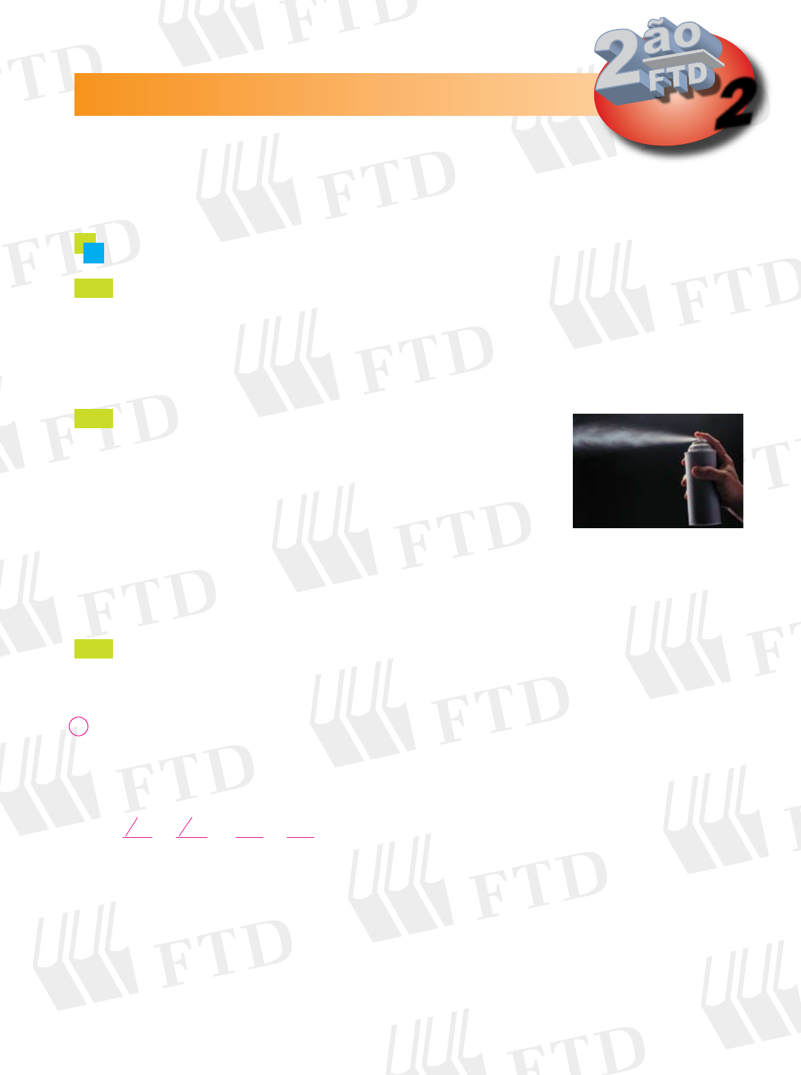 � Resolução das atividades complementares Física F6 — Termodinâmica p. 46 2 1 Após fecharmos a porta de um freezer, observamos que se torna difícil abri-la imediatamente, o que nos leva a esperar algum tempo para repetir essa operação. Explique por que isso ocorre. 2 O gás contido num recipiente de aerossol não é inflamável, mas, mesmo assim, esses recipientes trazem a recomendação de que não podem ser levados ao fogo. Por que é feita essa recomendação? C or el S to ck P ho to 3 (Fatec-SP) Um gás está colocado num cilindro tampado com um êmbolo móvel. Sob pressão de 1 atm e temperatura de 27 °C, esse gás ocupa um volume de 200 mL. O gás sofre uma transformação isobárica que aumenta seu volume para 300 mL. Sua pressão e temperatura nessas condições serão: a) 1 atm e 177 °C c) 1 atm e 54 °C e) 2 atm e 127 °C b) 1 atm e 72 °C d) 2 atm e 27 °C Resolução: É que o aumento da pressão interna do gás, causado pelo forte aquecimento (transformação isométrica), pode provocar o rompimento do recipiente. Resposta pessoal. Resolução: Se a transformação é isobárica, a pressão permanece constante. Assim: p2 5 p1 5 1 atm. Usando-se a equação geral dos gases, temos: p V T p V T T T K T 1 1 1 2 2 2 2 2 2 200 300 300 450 450 27 5 5 5 5 2 → → 33 1772T 5 °C � 4 (Acafe-SC) Um gás ideal sofre uma transformação isobárica de tal forma que seu volume aumenta 20%. A alternativa verdadeira que contém a variação da temperatura do gás nessa transformação é: a) 87 °C a 27 °C c) 100 °C a 120 °C e) 120 °C a 100 °C b) 27 °C a 87 °C d) 80 °C a 100 °C 5 (UERJ) Um equilibrista se apresenta sobre uma bola, calibrada para ter uma pressão de 2,0 atm a uma temperatura de 300 K. Após a apresentação, essa temperatura se elevou para 306 K. Considere desprezível a variação no volume da bola. Calcule a pressão interna final da bola. 6 (UPE-PE) Num sistema de oxigenação de aquário de peixes ornamentais, pode-se observar que as bolhas de ar, produzidas pela bomba no fundo da caixa de vidro, iniciam-se com volume reduzido e chegam à superfície com volume maior. De igual forma, uma bolha de ar repousa no fundo de um lado, à temperatura de 4,0 °C. Num dado momento, ela começa a subir, alcança a superfície externa que está a uma temperatura de 27,0 °C e o seu volume dobra. (Considere g 5 10,0 m/s2, mágua 5 1,0 103 kg/m3, patm 5 1,0 atm 5 1,0 105 N/m2 e o ar como um gás ideal.) Qual a profundidade do lago? a) 10,2 m c) 8,5 m e) 15,0 m b) 5,5 m d) 18,3 m Resolução: V 5 20% de V0 → V 5 1,2 V0 Sendo a transformação isobárica: V T V T V T T K e T 0 0 0 0 300 5 5 5 5 1 5 → →1,2 V T 1,2 T T 27 273 0 0 0 55 1 5 5 5 5 87 273 1,2 T 1,2 360 K0 360 300 K T T→ Das alternativas fornecidas, a única cujos valores admitem a relação acima é a c, pois: V T V T V T T K e T 0 0 0 0 300 5 5 5 5 1 5 → →1,2 V T 1,2 T T 27 273 0 0 0 55 1 5 5 5 5 87 273 1,2 T 1,2 360 K0 360 300 K T T→ Resolução: Sendo V 5 V0, pela equação dos gases perfeitos, temos: pV T p V T p p5 5 50 0 0 → → 306 2,0 300 2,04 atm Resolução: Dados: V2 5 2 V1; p0 5 1 atm 5 1,0 105 N/m2, T K V T p V 1 1 1 2 2 273 277 2735 1 5 5 1 5 5 4,0 , T 27,0 300 K p 2 1 TT p V V p N 2 1 1 1 1 5 1 2 10 → → 277 300 p 1,85 atm 1,85 15 5 5 //m2 A pressão no fundo da caixa é dada por: p p p p p gh1 0 1 1 0 5 5 310 10 1 105 1 5 1m 5 1 → → 1,85 1,0 ,0 5 10 h h 8,5 m 2,04 atm � 7 O diagrama da figura mostra as transformações sofridas por certa massa de gás ideal. Qual a temperatura, em graus Celsius, desse gás no estado C? L 8 (Mack-SP) Uma certa massa de gás perfeito, que tem volume de 4,0 litros à temperatura de 27 °C, sofre uma transformação na qual sua pressão diminui de 20% e sua temperatura absoluta aumenta de 10%. O novo volume do gás será de: a) 22 litros c) 12 litros e) 5,5 litros b) 18 litros d) 8,5 litros 9 (Vunesp-SP) Um gás ideal, inicialmente à temperatura de 320 K e ocupando um volume de 22,4 , sofre expansão em uma transformação a pressão constante. Considerando que a massa do gás permaneceu inalterada e a temperatura final foi de 480 K, calcule: a) a variação do volume do gás. b) o coeficiente de dilatação volumétrica do gás no início da transformação. Resolução: A massa de gás passa do estado B para o estado C por meio de uma transformação isométrica: P V T P V T T T B B B C C C C C 5 5 5 5 → 1 300 2 600 K 327 °C Resolução: Para um gás perfeito, tem-se: p V T p V T i i i f f f 5 Do enunciado: T K L i 5 5 5 5 300 K T 1,1 aumento de 10%) V f i 300 330 4 ( VV p p f f i 5 5 ? 0,8 (diminuição de 20%) Fazendo-se as devidas substituições: p p V Vi i f f 5 5 4 330300 0,8 5,5 L→ Resolução: a) Como a pressão permaneceu constante, da Lei de Charles e do cálculo da variação de volume DV, vem: V T V T 5 1 D 9 5 1 D D 5 V 22,4 320 22,4 V 480 V 11,2 L→ → b) Do cálculo da dilatação volumétrica, temos: D 5 D 5 2 5 2 2V T 11,2 22,4 (480 3,12V K→ →320 10 3 1) DV 5 11,2 L 5 3,12 1023 K21 327 °C � 10 (EEM-SP) Um recipiente cilíndrico de base circular com área S 5 25,0 cm2 é dividido em duas câmaras A e B por uma tampa de peso P 5 20,0 N, capaz de se deslocar sem atrito. Ele é colocado verticalmente, como mostra a figura, com a câmara A para cima. Na câmara A faz-se vácuo e na câmara B coloca-se uma certa quantidade de gás, admitido ideal, à temperatura T 5 300 K. Nessas condições, a tampa está à altura h 5 50,0 cm. Determine a altura a que subirá a tampa se o gás for aquecido à temperatura T’ 5 350 K. 11 Um recipiente, que não se dilata e que contém um gás ideal nas CNTP, possui um orifício de 2 cm2 de área que é mantido fechado por um sólido de 0,4 kg, apoiado sobre ele. Aquecendo esse gás, determine a menor temperatura que provocará vazamento. (Dados: pressão atmosférica 5 1 10 Pa; g 5 10 m/s2.) 12 Pesquise sobre o cientista John Dalton e determine a equação de Clapeyro