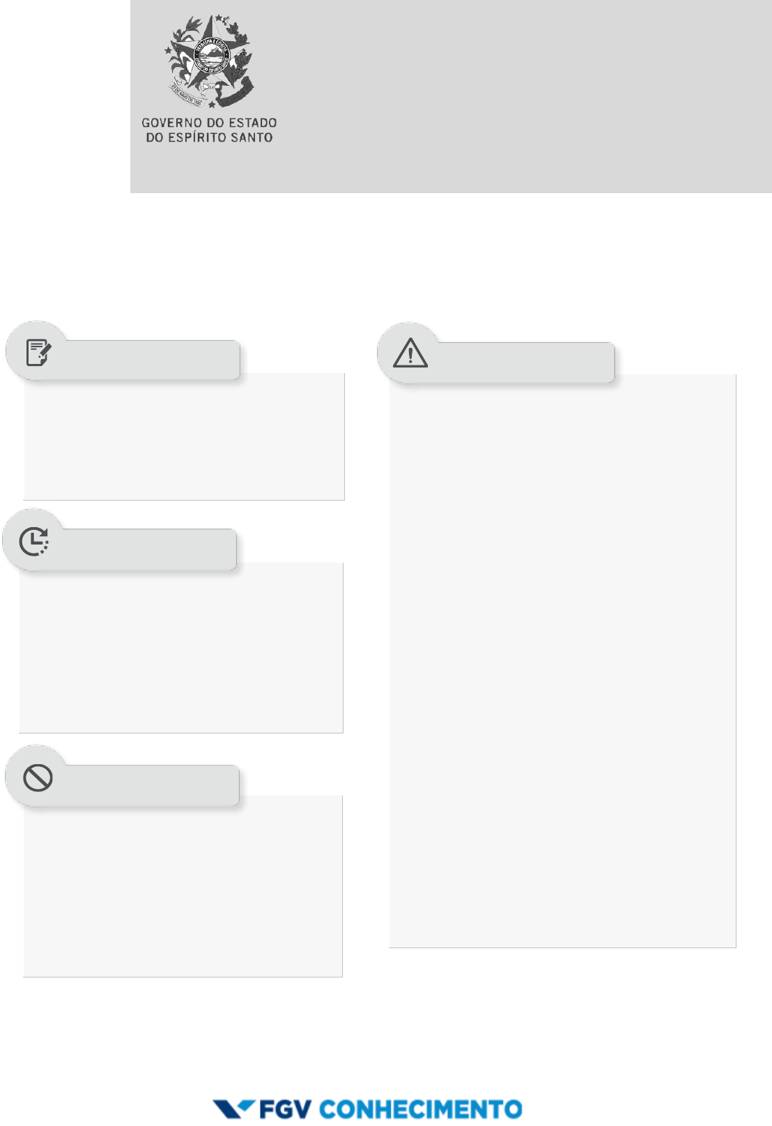 SECRETARIA DE ESTADO DA FAZENDA DO ESPÍRITO SANTO - SEFAZ-ES EDITAL 01/2021 MANHÃ CONSULTOR DO TESOURO ESTADUAL CIÊNCIAS ECONÔMICAS E CIÊNCIAS CONTÁBEIS NÍVEL SUPERIOR TIPO 1 – BRANCA As questões objetivas têm cinco alternativas de resposta (A, B, C, D, E) e somente uma delas está correta; Além deste caderno contendo oitenta questões objetivas, você receberá do fiscal de prova a folha de respostas. Verifique se seu caderno está completo, sem repetição de questões ou falhas. Caso contrário, notifique imediatamente o fiscal da sala, para que sejam tomadas as devidas providências; Confira seus dados pessoais, especialmente nome, número de inscrição e documento de identidade e leia atentamente as instruções para preencher a folha de respostas; Use somente caneta esferográfica, fabricada em material transparente, com tinta preta ou azul; Assine seu nome apenas no(s) espaço(s) reservado(s); Confira seu cargo, cor e tipo do caderno de provas. Caso tenha recebido caderno de cargo ou cor ou tipo diferente do impresso em sua folha de respostas, o fiscal deve ser obrigatoriamente informado para o devido registro na ata da sala; Reserve tempo suficiente para o preenchimento da sua folha de respostas. O preenchimento é de sua responsabilidade e não será permitida a troca da folha de respostas em caso de erro; Para fins de avaliação, serão levadas em consideração apenas as marcações realizadas na folha de respostas e no caderno de textos definitivos; A FGV coletará as impressões digitais dos candidatos na folha de respostas; Os candidatos serão submetidos ao sistema de detecção de metais quando do ingresso e da saída de sanitários durante a realização das provas; Boa sorte! Você dispõe de 4 horas para a realização da prova, já incluído o tempo para a marcação da folha de respostas; 3 horas após o início da prova é possível retirar- se da sala, sem levar o caderno de prova; A partir dos 30 minutos anteriores ao término da prova é possível retirar-se da sala levando o caderno de provas. Qualquer tipo de comunicação entre os candidatos durante a aplicação da prova; Anotar informações relativas às respostas em qualquer outro meio que não seja o caderno de prova; Levantar da cadeira sem autorização do fiscal de sala; Usar o sanitário ao término da prova, após deixar a sala. SUA PROVA TEMPO NÃO SERÁ PERMITIDO INFORMAÇÕES GERAIS SECRETARIA DE ESTADO DE FAZENDA DO ESPÍRITO SANTO - SEFAZ-ES FGV Consultor do Tesouro Estadual - Ciências Econômicas e Ciências Contábeis (Manhã) Tipo Branca – Página 2 Língua Portuguesa 1 Um escritor americano é o autor do seguinte pensamento: “Felicidade é ter uma família grande, amorosa, cuidadosa, que se preocupa com você e está bem unida, só que em outra cidade”. O fato de a família morar em outra cidade tem a função textual de (A) indicar a razão de provocar saudade e a vontade de novos encontros. (B) provocar um distanciamento que só intensifica o sentimento amoroso de todos. (C) referir-se ironicamente ao fato de que a proximidade dos membros familiares pode causar problemas. (D) mostrar a preocupação da família com alguns de seus membros que residem à grande distância. (E) demonstrar que, mesmo nas famílias unidas, há sempre problemas que concorrem para a separação. Atenção: O texto a seguir refere-se às duas próximas questões. “Dicas para deixar sua vida mais divertida: escreva diariamente seu próprio horóscopo; pare de se levar tão a sério, principalmente porque quando você morrer, o tamanho do seu funeral vai depender do tempo que estiver fazendo. Diariamente, sorria e diga olá para cinco estranhos na rua.” 2 A dica de escrever diariamente seu próprio horóscopo faz com que o leitor (A) desconheça integralmente os problemas de sua vida futura. (B) despreze adivinhações e passe a viver racionalmente. (C) torne sua vida melhor a cada dia. (D) construa seu destino. (E) crie somente previsões positivas para si mesmo. 3 O que há de inesperado na estruturação do texto é a recomendação de que o leitor (A) escreva seu próprio horóscopo e cumprimente estranhos na rua. (B) cumprimente estranhos na rua e deixe de levar-se a sério. (C) deixe de levar-se a sério e não conte com muita gente em seu funeral. (D) não conte com muita gente em seu funeral e sorria sempre. (E) sorria sempre e escreva seu próprio horóscopo. 4 “Você tem de prestar muita atenção se não souber para onde está indo, porque você pode não chegar lá.” Esse pensamento mostra um problema em sua formulação, que é a falta de coerência, o que também ocorre na seguinte frase: (A) O homem que não tem medo de nada é tão poderoso como aquele a quem todos temem. (B) A liberdade não consiste somente em seguir a própria vontade, mas às vezes também em abandoná-la. (C) Derrote o medo da morte e dê boas-vindas à morte do medo. (D) A maior glória de um povo livre é transmitir o espírito de liberdade a seus antepassados. (E) Se você não puder aguentar o calor, saia da cozinha. 5 Observe a seguinte frase: Para todos os males, existem dois remédios: o tempo e o silêncio.” Assinale a opção que apresenta a forma inadequada de reescrever-se essa frase. (A) Existem dois remédios para todos os males: o tempo e o silêncio. (B) Existem, para todos os males, dois remédios: o tempo e o silêncio. (C) O tempo e o silêncio são dois remédios aplicados para todos os males. (D) Dois remédios há para todos os males: o tempo e o silêncio. (E) Para todos os males o tempo e o silêncio podem ser utilizados como remédios. 6 Leia o texto a seguir. “Todos devemos tomar a terceira dose da vacina, pois estudos americanos mostram que essa dose suplementar eleva para 90% a eliminação de riscos; além do mais, essas vacinas já se mostraram seguras e já deixaram de ser experimentais há algum tempo.” Sobre a estruturação desse pequeno texto argumentativo, ass