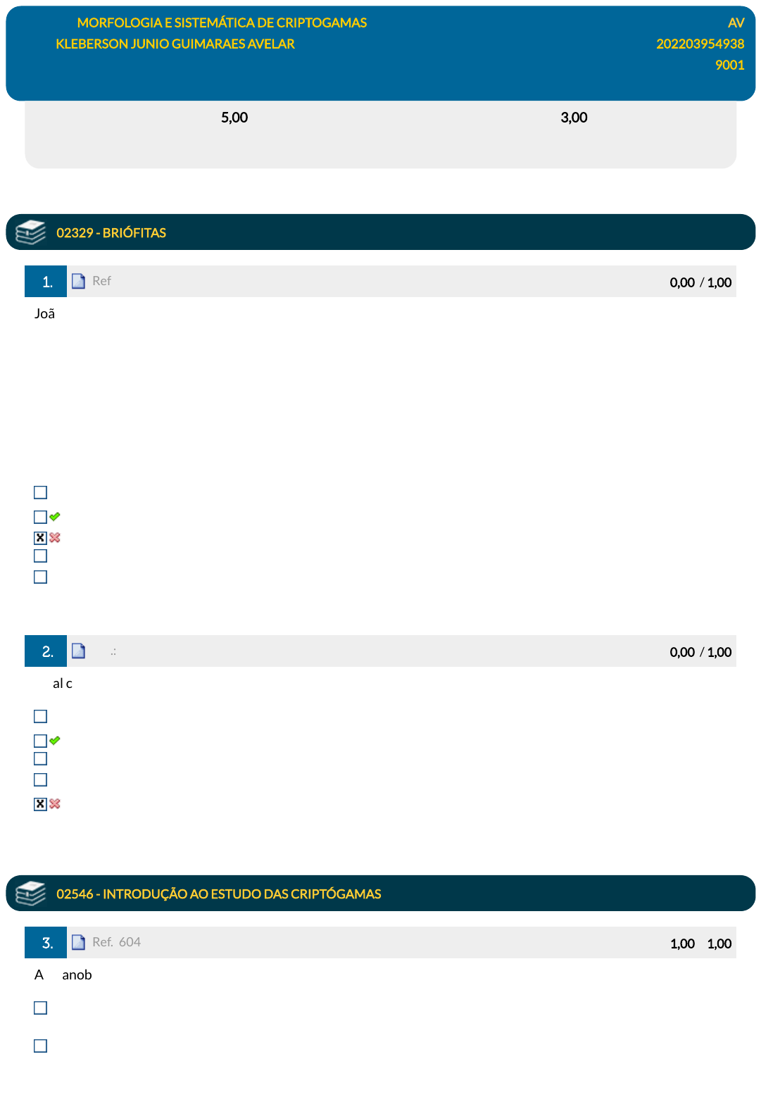 Avaliação: 5,00 pts Nota SIA: 3,00 pts