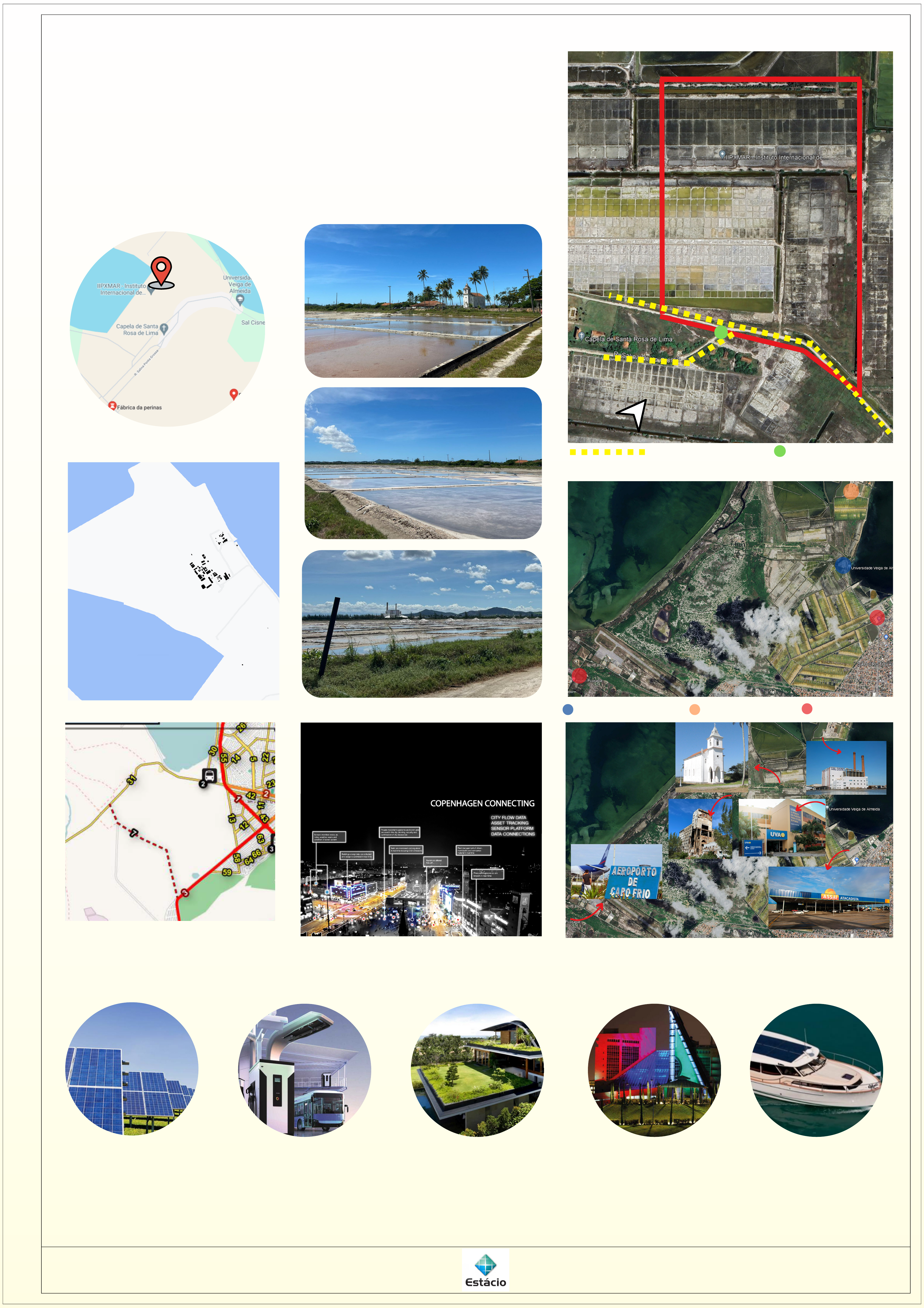Universidade Estácio de Sá, Ateliê de Urbanismo: Escalas Conteúdo: Diagnóstico, Cartografia e Elementos de Smart Cities Professor: Rafael Trindade Grupo: Agostina Alvarez, Caroline Sendon, Isabel Moraes, Jeysa Lorena e Sulamita Oliveira 1/3 PROJETO URBANÍSTICO PERYNAS PERCURSO DO PEDESTRE PONTO NODAL ÁREA ESCOLHIDA DE PROJETO. FONTE: GOOGLE EARTH LOCALIZAÇÃO: PERYNAS, CABO FRIO, RIO DE JANEIRO, BRASIL. FONTE GOOGLE MAPAS O PROJETO URBANÍSCO PARA A ÁREA DE PERYNAS, LOCALIZADA NA ÁREA DO MUNICÍPIO DE CABO FRIO, A PARTIR DO ESTUDO DE CASO, BUSCA IMPLEMENTAR UMA POLÍTICA MUNICIPAL QUE HARMONIZE E ARTICULE AS PRÁTICAS PATRIMONIAIS E AMBIENTAIS COM O PLANEJAMENTO DE USO E OCUPAÇÃO DESSE ESPAÇO QUE CONSTITUI A SUSTENTAÇÃO NATURAL E ECONÔMICA DESSA ÁREA. NESSA CONCEPÇÃO ENCONTRA-SE O DESAFIO EM LIDAR COM A DIVERSIDADE DE SITUAÇÕES REPRESENTADAS PELA EXTENSÃO DESSA FAIXA, QUE CONSTITUI A ANTIGA SALINEIRA E SUA FAIXA HISTÓRICA. SUBJACENTE AOS ASPECTOS DE TERRITORIALIDADE, ENCONTRA-SE UMA ÁREA SEM HABITAÇÃO, COM ESPAÇOS HISTÓRICOS, ÁREA AMBIENTAL, SALINAS, LAGOA E CANAIS, A FIM DE ATENDER O PLANO DIRETOR DESTE MUNICÍPIO, O PRESENTE TRABALHO BUSCA CONSOLIDAR A DIVERSIDADE DE USOS E DE ATIVIDADES DE CARÁTER URBANO, ESTIMULANDO O USO MISTO COMO FORMA DE REDUZIR A NECESSIDADE DE DESLOCAMENTOS MOTORIZADOS, EQUILIBRANDO A RELAÇÃO ENTRE OS LOCAIS DE USO RESIDENCIAL E NÃO RESIDENCIAL E RACIONALIZANDO A UTILIZAÇÃO DE AUTOMÓVEL; POTENCIALIZAR O USO DOS VAZIOS URBANOS; EXPANDIR A REDE DE EQUIPAMENTOS PÚBLICOS URBANOS E COMUNITÁRIOS, FORTALECENDO OS CENTROS DE CONVIVÊNCIA NOS BAIRROS; QUALIFICAR AS CONDIÇÕES AMBIENTAIS, MEDIANTE AMPLIAÇÃO DAS ÁREAS VERDES, DA ARBORIZAÇÃO URBANA E DA CAPACIDADE DE ABSORÇÃO E ESCOAMENTO DAS ÁGUAS PLUVIAIS; PRESERVAR A ÁREA AMBIENTAL E CULTURAL; E VIABILIZAR A REESTRUTURAÇÃO DA MALHA VIÁRIA CRIANDO NOVAS ROTAS DE CONECTIVIDADE COM AS MACROZONAS URBANAS. IMAGENS DO LOCAL DO TERRENO, VISITA TÉCNICA. FONTE: ALUNOS USO INSTITUIONAL USO INDUSTRIAL USO COMERCIALMAPA DE FIGURA E FUNDO MARCOS Via Projetada 7 Via projetada Perynas HIERARQUIZAÇÃO VIÁRIA Via Coletora 31 Rua Salina Ponta Grossa Sensores monitoram água, ar, ruído, clima, resíduos e condições do sistema de esgoto Os dados energéticos dos edifícios são coletados e o uso é otimizado em tempo real Os padrões de movimentação de pessoas são conhecidos e utilizados no planejamento urbano, segurança e otimização dos recursos da cidade. O tráfego é monitorado e regulado em tempo real, reduzindo as emissões de CO2 Turistas recebem wi-fi gratuito Gestão de frota de material do cidadão, município e empresa em tempo real As vagas de estacionamento gratuitas são conhecidas em tempo real PROJETO DE REFERÊNCIA ILUMINAÇÃO ARQUITETURAL É A MAIS NOVA TENDÊNCIA DO RAMO. É POSICIONAR A LUZ NOS LOCAIS CERTOS PARA FOCAR EM ASPECTOS DA CONSTRUÇÃO, OU PARA TRANSMITIR UMA MENSAGEM. DESSA FORMA, O PÚBLICO TEM UMA MELHOR PERCEPÇÃO DOS DETALHES. OPÇÃO ÁREA TURISTICA. BARCOS ELÉTRICOS, NÃO PRODUZEM EMISSÕES DE GASES POLUENTES, MUITO DIFERENTE DOS MOVIDOS A GASOLINA QUE EMITEM DIÓXIDO DE CARBONO E OUTROS POLUENTES. AJUDA NA LUTA CONTRA AS MUDANÇAS CLIMÁTICAS, ALÉM DE PRESERVAR A QUALIDADE DO AR E DA ÁGUA. OPÇÃO PARA MARINAS. OS TELHADOS VERDES, MELHORIA NA QUALIDADE DO AR, REDUÇÃO DAS ILHAS DE CALOR, AUMENTO DO ISOLAMENTO TÉRMICO, POSSIBILIDADE DE FILTRAÇÃO DAS ÁGUAS PLUVIAIS, SERVE COMO ISOLAMENTO ACÚSTICO E MELHORA A ESTÉTICA. OPÇÃO PARA RESIDENCIAL. ÔNIBUS ELÉTRICOS COM 0 EMISSÃO DE CARBONO E POLUIÇÃO DO AR, SILENCIOSO E COM MENORES CUSTOS OPERACIONAIS. MELHORA A QUALIDADE DO AR, O CONFORTO DOS PASSAGEIROS E BENEFICIA A SAÚDE E A ECONOMIA URBANA. AO REDUZIR O USO DE COMBUSTÍVEIS FÓSSEIS. OPÇÃO PARA ALOJAMENTOS. A ENERGIA SOLAR, FACILIDADE DE MANUTENÇÃO E O FATO DE TRAZER ECONOMIA DE ATÉ 90% NA CONTA DE LUZ, NÃO POLUI, É RENOVÁVEL, LIMPA E SILENCIOSA, PODE SER USADA EM ÁREAS ISOLADAS DA REDE ELÉTRICA, MUITO FÁCIL DE INSTALAR E É BARATO PARA MANTER. ELEMENTOS DE SMART CITIES LEGENDA RESIDENCIAL ALTO PADRÃO/MARINAS RESIDENCIAL PADRÃO RESIDENCIAL BAIXO CUSTO COMERCIAL ÁREAS LIVRES ÁREA VERDE - PRÓXIMA AS MARINAS ÁREA PÚBLICA - INSTITUIÇÕES PÚBLICAS COMO, UPAS, CRECHES E ETC. ÁREA DE RECREAÇÃO/LAZER - PRAÇAS E PARQUES ÁREA INSTITUCIONAL - PARA UM CENTRO DE PESQUISA DO IPXMARX M M - A, B, C, D, E, F LOTES RESIDENCIAIS DE MANSÕES COM MARINAS, ATÉ 2 PAVIMENTOS COM 500 M² E TAXA DE OCUPAÇÃO 50% C C - A, B, LOTES COMERCIAIS ATÉ 3 PAVIMENTOS, 500 M² E TAXA DE OCUPAÇÃO DE 60% C C - C, D, LOTES COMERCIAIS ATÉ 4 PAVIMENTOS COM 350 M² E TAXA DE OCUPAÇÃO 40% R R - A, B, C, D LOTES RESIDENCIAIS COM ATÉ 2 PAVIMENTOS COM 250 M² E TAXA DE OCUPAÇÃO 50% A A - A ALOJAMENTOS RESIDENCIAIS DE BAIXO CUSTO COM ATÉ 4 PAVIMENTOS COM 240 M² E TAXA DE OCUPAÇÃO DE 50% R - E LOTES RESIDENCIAIS COM ATÉ 2 PAVIMENTOS COM 320 M² E TAXA DE OCUPAÇÃO DE 50% R MAPA DE GABARITOMAPA DE USOS DO SOLO 1 A 2 PAVIMENTOS 3 PAVIMENTOS 4 PAVIMENTOS MISTO RESIDENCIAL/ALOJAMENTOS INSTITUCIONAL RESIDENCIAL AMBIENTE ÁREA (m²) QNTD. ÁREA TOTAL (m²) PARQUE 350 X X PRAÇA 350 X X AMBIENTE ÁREA (m²) QNTD. ÁREA TOTAL (m²) RESIDÊNCIA 500 52 26.000 DECK 70 4 280 PROMENADE X X X AMBIENTE ÁREA (m²) QNTD. ÁREA TOTAL (m²) RESIDENCIAL 320 19 6.080 RESIDENCIAL 250 83 20.750 ALOJAMENTOS 240 31 7.440 GARAGEM 35 83 2.905 AMBIENTE ÁREA (m²) QNTD. ÁREA TOTAL (m²) COMÉRCIO 500 18 9.000 COMÉRCIO 350 18 6.300 ESTACIONAMENTO X 36 X Universidade Estácio de Sá, Ateliê de Urbanismo: Escalas Conteúdo: Masterplan, Plantas Temáticas, Programa de Necessidades e Infraestruturas Professor: Rafael Trindade Grupo: Agostina Alvarez, Caroline Sendon, Isabel Moraes, Jeysa Lorena e Sulamita Oliveira 2/3 MAPA DE FIGURA E FUNDO ILUMINAÇÃO PÚBLICA INTELIGENTE (INFRAESTRUTURA URBANA) PROMENADE (INFRAESTRUTURA TURÍSTICA D E MOBILIDADE) CENTRO DE