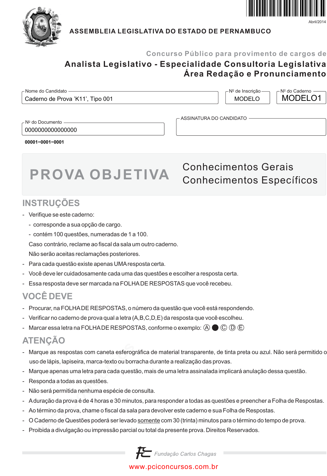 pcimarkpci MjgwNDowMTRkOjc4ZDM6NDlkZTo2OTcwOjcwNzI6ZjFiMjplMzQy:RnJpLCAyMiBOb3YgMjAyNCAwMDowMjowNyAtMDMwMA== www.pciconcursos.com.br N do CadernooN de Inscriçãoo ASSINATURA DO CANDIDATO N do Documentoo Nome do Candidato Abril/2014 ASSEMBLEIA LEGISLATIVA DO ESTADO DE PERNAMBUCO Analista Legislativo - Especialidade Consultoria Legislativa Área Redação e Pronunciamento Concurso Público para provimento de cargos de PROVA OBJETIVA Conhecimentos Gerais Conhecimentos Específicos INSTRUÇÕES VOCÊ DEVE ATENÇÃO - Verifique se este caderno: - corresponde a sua opção de cargo. - contém 100 questões, numeradas de 1 a 100. Caso contrário, reclame ao fiscal da sala um outro caderno. Não serão aceitas reclamações posteriores. - Para cada questão existe apenas UMAresposta certa. - Você deve ler cuidadosamente cada uma das questões e escolher a resposta certa. - Essa resposta deve ser marcada na FOLHADE RESPOSTAS que você recebeu. - Procurar, na FOLHADE RESPOSTAS, o número da questão que você está respondendo. - Verificar no caderno de prova qual a letra (A,B,C,D,E) da resposta que você escolheu. - Marcar essa letra na FOLHADE RESPOSTAS, conforme o exemplo: - - Marque apenas uma letra para cada questão, mais de uma letra assinalada implicará anulação dessa questão. - Responda a todas as questões. - Não será permitida nenhuma espécie de consulta. - Aduração da prova é de 4 horas e 30 minutos, para responder a todas as questões e preencher a Folha de Respostas. - Ao término da prova, chame o fiscal da sala para devolver este caderno e sua Folha de Respostas. - O Caderno de Questões poderá ser levado com 30 (trinta) minutos para o término do tempo de prova. - Proibida a divulgação ou impressão parcial ou total da presente prova. Direitos Reservados. Marque as respostas com caneta esferográfica de material transparente, de tinta preta ou azul. Não será permitido o uso de lápis, lapiseira, marca-texto ou borracha durante a realização das provas. somente A C D E Caderno de Prova ’K11’, Tipo 001 MODELO 0000000000000000 MODELO1 00001−0001−0001 www.pciconcursos.com.br pcimarkpci MjgwNDowMTRkOjc4ZDM6NDlkZTo2OTcwOjcwNzI6ZjFiMjplMzQy:RnJpLCAyMiBOb3YgMjAyNCAwMDowMjowNyAtMDMwMA== www.pciconcursos.com.br 2 ALEPE-Conhecimentos Gerais1 CONHECIMENTOS GERAIS Língua Portuguesa Atenção: O texto abaixo refere-se às questões de números 1 a 5. 1 5 10 15 20 25 30 35 No século VI a.C., os primeiros filósofos gregos preocuparam-se em conhecer os elementos constitutivos das coisas. Eles investigaram a Natureza, à busca de um princípio estável, comum a todos os seres, que explicasse a sua origem e as suas transformações. Físicos, como foram chamados por Aristóteles, esses primeiros filósofos, de Tales a Anaxímenes, fundaram uma tradição de estudo da Natureza, seguida e aprofundada, entre outros, por Heráclito, Pitágoras, Demócrito. Na segunda metade do século V a.C., os Sofistas, professores da juventude ateniense numa época de crise, inspirados mais pelo interesse prático do que por uma intenção teórica pura, debateram, entre outras ideias, o Bem, a Virtude, o Belo, a Lei e a Justiça, formulando, a respeito de seu conteúdo, teses ousadas e contraditórias. Não obstante a falta de rigor e o propósito de confundir os adversários, com a habilidade de raciocínio que os notabilizou, os Sofistas tiveram o indiscutível mérito de introduzir, no estudo da sociedade e da cultura, o ponto de vista reflexivo-crítico que caracteriza a filosofia. Mas seria preciso esperar por Sócrates (470-399 a.C.), misto de pedagogo e de filósofo, que procurou definir os valores morais, as profissões, o governo e o comportamento social, para que esse ponto de vista se insinuasse também na apreciação das artes. Sócrates, que discorria sobre todos os assuntos humanos, entrou, certa vez, no ateliê do pintor Parrásio, e a este perguntou o que a Pintura poderia representar. Platão (427-347 a.C.), discípulo de Sócrates, fez, no seu diálogo A república, um confronto, que se tornou decisivo pelas implicações filosóficas que encerra, entre Arte e Realidade. Levando em conta o caráter representativo da Pintura e da Escultura, o filósofo concluía, nesse diálogo, não só que essas artes estão muito abaixo da verdadeira Beleza que a inteligência humana se destina a conhecer, como também que, em comparação com os objetivos da ciência, é supérflua a atividade daqueles que pintam e esculpem, pois o que 40 produzem é inconsistente e ilusório. Por outro lado, Platão observa que a Poesia e a Música exercem influência muito grande sobre os nossos estados de ânimo, e que afetam, positiva ou negativamente, o comportamento moral dos homens. (Adaptado de: NUNES, Benedito. Introdução à filoso- fia da arte. 4. ed., São Paulo: Ática, 1999, p. 7 e 8) 1. No texto, o autor (A) comenta o percurso da filosofia com o intuito de comprovar que o pensamento filosófico se eleva sobre todas as outras formas de conhecimento, principalmente a relacionada ao universo das artes. (B) objetiva, entre outros aspectos, demonstrar que a denominação que Aristóteles deu aos primeiros filósofos constitui equívoco que a própria história se encarregou de corrigir. (C) debate distintas perspectivas da reflexão filosófica, ao longo dos séculos, para evidenciar o papel decisivo que Platão desempenha na pesquisa da inteligência humana. (D) cita pensadores para evidenciar caminho consti- tutivo do pensamento filosófico, considerando distin- tos aspectos sobre os quais recaíram as inquieta- ções desses intelectuais nesse percurso. (E) firma, respeitando a cronologia, a relevância de cada um dos pensadores que compõem a história da Filosofia até seu apogeu, quando esta reconhece o significativo papel das artes plásticas na área filosófica. _________________________________________________________ 2. Sobre os Sofistas, tal como caracterizados no texto, é co