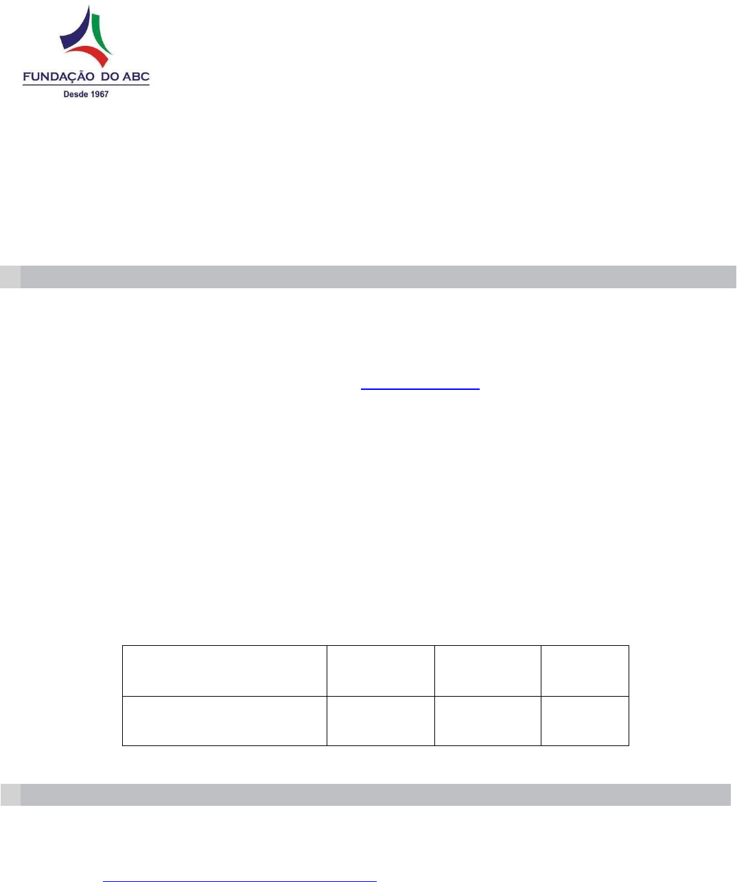PROCESSO SELETIVO AUXILIAR DE ENFERMAGEM 40HS SÃO PAULO – SÃO MATEUS EDITAL Nº 19/2023 EDITAL DE ABERTURA A Fundação do ABC no uso de suas atribuições legais, mediante as condições estipuladas neste Edital, em conformidade com a Constituição Federal e demais disposições atinentes à matéria, torna pública a realização do PROCESSO SELETIVO sob regime da Consolidação das Leis Trabalhistas − CLT, para provimento das vagas e formação de Cadastro Reserva do quadro de funcionários que prestarão serviços na função de AUXILIAR DE ENFERMAGEM 40HS. 1.1. O processo seletivo será regido por este edital e executado pelo setor de Recursos Humanos da Fundação do ABC contrato São Mateus. 1.2. A seleção destina-se ao provimento de vagas existentes no território de São Mateus e ainda formação de Cadastro de Reserva, do quadro de funcionários que prestarão serviços no município de São Paulo − Região de São Mateus. 1.3. O Edital estará à disposição dos interessados no site www.fuabc.org.br. 1.4. O Processo Seletivo terá validade por 6 (seis) meses, podendo ser prorrogado por igual período, a contar da data de sua homologação do edital de abertura. Os candidatos aprovados poderão ser contratados para o provimento das vagas existentes, das que vierem a vagar e das que vierem a ser criadas, durante a validade deste processo seletivo, sob o regime da Consolidação das Leis do Trabalho − CLT. 1.5. O período de validade estabelecido para este Processo Seletivo não gera obrigatoriedade de aproveitar, neste período, todos os candidatos classificados. O aproveitamento dos classificados dar−se−á gradualmente, conforme necessidades da FUABC, obedecida rigorosamente, a lista de candidatos classificados. 1.6. O Processo Seletivo será composto de quatro fases, sendo a primeira fase Triagem de currículos (inscrições eletrônicas), a segunda fase Prova Objetiva, a terceira fase Entrevista/ Dinâmica com RH e a quarta fase Entrevista técnica. Todas as fases são de caráter eliminatório e classificatório. 1.7. Os horários mencionados no presente edital e nos demais editais a serem publicados obedecerão ao horário oficial de Brasília-DF. 1.8. Tabela de cargos, jornada de trabalho, área de atuação e salário: CARGO CARGA HORÁRIA SEMANAL ÁREA DE ATUAÇÃO SALÁRIO AUXILIAR DE ENFERMAGEM 40H UBS/PAI R$ 3.568,22 2.1. Antes de efetuar a inscrição, o candidato deverá certificar-se que possui todas as condições e pré-requisitos para concorrer à vaga disponível, conforme dispostos no anexo I. 2.2. As inscrições ocorrerão pelo preenchimento completo do formulário eletrônico através do Google no endereço https://forms.gle/j8T6hfda1Dqvy1ibA 2.3. No ato da inscrição, o candidato deverá preencher todos os campos e descrever de forma detalhada suas experiências, dados da formação acadêmica e habilidades. É responsabilidade do candidato disponibilizar os dados atualizados e completos. 2.4. As inscrições que não estiverem nos padrões dos requisitos do item 2.3 serão desclassificados. 2.5. A inscrição no Processo Seletivo implica o conhecimento e a tácita aceitação pelo candidato das condições estabelecidas neste Edital. 2.6. No ato da inscrição NÃO serão solicitados comprovantes dos requisitos contidos no Anexo I do presente Edital. 1. DISPOSIÇÕES PRELIMINARES 2. INSCRIÇÕES NO PROCESSO SELETIVO http://www.fuabc.org.br/ https://forms.gle/j8T6hfda1Dqvy1ibA 3.1. Aos candidatos portadores de necessidades especiais é assegurado o direito de inscrição no presente processo seletivo, cujas atribuições sejam compatíveis com a sua deficiência. 3.2. Das vagas 5% serão providas na forma do Decreto n˚ 3.298, de 20 de dezembro de 1999, e suas alterações, e nos termos da Súmula 377 do Superior Tribunal de Justiça. 3.3. Caso a aplicação do percentual de que trata o subitem anterior resulte em número fracionado, esse deverá ser elevado até o primeiro número inteiro subsequente, desde que não ultrapasse 20% das vagas oferecidas. 3.4. O candidato com deficiência, resguardadas as condições especiais previstas na legislação própria, participará do processo seletivo em igualdade de condições com os demais candidatos, no que se refere às provas aplicadas, ao conteúdo das mesmas, à avaliação e aos critérios de aprovação, ao horário e local de aplicação da prova e à nota mínima exigida para todos os demais candidatos. 3.5. Para concorrer a uma dessas vagas, o candidato deverá: a) No ato da inscrição, declarar−se candidato com deficiência; b) Encaminhar laudo médico digitalizado (original ou cópia) para o e-mail recurso.edital@smfuabc.org.br, emitido nos últimos 12 (doze) meses, contados até o último dia de inscrição, atestando a espécie e o grau ou nível da deficiência, com expressa referência ao código correspondente da Classificação Internacional de Doenças (CID− 10), bem como à provável causa da deficiência; c) O fornecimento do laudo médico e do requerimento é de responsabilidade exclusiva do candidato. A FUNDAÇÃO DO ABC não se responsabiliza por qualquer tipo de falha que impeça a chegada desses documentos via e-mail. 3.6. O candidato com deficiência poderá requerer, na forma da alínea c do subitem 4.2 deste edital, atendimento especial, no ato da inscrição, para o dia de realização das provas, indicando as condições de que necessita para a realização dessas, conforme previsto no artigo 40, §§ 1º e 2º, do Decreto nº 3.298/99 e suas alterações. 3.7. O laudo médico valerá somente para este processo seletivo. 3.8. Os candidatos habilitados na última fase do processo, deverão comparecer à perícia médica, munidos de documento de identidade original e de laudo médico (original ou cópia autenticada em cartório), emitido nos últimos 12 (doze) meses que antecedem a perícia médica, que ateste a espécie e o grau ou nível de deficiência, co