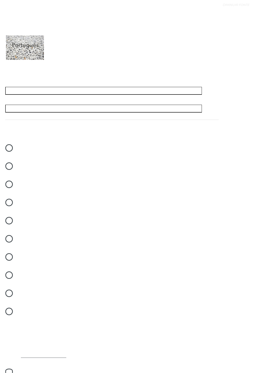Português 83% 86% Andamento Geral Andamento do Tópico MEU DESEMPENHO MENU Orientações Período Composto, Pontuação e Concordância Classe de Palavras Ortografia e Gramática Linguística Comunicação Oral e Escrita Leitura e Construção dos Sentidos Tipos e Gêneros Textuais Leitura de Diferentes Linguagens Coesão e Coerência Questões de Fixação Atividade Avaliativa Coesão e Coerência Minhas Mensagens Avaliação de aula Minhas Notas Contatos do curso Prova digital [ 1 ] IR PARA O CONTEÚDO [ 2 ] IR PARA O MENU SOBRE A ACESSIBILIDADE ALTO-CONTRASTE AUMENTAR FONTE DIMINUIR FONTE 22/11/2024, 11:30 Questões de Avaliação https://www.avaeduc.com.br/mod/quiz/review.php?attempt=10215886 1/11 https://www.avaeduc.com.br/course/view.php?id=7138&topic=115013 https://www.avaeduc.com.br/course/view.php?id=7138&topic=115038 https://www.avaeduc.com.br/course/view.php?id=7138&topic=115039 https://www.avaeduc.com.br/course/view.php?id=7138&topic=115040 https://www.avaeduc.com.br/local/mail/view.php?t=inbox javascript:void(0); javascript:void(0); javascript:void(0); javascript:void(0); https://www.avaeduc.com.br/mod/page/view.php?id=1 PÁGINA INICIAL / MEUS CURSOS / PORTUGUÊS / ATIVIDADE AVALIATIVA / QUESTÕES DE AVALIAÇÃO a. O uso do verbo achar indica uma certeza do enunciador em relação ao fato apresentado. b. O pronome demonstrativo isso faz referência a informações subentendidas pelo contexto interacional. c. Os personagens consideram que a função do garçom deve ser a de ouvir histórias tristes. d. O termo finalmente é usado para modificar o sentido do verbo lucrar indicando uma ideia de modo. e. O personagem Hagar, em seu discurso, discorda do ponto de vista apresentado pelo outro personagem. Iniciado em quinta, 21 nov 2024, 22:35 Estado Finalizada Concluída em sexta, 22 nov 2024, 11:30 Tempo empregado 12 horas 55 minutos Avaliar 10,00 de um máximo de 10,00(100%) Questão 1 Correto Atingiu 1,00 de 1,00 A relação das informações presentes em um texto é de fundamental importância para o entendimento do sentido que ele quer transmitir. Na tirinha em questão, Disponível em: . Acesso em: 15 nov. 2015. Escolha uma: Questões de Avaliação Análise do Discurso [ 1 ] IR PARA O CONTEÚDO [ 2 ] IR PARA O MENU SOBRE A ACESSIBILIDADE ALTO-CONTRASTE AUMENTAR FONTE DIMINUIR FONTE 22/11/2024, 11:30 Questões de Avaliação https://www.avaeduc.com.br/mod/quiz/review.php?attempt=10215886 2/11 https://www.avaeduc.com.br/ https://www.avaeduc.com.br/ https://www.avaeduc.com.br/course/view.php?id=7138 https://www.avaeduc.com.br/mod/quiz/view.php?id=499554 https://lh5.googleusercontent.com/-tukWwzVGFIg/TYfHFlx72sI/AAAAAAAAAC4/kB38BeuMIs0/s1600/tirinha.jpg https://lh5.googleusercontent.com/-tukWwzVGFIg/TYfHFlx72sI/AAAAAAAAAC4/kB38BeuMIs0/s1600/tirinha.jpg https://www.avaeduc.com.br/mod/page/view.php?id=1 a. Onde poderia ser substituído pela expressão aonde sem problemas semânticos b. Seja é um verbo que representa uma ideia de estado em relação ao rio descrito. c. Nem apresenta duas ideias no período em que é usado: negação e oposição. d. No entanto introduz uma contra - argumentação ao que fora apresentado no texto. e. Porque é empregado para expressar uma relação semântica de consequência. Questão 2 Correto Atingiu 1,00 de 1,00 Quem chega em Gesteira, distrito rural no município de Barra Longa, MG, nunca vai imaginar que antes passava um córrego com água cristalina e havia um campo verde amplo na frente, onde bois e cavalos pastavam. Porque quem chegar hoje em Gesteira não verá um pasto, nem um animal ou um riacho. Verá apenas uma gigantesca lagoa de barro escuro onde antes era um vale. Os moradores descrevem para mim, entre o luto e a saudade, a paisagem onde cresceram e que, provavelmente, nunca mais verão na vida. “Antes esta paisagem daqui era tudo verdinho com uma pastagem e tinha um rio com água clarinha. Acabou tudo.” — diz Claudiano da Costa, morador de Gesteira. Mais de dez dias após a queda das barragens da mineradora Samarco, ainda se desconhece todas as extensões do impacto ecológico liberado na forma de 62 milhões de litros de lama residual da mineração. O barro de rejeitos saiu de Bento Rodrigues, na cidade histórica de Mariana, em Minas, e ainda percorrerá mais de 850 km até chegar ao mar, deixando um rastro de destruição à fauna, à flora e às comunidades que estiverem em seu caminho. Só é preciso observar a área destruída — seja do leito do rio, seja do espaço — para compreender que é um dos maiores desastres ambientais na história do Brasil. No entanto, ainda há muitas perguntas buscando entender como esta tsunami de lama afetou todo um ecossistema. Disponível em: . Acesso em: 30 nov. 2015. (Fragmento) Analisando os elementos coesivos sequenciadores destacados, pode-se considerar que: Escolha uma: [ 1 ] IR PARA O CONTEÚDO [ 2 ] IR PARA O MENU SOBRE A ACESSIBILIDADE ALTO-CONTRASTE AUMENTAR FONTE DIMINUIR FONTE 22/11/2024, 11:30 Questões de Avaliação https://www.avaeduc.com.br/mod/quiz/review.php?attempt=10215886 3/11 http://www.pragmatismopolitico.com.br/2015/11/mariana-as-consequencias-do-maior-desastre-ambiental-do-brasil.html http://www.pragmatismopolitico.com.br/2015/11/mariana-as-consequencias-do-maior-desastre-ambiental-do-brasil.html https://www.avaeduc.com.br/mod/page/view.php?id=1 a. Superestrutural, Pragmática, Semântica, Sintática. b. Pragmática, Sintática, Semântica, Superestrutural. c. Sintática, Semântica, Superestrutural, Pragmática. d. Semântica, Sintática, Superestrutural, Pragmática. e. Sintática, Semântica, Pragmática, Superestrutural. Questão 3 Correto Atingiu 1,00 de 1,00 Analise as assertivas para responder à questão: I - Essa coerência está relacionada ao conhecimento linguístico de cada indivíduo, se faz uso adequado das estruturas linguísticas, bem como dos recursos coesivos, das regras gramaticais. Tem como função principal eliminar a ambiguidade. I