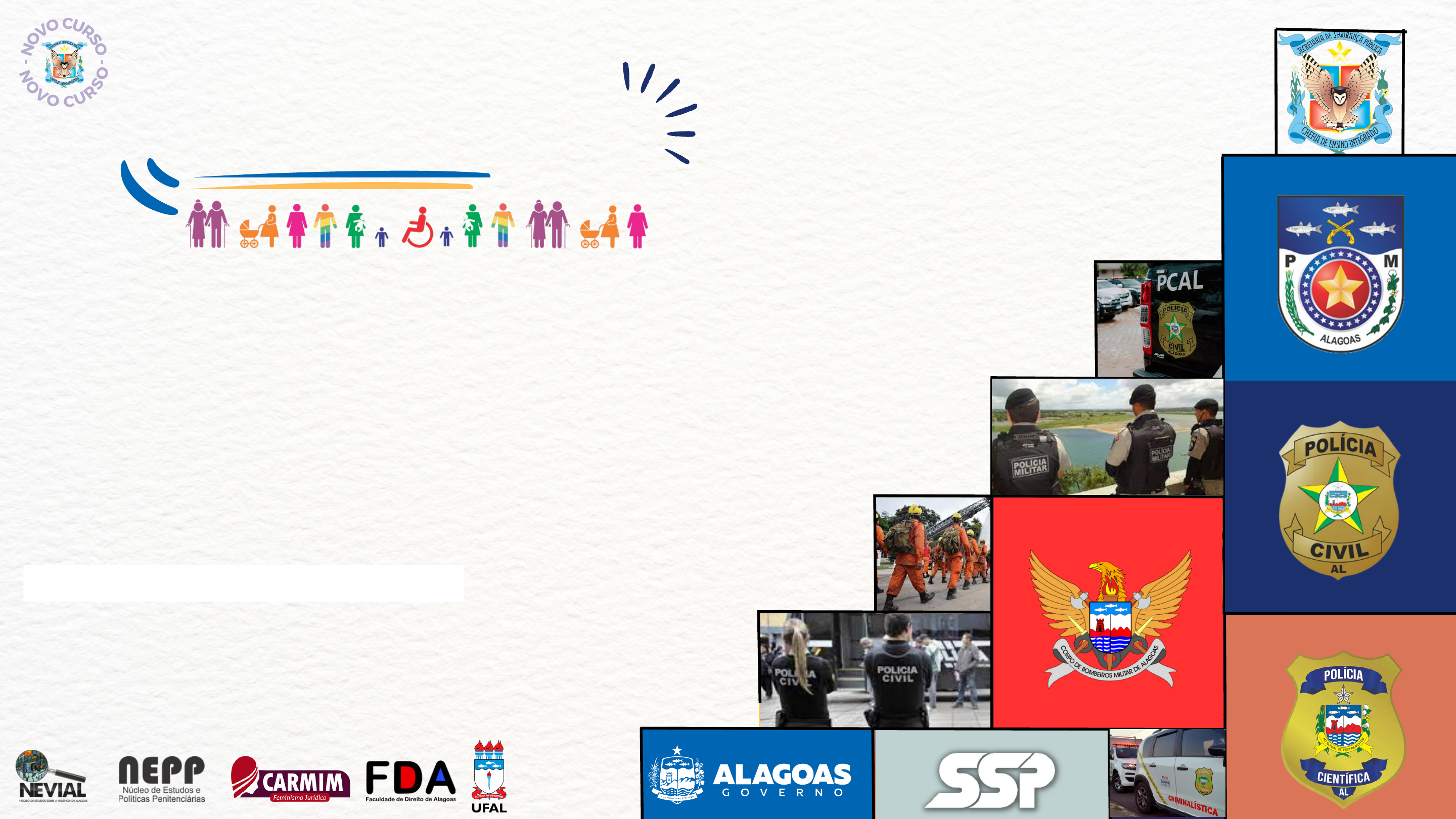 Atuação do Profissional da Segurança Pública na Proteção a Grupos Vulneráveis Curso de - N OVO CURSO - - N OVO CURSO - N O VO CURS O N O VO CURS O Introdução à atuação policial na proteção de pessoas vulneráveis PROFA. DRA. ELAINE PIMENTEL EMENTA DA DISCIPLINA Introdução à Atuação do Profissional de Segurança Pública na Proteção de Pessoas Vulneráveis 1.1 Conceito de pessoas vulneráveis e sua importância para a segurança pública; 1.2 Legislação nacional e internacional relacionada à proteção de pessoas vulneráveis; 1.3 Papel do policial na identificação e proteção de pessoas em situação de vulnerabilidade; 1.4 Tipos de vulnerabilidade (infância, adolescência, terceira idade, pessoas com deficiência, População LGBTQIA+, Populações em situação de Rua, Povos Originários e Comunidades Tradicionais, entre outros); 1.5 Características e sinais de vulnerabilidade em cada grupo. FUNDAMENTOS FILOSÓFICO-POLÍTICOS DA CRIAÇÃO DO ESTADO: SEGURANÇA PÚBLICA Estado de natureza: guerra de todos contra todos! (situação de vulnerabilidade) Estado de Direito: a força do Estado por meio da Lei. Papel do Estado: garantir a segurança de todos. Primeira função do Estado: segurança pública! O Leviatã, de Thomas Hobbes SEGURANÇA PÚBLICA NA CONSTITUIÇÃO FEDERAL DE 1988 Art. 144. A segurança pública, dever do Estado, direito e responsabilidade de todos, é exercida para a preservação da ordem pública e da incolumidade das pessoas e do patrimônio, através dos seguintes órgãos: I - polícia federal; II - polícia rodoviária federal; III - polícia ferroviária federal; IV - polícias civis; V - polícias militares e corpos de bombeiros militares. VI - polícias penais federal, estaduais e distrital. O QUE É VULNERABILIDADE SOCIAL? Vulnerabilidade social é um conceito multidimensional que se refere à condição de indivíduos ou grupos em situação de fragilidade, que os tornam expostos a riscos e a níveis significativos de desagregação social. Relaciona-se ao resultado de qualquer processo acentuado de exclusão, discriminação ou enfraquecimento de indivíduos ou grupos, provocado por fatores, tais como pobreza, crises econômicas, nível educacional deficiente, localização geográfica precária e baixos níveis de capital social, humano, ou cultural (sobre o conceito de capital, ver BOURDIEU, 1987; 1989; 1990), dentre outros, que gera fragilidade dos atores no meio social. XEMENES, Daniel de Aquino In https://gestrado.net.br/verbetes/vulnerabilidade-social/ https://gestrado.net.br/verbetes/vulnerabilidade-social/ VULNERABILIDADE E SEGURANÇA PÚBLICA Proximidade aos grupos vulneráveis nas ações de segurança púbica; Vocação para proteção dos vulneráveis; Padrões de suspeição de vulneráveis; Riscos de violação de direitos de vulneráveis. QUEM SÃO AS PESSOAS VULNERÁVEIS? Crianças; Idosos; Pessoas com deficiências; Mulheres e meninas; Minorias étnicas e raciais; Pessoas LGBTQIAP+; Imigrantes e migrantes Pessoas refugiadas e pessoas deslocadas; Etc. INTERSECCIONALIDADE: UM CONCEITO RELEVANTE “A interseccionalidade é uma conceituação do problema que busca capturar as conseqüências estruturais e dinâmicas da interação entre dois ou mais eixos da subordinação. Ela trata especificamente da forma pela qual o racismo, o patriarcalismo, a opressão de classe e outros sistemas discriminatórios criam desigualdades básicas que estruturam as posições relativas de mulheres, raças, etnias, classes e outras. Além disso, a interseccionalidade trata da forma como ações e políticas específicas geram opressões que fluem ao longo de tais eixos, constituindo aspectos dinâmicos ou ativos do desempoderamento.” Kimberlé Crenshaw PROTEÇÃO LEGAL A PESSOAS VULNERÁVEIS Artigo 1 Todos os seres humanos nascem livres e iguais em dignidade e direitos. São dotados de razão e consciência e devem agir em relação uns aos outros com espírito de fraternidade. Artigo 2 1. Todo ser humano tem capacidade para gozar os direitos e as liberdades estabelecidos nesta Declaração, sem distinção de qualquer espécie, seja de raça, cor, sexo, língua, religião, opinião política ou de outra natureza, origem nacional ou social, riqueza, nascimento, ou qualquer outra condição. 2. Não será também feita nenhuma distinção fundada na condição política, jurídica ou internacional do país ou território a que pertença uma pessoa, quer se trate de um território independente, sob tutela, sem governo próprio, quer sujeito a qualquer outra limitação de soberania. CONSTITUIÇÃO FEDERAL DE 1988 Art. 5º Todos são iguais perante a lei, sem distinção de qualquer natureza, garantindo-se aos brasileiros e aos estrangeiros residentes no País a inviolabilidade do direito à vida, à liberdade, à igualdade, à segurança e à propriedade. CRIANÇAS E ADOLESCENTES Legislação: Convenção sobre os Direitos da Criança da ONU (1989); Constituição Federal de 1988 – Art. 227 a Art. 229. - Lei n 8.069/90 - Estatuto da Criança e do Adolescente. Características: Pessoas em desenvolvimento, que podem ser facilmente engadas, manipuladas, abusadas. Sinais de vulnerabilidade: Crianças e adolescentes desacompanhados, feridos, chorando, mesmo quando acompanhados, gestantes, LGBTQIAP+ etc. PESSOAS IDOSAS Legislação: Convenção Interamericana sobre a Proteção dos Direitos Humanos dos Idosos; - Constituição Federal de 1988 – Art. 229 e Art. 230; - Lei nº 10.741/2023 – Estatuto do Idoso. Características: Pessoas mais lentas ou com dificuldade de locomoção pela própria idade, com dificuldade auditiva e visual, com possibilidade de confusão mental e demência. Sinais de vulnerabilidade: Idosos desacompanhados, em lugares ermos, feridos, chorando; Legislação: Convenção Internacional sobre os Direitos das Pessoas com Deficiência; Constituição Federal de 1988. - Lei nº 13.146/2015 - Lei Brasileira de In