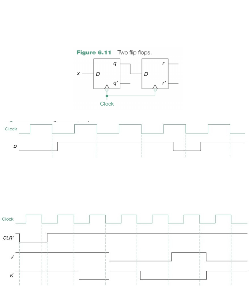 Bacharelado em Ciência da Computação – UFRJ Circuitos Lógicos - 2009/1 Prof. Gabriel P. Silva 3a Lista de Exercícios 1) Qual será a forma de onda na saída do segundo flip-flop D do circuto da figura abaixo? 2) Qual será a forma de onda na saída de um flip-flop JK com CLEAR se a forma de onda abaixo for aplicada às suas entradas? 3) O que significa dizer que o tempo de “setup” de um flip-flop é de 2 ns? O que pode acontecer se este tempo não for respeitado? 4) Elabore um contador assíncrono crescente com flip-flops tipo T módulo 6. 5) Elabore um contador assíncrono decrescente com flip-flops tipo T de módulo 10. 6) Construa um contador binário assíncrono que converta um pulso com freqüência de 64 KHz em uma onda quadrada de 1 KHz. 7) Um contador de módulo 12 e outro de módulo 10 são conectados em cascata. Determine a freqüência de saída se a freqüência na entrada de clock é 60 Mhz. 8) Escreva o código em VHDL que realize um contador síncrono crescente módulo 12. 9) Correlacione as colunas a seguir: a) É o tempo medido da variação do sinal do nível baixo para alto, entre 10% do sinal até ele atingir 90% do seu valor. ( ) Tempo de Setup b) É o tempo mínimo depois do evento de relógio (transição de subida ou descida) em que a entrada precisa continuar estável. ( ) Tempo de Hold c) É o tempo mínimo antes do evento de relógio (transição de subida ou descida) em que a entrada precisa estar estável. ( ) Tempo de Subida d) É o atraso medido entre 50% da variação do sinal na entrada e 50% da variação do sinal na saída. ( ) Alta Impedância e) É o chamado estado onde a saída não contribui nem para o nível alto, nem para o nível baixo. ( ) Tempo de Propagação 10) As formas de onda mostradas para o circuito abaixo estão corretas? 11) Elabore um contador síncrono crescente de módulo 32. Determine a freqüência máxima para esse contador de cada flip-flop tiver um tp = 20 ns e cada porta tiver um tp = 10 ns.