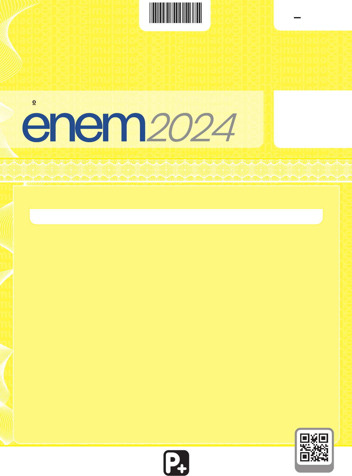 EXAME NACIONAL DO ENSINO MÉDIO PROVA DE CIÊNCIAS DA NATUREZA E SUAS TECNOLOGIAS PROVA DE MATEMÁTICA E SUAS TECNOLOGIAS LEIA ATENTAMENTE AS INSTRUÇÕES SEGUINTES: ATENÇÃO: transcreva no espaço apropriado do seu CARTÃO-RESPOSTA, com sua caligrafia usual, considerando as letras maiúsculas e minúsculas, a seguinte frase: 2o DIA SIMULADOENEM2024SIMULADOENEM2024SIMULADOENEM2024SIMULADOENEM2024SIMULADOENEM2024SIMULADOENEM2024SIMULADOENEM2024SIMULADOENEM2024SIMULADOENEM2024SIMULADOENEM2024SIMULADOENEM2024SIMULADOENEM2024SIMULADOENEM2024SIMULADOENEM2024SIMULADOENEM2024SIMULADOENEM2024SIMULADOENEM2024SIMULADOENEM2024SIMULADOENEM2024SIMULADOENEM2024SIMULADOENEM2024SIMULADOENEM2024SIMULADOENEM2024SIMULADOENEM2024SIMULADOENEM2024SIMULADOENEM2024SIMULADOENEM2024SIMULADOENEM2024SIMULADOENEM2024SIMULADOENEM2024 SIMULADOENEM2024SIMULADOENEM2024SIMULADOENEM2024SIMULADOENEM2024SIMULADOENEM2024SIMULADOENEM2024SIMULADOENEM2024SIMULADOENEM2024SIMULADOENEM2024SIMULADOENEM2024SIMULADOENEM2024SIMULADOENEM2024SIMULADOENEM2024SIMULADOENEM2024SIMULADOENEM2024SIMULADOENEM2024SIMULADOENEM2024SIMULADOENEM2024SIMULADOENEM2024SIMULADOENEM2024SIMULADOENEM2024SIMULADOENEM2024SIMULADOENEM2024SIMULADOENEM2024SIMULADOENEM2024SIMULADOENEM2024SIMULADOENEM2024SIMULADOENEM2024SIMULADOENEM2024SIMULADOENEM2024 1 CADERNO AMARELO 1. Este CADERNO DE QUESTÕES contém 90 questões numeradas de 91 a 180, dispostas da seguinte maneira: a) questões de número 91 a 135, relativas à área de Ciências da Natureza e suas Tecnologias; b) questões de número 136 a 180, relativas à área de Matemática e suas Tecnologias. 2. Confira se a quantidade e a ordem das questões do seu CADERNO DE QUESTÕES estão de acordo com as instruções anteriores. Caso o caderno esteja incompleto, tenha defeito ou apresente qualquer divergência, comunique ao aplicador da sala para que ele tome as providências cabíveis. 3. Para cada uma das questões objetivas, são apresentadas 5 opções. Apenas uma responde corretamente à questão. 4. O tempo disponível para estas provas é de cinco horas. 5. Os rascunhos e as marcações assinaladas no CADERNO DE QUESTÕES e na FOLHA DE RASCUNHO não serão considerados na avaliação. 6. Quando terminar as provas, acene para chamar o aplicador e entregue este CADERNO DE QUESTÕES, o CARTÃO-RESPOSTA e a FOLHA DE RASCUNHO. 7. Você poderá deixar o local de prova somente após decorridas duas horas do início da aplicação e poderá levar seu CADERNO DE QUESTÕES ao deixar em definitivo a sala de prova. SIMULADOENEM2024SIMULADOENEM2024SIMULADOENEM2024SIMULADOENEM2024SIMULADOENEM2024SIMULADOENEM2024SIMULADOENEM2024SIMULADOENEM2024SIMULADOENEM2024SIMULADOENEM2024SIMULADOENEM2024SIMULADOENEM2024SIMULADOENEM2024SIMULADOENEM2024SIMULADOENEM2024SIMULADOENEM2024SIMULADOENEM2024SIMULADOENEM2024SIMULADOENEM2024SIMULADOENEM2024SIMULADOENEM2024SIMULADOENEM2024SIMULADOENEM2024SIMULADOENEM2024SIMULADOENEM2024SIMULADOENEM2024SIMULADOENEM2024SIMULADOENEM2024SIMULADOENEM2024SIMULADOENEM2024 3 Simulado A liberdade é nossa própria substância. 2024 I 0 0 2 2 4 8 3 2 CN • 2o DIA • CADERNO 1 • AMARELO CIÊNCIAS DA NATUREZA E SUAS TECNOLOGIAS Questões de 91 a 135 QUESTÃO 91 _ 23_ENEM_QUI_EW_L5_Q05 Em medicina nuclear, é muito comum o uso de isótopos radioativos em exames de imagens e em tratamento de tumores. O samário-153 é um exemplo de radioisótopo muito usado para o tratamento de dores ósseas causadas por lesões metastáticas. A ação do samário-153 62 153Sm� � resulta de sua meia-vida curta antes de se transmutar em európio-153 63 153Eu� �. A ação do samário, bem como da maioria dos radiofármacos e contrastes, consiste na emissão de A radiação gama, que ajuda a eliminar matéria orgânica saudável e doente e gera imagens das lesões. B prótons, que ajudam a quebrar outros átomos de células cancerígenas e geram imagens radioativas. C nêutrons, que quebram a membrana de células cancerígenas e possibilitam o rastreamento de imagens. D elétrons de alta energia, que combatem as células doentes e possibilitam o rastreamento de imagens. E partículas alfa, que ajudam a matar células doentes e rastreiam novas células cancerígenas. QUESTÃO 92 _ 24_3ENEM_BIO_GS_L1_Q04 Às vezes, a mama pode produzir e excretar leite pelo mamilo fora dos períodos de gestação e amamentação. O quadro, conhecido como galactorreia, chega a assustar, mas tem tratamento. Uma das principais causas da galactorreia é um aumento dos níveis de prolactina, hormônio produzido no cérebro e responsável por ativar a fabricação de leite. Isso pode acontecer por causa de desequilíbrios de outros hormônios, como os deflagrados pelo hipotireoidismo, por exemplo. PINHEIRO, C. “Quando o corpo produz leite fora de hora: entenda a galactorreia”. Disponível em: . Acesso em: 30 nov. 2023. O texto afirma que uma das principais causas da galactorreia é o aumento de níveis hormonais. Nesse caso, é esperado que uma pessoa com galactorreia apresente alteração no funcionamento A da hipófise. B do pâncreas. C das gônadas. D das suprarrenais. E das paratireoides. QUESTÃO 93 _ 23_ENEM_FIS_TD_L5_Q04 Enquanto fazia uma inalação recomendada por um médico, uma pessoa observou as características técnicas do aparelho utilizado por ela. O aparelho funciona com seus valores nominais. INALADOR COMPRESSOR TENSÃO 12 V CORRENTE 0,8 A 20 min. ON/ 40 min. OFF Considerando as características técnicas do aparelho, a pessoa determinou que a sua potência elétrica, em watt, é igual a A 15,0. B 12,0. C 9,6. D 3,2. E 0,8. QUESTÃO 94 _ 23_ENEM_BIO_HJ_L5_Q06 A busca por fontes renováveis de energia está impulsionando o mercado mundial de pellets e briquetes […]. Pellets e briquetes são fabricados de biomassa vegetal triturada, seca e compactada em formato cilíndrico, por meio de equipamentos de alta pressão. Uma variedade grande de matérias-primas pode ser usada em sua produção, como pedaços de madeira e d