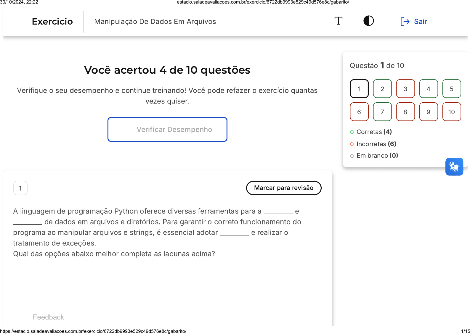 30/10/2024, 22:22 estacio.saladeavaliacoes.com.br/exercicio/6722db9993e529c49d576e8c/gabarito/
