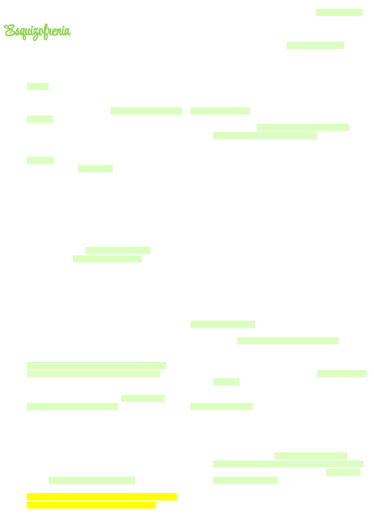 V��t�ia e Duda - T7 Esquiz���nia ➔ esquizofrenia é um distúrbio psiquiátrico grave, crônico, heterogêneo e com manifestações psicóticas que afetam em geral o comportamento social e a percepção de realidade do indivíduo ➔ psicose refere-se a um grupo de sintomas (p. ex., alucinações, delírios, alterações formais do pensamento, desorganização comportamental e catatonia), caracterizados por alteração na percepção da realidade, podendo resultar de transtornos psiquiátricos ou de uma variedade de alterações clínicas (p. ex., intoxicação/abstinência de substâncias, medicamentos e disfunções orgânicas cerebrais) ➔ para fins didáticos, as psicoses são divididas em primárias (ou funcionais, no sentido de alterações da função cerebral) e secundárias (ou orgânicas, com alterações anatomofisiológicas identificáveis ou clinicamente presumíveis), decorrentes de transtorno orgânico primário epidemiologia ➔ a esquizofrenia tem incidência anual de 2 a 4 casos por 10 mil habitantes, prevalência ao longo da vida em torno de 1% e distribuição homogênea em diferentes culturas e países ➔ apresenta incidência semelhante entre sexos, geralmente com início entre 16 e 30 anos, embora mulheres tenham início mais tardio, curso mais benigno, menor número de internações e melhor funcionamento social (possível ação protetiva de estrogênios) fisiopatologia ➔ embora diversas alterações anatômicas e fisiológicas sejam observadas em diferentes regiões cerebrais (especialmente em regiões corticais temporal e frontal), nenhuma alteração neurobiológica se mostra específica ou presente em todos os casos ➔ um dos achados mais replicados é a associação de hipoatividade frontal com sintomas negativos e de hiperatividade temporal com sintomas positivos ➔ sob o ponto de vista neuroquímico, diversos estudos documentam alterações nos sistemas de neurotransmissão, especialmente dopaminérgico, glutamatérgico e serotoninérgico ➔ estudos mais recentes apontam para déficits na conectividade entre as diversas regiões cerebrais envolvidas com sensopercepção, cognição e afeto ➔ estudos recentes têm investigado correlações entre distúrbio na interação entre os sistemas dopaminérgico e glutamatérgico, neuroimuno inflamação e alterações pós-sinápticas como causas da desconectividade funcional observada em esquizofrenia ➔ existem fatores de exposição ambiental consistentemen te associados à esquizofrenia, como complicações obstétricas, migração, urbanicidade, uso de maconha e exposição a eventos traumáticos ➔ a evidência inicial da participação de fatores genéticos na esquizofrenia foi a observação de haver agregação familiar, ter um parente de primeiro grau aumenta em 10% a chance de ser afetado ➔ existem evidências sobre o papel da inflamação e da resposta imunológica na esquizofrenia, com mecanismos possivelmente multi fa toriais, assim, variações genéticas no sistema complemento, bem como aumento de citocinas pró-inflamató rias (p. ex., IL-6, TNF-alfa), têm sido identificados em indivíduos com esquizofrenia e naqueles com ultra alto risco teoria dopaminérgica ➔ estudos apontam que haveria uma alteração funcional da transmissão dopaminérgica com liberações de grandes quantidades fora de contexto, o que alteraria um processo cognitivo denominado saliência (a capacidade de atribuir relevância a um objeto ao mudar o foco atencional) – função essencial à sobrevivência e ao convívio social ➔ a liberação excessiva, fora de contexto, levaria a atribuir saliência de forma errática e inadequada, em contrapartida, não se atribuiria saliência aos estímulos adequados, o que também causaria uma quebra no padrão de comportamento esperado ➔ o aumento da atividade dopaminérgica causada notadamente por algumas drogas (cocaína e anfetamina) e seu consequente efeito de piora ou aparecimento de sintomas psicóticos também contribui para esta hipótese ➔ sabe-se ainda que os tratos dopaminérgicos mesocorticais e mesolímbicos do SNC têm um papel significativo na fisiopatologia da esquizofrenia ➔ assim, podemos dizer que, apesar de não estar completamente esclarecida, a ação dopaminérgica mostra-se importante nas manifestações sintomáticas da esquizofrenia sistema glutamatérgico ➔ tem se destacado por permitir ligar as evidências que indicam alterações do neurodesenvolvimento encontradas na esquizofrenia e a modulação do sistema dopaminérgico ➔ em modelos animais, o uso de agentes glutamatérgicos induz não só sintomas positivos, mas também sintomas negativos, enquanto modelos animais com agentes dopaminérgicos mimetizam apenas sintomas positivos teoria serotoninérgica ➔ surgiu a partir da observação de que vários agentes alucinógenos apresentavam ação agonista ou agonista parcial em receptores 5-HT2A, como o LSD e a mescalina ➔ posteriormente, o papel da serotonina foi reforçado, pois a maior parte dos antipsicóticos de segunda geração apresentava importante antagonismo 5-HT2A ➔ a teoria serotoninérgica postula que existe excesso de liberação de serotonina pelos receptores 5-HT2A e/ou aumento de sua expressão na região cortical, o que cau saria liberação subsequente de glutamato, por sua vez, o aumento de glutamato em neurônios projetados para a área tegumentar ventral poderia então hiperativar a via mesolímbica, resultando em excesso de dopamina e, por fim, causando delírios ou alucinações auditivas ➔ em conjunto, as teorias dopaminérgica, serotoninérgica e glutamatérgica trazem uma compreensão mais integrativa da esquizofrenia manifestações clínicas ➔ atualmente, propõe-se agrupar os sintomas em dimensões, nas quais a intensidade pode variar, não sendo apenas uma questão de apresentar ou não o sintoma, mas de quão intenso ele é ➔ o modelo dimensional mais aceito é composto por c