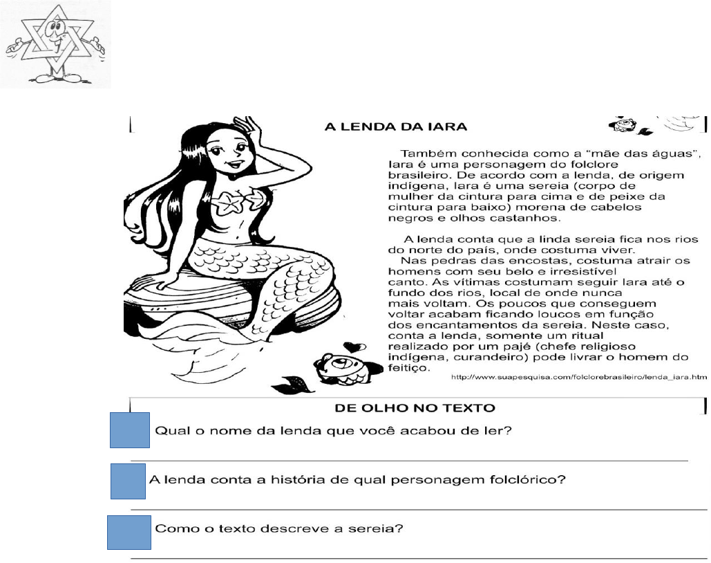 Instituto Pedagógico Estrela de Davi NOME:____________________________________ Nº___ Avaliação parcial de Português 3º ano 1 2- É hora da numeração. Numere a segunda coluna observando as palavras da mesma família na primeira coluna. ( 1) humor ( ) humildade ( 2) horror ( ) honestidade ( 3) história ( ) horroroso ( 4) homem ( ) humano ( 5) honesto ( ) horário ( 6) higiene ( ) humorista ( 7) humilde ( ) higiênico ( 8) hora ( ) historiador 3- Complete as frases com as palavras do quadro. OUVE- HOUVE a) ________ uma grande confusão no estádio b) Hilda ________ música enquanto faz as lições ERA-HERA a) A história geralmente começa assim: _____ uma vez b) A ______, plantada no jardim, cobriu toda a parede da casa. 4- Ordene as silabas, forme palavras e depois separe-as. ÇA-CRI-AN _______________________________________ FAN-TIL-IN _______________________________________ COM-EN-TRO ____________________________________ A B C 1) 5- Relacione as colunas de acordo com os tipos de frase. 1-frase declarativa 2- frase interrogativa 3- frase exclamativa ( ) termina com ponto de interrogação ( ) termina com ponto de exclamação ( ) termina com ponto final 6- Escreva uma frase: a) Interrogativa: _______________________________________________________________________ a) Exclamativa: _______________________________________________________________________ a) Declarativa: _______________________________________________________________________ 7-Complete as palavras com M ou N E COPIE-AS. 8- Troque o D pelo T e complete a palavra. Depois separe em sílabas a palavra formada: 9- Reescreva a frase abaixo e circule as letras T e D. A GRATIDÃO É A CHAVE PARA O SUCESSO. ___________________________________________________________ 10- Escreva com suas palavras um texto falando sobre um personagem do Folclore. Não esqueça de ilustrar.( COLOQUE O NOME DO PERSONAGEM) ________________________ ___________________________________________________ ___________________________________________________ ___________________________________________________ ___________________________________________________ ___________________________________________________ ___________________________________________________ ___________________________________________________ ________________________________________________