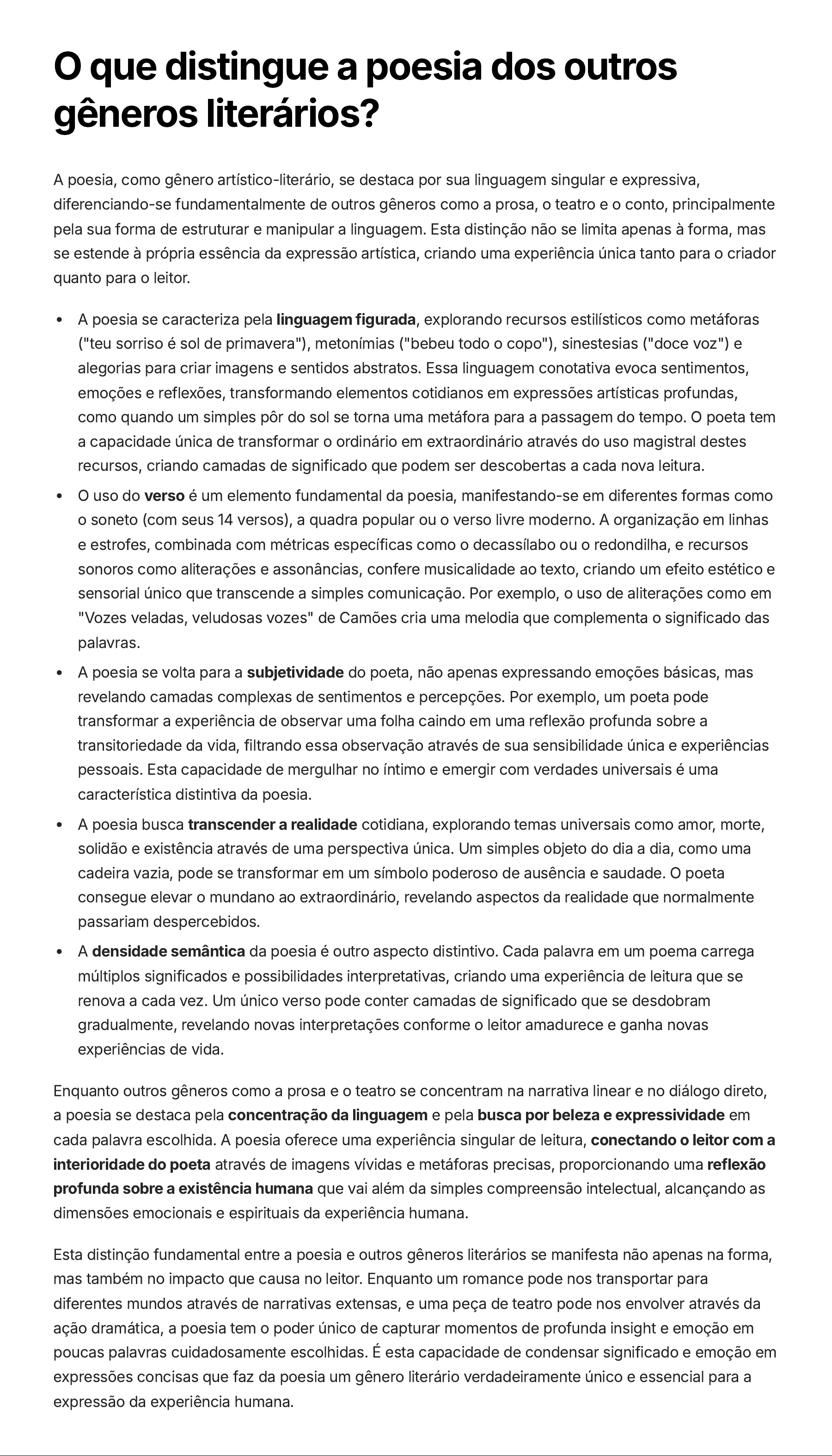 Esta distinção fundamental entre a poesia e outros gêneros literários se manifesta não apenas na forma,