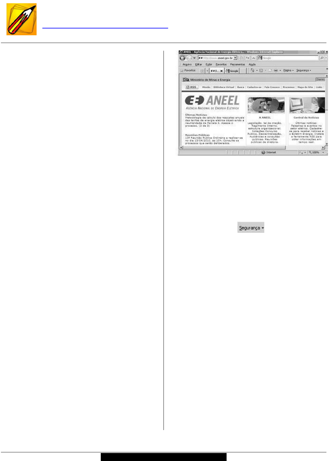 39 correta da provável palavra, ele ainda não propicia a busca semântica, por meio da qual se exibem outras palavras com significado similar ao daquela pesquisada pelo usuário. ( ) Certo ( ) Errado 192 - CESPE - 2011 - EBC - CARGOS DE NÍVEL MÉDIO - A respeito de conceitos e utilização de tecnologias e aplicativos associados à Internet, julgue os itens a seguir. O termo e-business corresponde a uma definição mais ampla de comércio eletrônico, incluindo, além da compra e venda de produtos e serviços, a prestação de serviços a clientes, a cooperação com parceiros comerciais e a realização de negócios eletrônicos em uma organização. ( ) Certo ( ) Errado 193 - CESPE - 2011 - EBC - CARGOS DE NÍVEL SUPERIOR Em relação a sistemas operacionais, Internet e aplicativos de planilha eletrônica, julgue os itens de 19 a 28. A proteção ou restrição de acesso aos dados armazenados em um computador conectado a uma intranet pode ser feita por meio de firewall, que é uma combinação de hardware e software, com filtros de endereçamento, isolamento entre a rede local e a remota, criptografia e autenticação. ( ) Certo ( ) Errado 195 - CESPE - 2011 - EBC - CARGOS DE NÍVEL SUPERIOR Os usuários registrados em uma extranet podem acessar os aplicativos internos dessa rede por meio da utilização de smartphones, via browser. ( ) Certo ( ) Errado 196 - CESPE - 2010 - ANEEL - TÉCNICO ADMINISTRATIVO Considerando a figura acima, que mostra uma tela do Internet Explorer 8.0, os conceitos básicos e os modos de utilização de tecnologias, ferramentas, aplicativos e procedimentos associados à Internet e intranet, julgue os itens a seguir. Ao se clicar a opção , será acionado um sistema de segurança que garante a proteção contra vírus e trojans. ( ) Certo ( ) Errado 197 - CESPE - 2010 - TRT - 21ª REGIÃO (RN) - ANALISTA JUDICIÁRIO Julgue os itens a seguir, relativos a conceitos e modos de utilização da Internet e de intranets, assim como a conceitos básicos de tecnologia e segurança da informação. No sítio web google.com.br, se for realizada busca por “memórias póstumas” — com aspas delimitando a expressão memórias póstumas — , o Google irá realizar busca por páginas da Web que contenham a palavra memórias ou a palavra póstumas, mas não necessariamente a expressão exata memórias póstumas. Mas se a expressão memórias póstumas não foi delimitada por aspas, então o Google irá buscar apenas as páginas que contenham exatamente a expressão memórias póstumas .( ) Certo ( ) Errado 198 - CESPE - 2007 - TRE-AP - ANALISTA JUDICIÁRIO