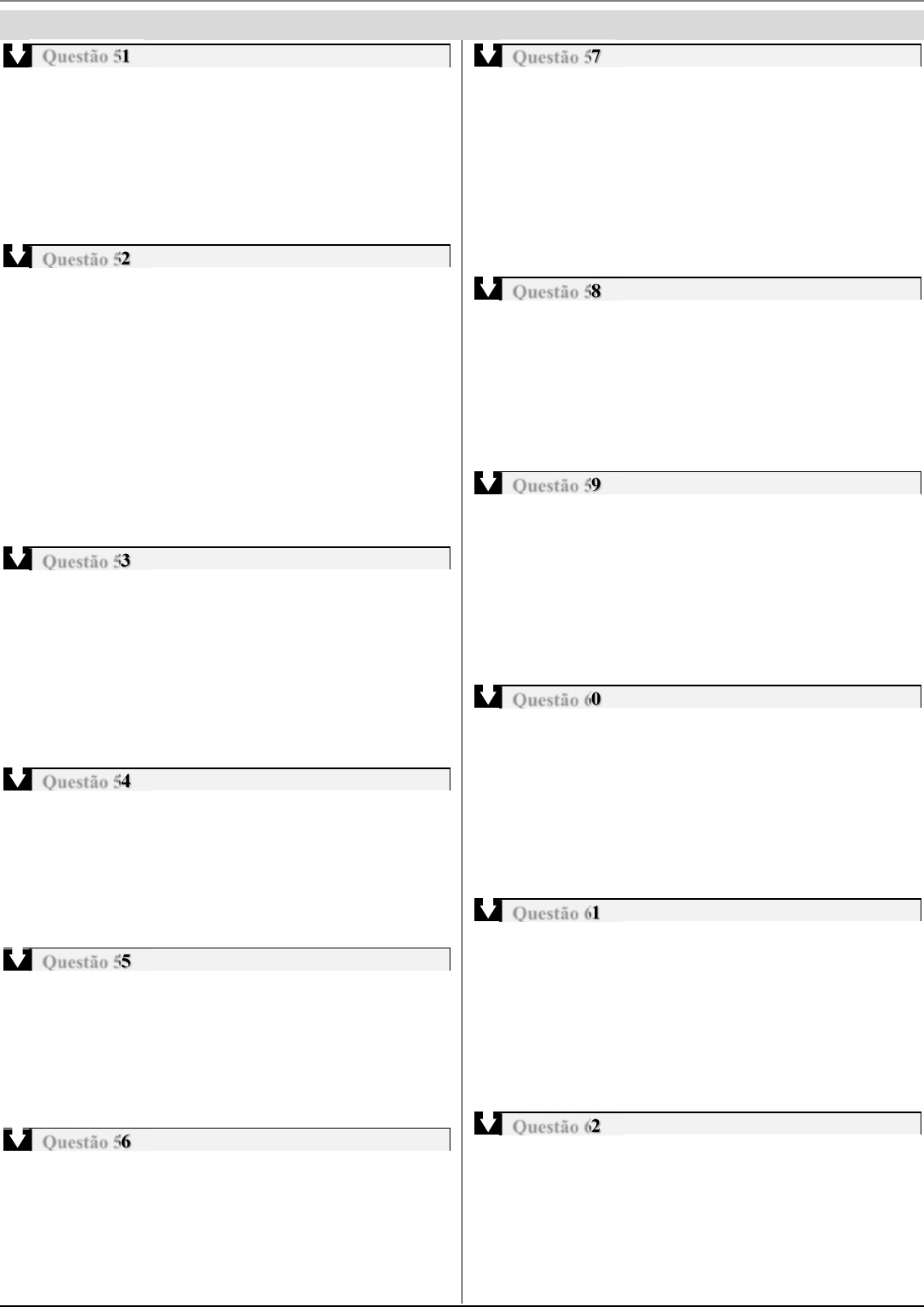 CEBRASPE – TCE-PR – Edital: 2024 -- CONHECIMENTOS ESPECÍFICOS -- Questão 51 Decisões da administração que busquem, de alguma forma, influenciar o futuro da organização ou que venham a ser implementadas posteriormente são denominadas decisões de A liderança. B planejamento. C organização. D controle. E direção. Questão 52 Na área de administração, os papéis do administrador evoluíram para um conjunto organizado de comportamentos associados a uma função, sendo tais papéis agrupados em três categorias principais. Assinale a opção em que são corretamente apresentadas essas três categorias. A papéis de marketing, papéis de operações e papéis de sistemas B papéis de prospecção, papéis de concepção e papéis de decisão C papéis administrativos, papéis financeiros e papéis pessoais D papéis interpessoais, papéis de informação e papéis de decisão E papéis estratégicos, papéis táticos e papéis operacionais Questão 53 Administradores que desejam liderar suas organizações de maneira eficaz e estratégica devem investir prioritariamente em programas que os qualifiquem profissionalmente para o desenvolvimento de habilidades A decisórias. B de supervisão. C técnicas. D humanas. E conceituais. Questão 54 A análise de ambiente e a definição clara dos objetivos organizacionais são princípios básicos do planejamento A estratégico. B de tecnologia. C tático. D operacional. E de marketing. Questão 55 Análise situacional; formulação de estratégias; implementação; e avaliação e controle são A etapas do planejamento estratégico. B níveis de planejamento. C etapas da análise SWOT. D etapas do planejamento operacional. E métodos e ferramentas de planejamento. Questão 56 A avaliação dos ambientes interno e externo de uma organização pode ser realizada por meio da ferramenta denominada A formulação de estratégia. B balanced scorecard. C análise SWOT. D análise de alocação de recursos. E análise situacional. Questão 57 Assinale a opção em que é apresentado o tipo de planejamento que envolve a definição de metas específicas, a alocação de recursos e a criação de cronogramas detalhados para a execução das atividades diárias, além da definição de meios e políticas da organização. A planejamento de processos B planejamento tático C planejamento de projetos D planejamento operacional E planejamento de marketing Questão 58 No processo de elaboração do planejamento estratégico, quando a organização torna público o seu propósito fundamental, ela declara A os seus objetivos. B os seus valores. C a sua visão. D o seu negócio. E a sua missão. Questão 59 A declaração que é essencial para a orientação estratégica de uma organização e se refere ao seu campo de atuação, ou seja, ao conjunto de produtos ou serviços que ela oferece ao mercado e aos clientes que atende, é a declaração de A portfólio. B visão. C meta. D negócio. E propósito. Questão 60 Assinale a opção em que é apresentada a etapa do ciclo PDCA que prevê a implementação de ações corretivas e ajustes necessários para melhorar o desempenho e garantir o alcance dos objetivos estratégicos da organização. A retroalimentar B agir C planejar D fazer E verificar Questão 61 Identificação de necessidades de capacitação; promoção de um ambiente de aprendizado; mentoria e coaching; motivação e engajamento; e alinhamento com objetivos organizacionais são papéis da função administrativa de A controle. B liderança. C planejamento. D organização. E direção. Questão 62 O processo estruturado e contínuo que envolve planejamento, monitoramento, avaliação, desenvolvimento e recompensa para as pessoas é denominado A gestão de tarefas. B gestão de desempenho. C gestão de recompensas. D gestão da qualidade. E gestão de remuneração. CEBRASPE – TCE-PR – Edital: 2024 Questão 63 A conjuntura em que os líderes devem adaptar seu estilo de liderança com base na maturidade e competência da equipe está em conformidade com a teoria de liderança A contingencial. B transformacional. C transacional. D situacional. E comportamental. Questão 64 Programas de desenvolvimento sob medida, projetados para atender às necessidades específicas de indivíduos e grupos de trabalho, têm o potencial de aumentar consideravelmente a eficácia e a produtividade. Esses programas se estabelecem como estratégias de gestão de A tempo. B processos. C tarefas. D atividades. E equipes. Questão 65 Uma empresa do setor de higiene pessoal vem enfrentando atrasos recorrentes na produção de determinado produto, o que tem impactado suas vendas e, consequentemente, seus lucros. As equipes de produção foram reunidas para determinarem os principais motivos do atraso. Para isso, é necessário escolher uma ferramenta que permita esclarecer todas as principais causas do problema de maneira organizada e fracionada, identificando as possíveis soluções e facilitando a visualização de cada etapa. Nessa situação hipotética, a ferramenta mais indicada é A o diagrama de Pareto. B a folha de checagem. C o diagrama causa-efeito. D o método dos 5 porquês. E o histograma. Questão 66 Uma empresa fabricante de instrumentos hospitalares tem uma grande linha de produção dentro do mercado nacional. Desde sua expansão para o exterior, a qualidade dos produtos ofertados no mercado interno caiu e, consequentemente, aumentaram as reclamações dos clientes. A fim de reduzir essas reclamações, a empresa resolveu implementar uma melhoria baseada no método Kaizen. Como resultado, os seus números se multiplicaram rapidamente, incluindo a satisfação dos clientes. Nessa situação hipotética, a melhora descrita foi decorrência A da compra de equipamentos caros e de software, o que gerou uma mudança cultural necessária para tornar a produção enxuta bem sucedida. B do uso dos trabalhadores da produção sem a necessidade de tro