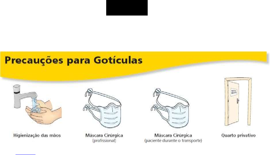 ENFERMAGEM Portanto, devemos estabelecer a Precaução Respiratória por Gotícula. Figura - Ilustração das Medidas da Precaução por Gotícula ou Perdigoto Fonte: ANVISA. Indicações: pacientes portadores ou com infecção por micro-organismos transmissíveis por gotículas de tamanho maior que 5μ, que podem ser gerados por tosse, espirro, conversação, ou durante procedimentos como aspiração e broncoscopia. Exemplos: parotidite, coqueluche, difteria, rubéola, meningite por meningococos, síndrome aguda respiratória grave (pneumonia asiática). Os principais cuidados são os seguintes: 🠹 Internação de paciente: quarto privativo ou, caso não seja possível, em quarto de paciente com infecção pelo mesmo micro-organismo (coorte); a distância mínima entre os leitos deve ser de um metro. 🠹 Máscara: deve ser utilizada a máscara cirúrgica quando a proximidade com o paciente for menor de um metro. 🠹 Transporte de paciente: limitado, mas quando necessário, utilizar máscara cirúrgica para o paciente. 🠹 Visitas: restritas e orientadas. Desse modo, nosso gabarito é a alternativa E. 41. De acordo com a Portaria n°. 104/2011, fazem parte da Lista de Notificação Compulsória Imediata, surtos ou agregação de casos ou óbitos por: (A) Poliomielite; Raiva Humana; Sarampo; Rubéola; Tuberculose. (B) Febre Maculosa; Febre Tifoide; Hanseníase; Tétano; Cólera. http://www.anvisa.gov.br/servicosaude/controle/precaucoes_a3.pdf