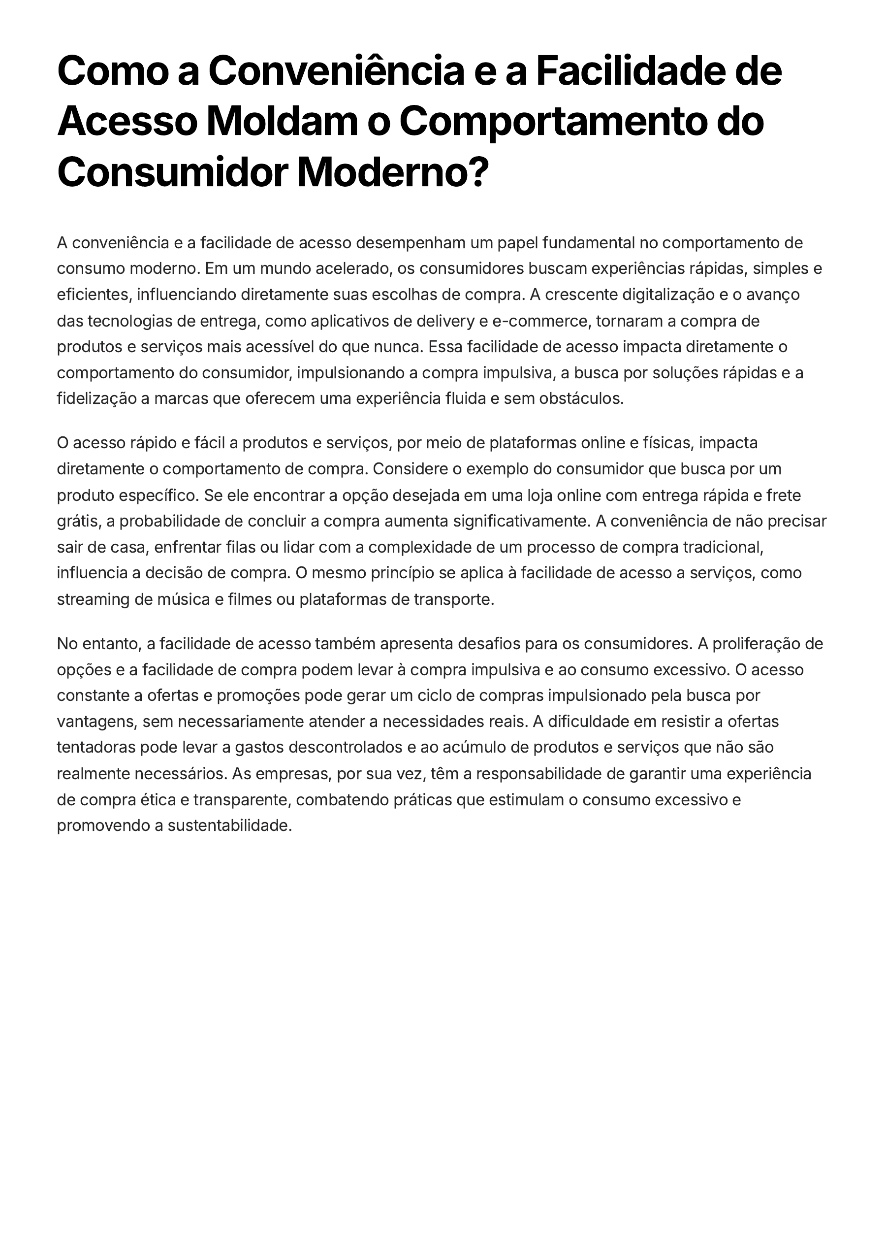 Como a Conveniência e a Facilidade de Acesso Moldam o Comportamento do Consumidor Moderno? A conveniência e a facilidade de acesso desempenham um papel fundamental no comportamento de consumo moderno. Em um mundo acelerado, os consumidores buscam experiências rápidas, simples e eficientes, influenciando diretamente suas escolhas de compra. A crescente digitalização e o avanço das tecnologias de entrega, como aplicativos de delivery e e-commerce, tornaram a compra de produtos e serviços mais acessível do que nunca. Essa facilidade de acesso impacta diretamente o comportamento do consumidor, impulsionando a compra impulsiva, a busca por soluções rápidas e a fidelização a marcas que oferecem uma experiência fluida e sem obstáculos. O acesso rápido e fácil a produtos e serviços, por meio de plataformas online e físicas, impacta diretamente o comportamento de compra. Considere o exemplo do consumidor que busca por um produto específico. Se ele encontrar a opção desejada em uma loja online com entrega rápida e frete grátis, a probabilidade de concluir a compra aumenta significativamente. A conveniência de não precisar sair de casa, enfrentar filas ou lidar com a complexidade de um processo de compra tradicional, influencia a decisão de compra. O mesmo princípio se aplica à facilidade de acesso a serviços, como streaming de música e filmes ou plataformas de transporte. No entanto, a facilidade de acesso também apresenta desafios para os consumidores. A proliferação de opções e a facilidade de compra podem levar à compra impulsiva e ao consumo excessivo. O acesso constante a ofertas e promoções pode gerar um ciclo de compras impulsionado pela busca por vantagens, sem necessariamente atender a necessidades reais. A dificuldade em resistir a ofertas tentadoras pode levar a gastos descontrolados e ao acúmulo de produtos e serviços que não são realmente necessários. As empresas, por sua vez, têm a responsabilidade de garantir uma experiência de compra ética e transparente, combatendo práticas que estimulam o consumo excessivo e promovendo a sustentabilidade. Como a Sustentabilidade e a Responsabilidade Social Estão Revolucionando as Decisões de Compra dos Consumidores? A crescente consciência ambiental e social dos consumidores está impulsionando um novo tipo de comportamento de compra, onde a sustentabilidade e a responsabilidade social se tornam fatores decisivos. Os consumidores modernos buscam produtos e serviços que reflitam seus valores e contribuam para um futuro mais sustentável. Consciência Ambiental: Os consumidores estão cada vez mais preocupados com o impacto ambiental de suas compras, optando por produtos com menor pegada de carbono, embalagens recicláveis e fabricação ética. Responsabilidade Social: A preocupação com os direitos humanos, condições de trabalho justas e práticas de negócios éticas também pesa na decisão de compra. Consumidores preferem marcas que demonstrem compromisso com a responsabilidade social. Transparência e Autenticação: A confiança nas empresas e marcas é fundamental. Os consumidores buscam informações transparentes sobre a cadeia de produção, origem dos materiais e práticas sustentáveis da empresa. Sustentabilidade como Diferencial Competitivo: Para as empresas, a sustentabilidade e a responsabilidade social se tornaram um diferencial competitivo. Os consumidores estão dispostos a pagar mais por produtos e serviços que atendam a esses critérios. Em resumo, a sustentabilidade e a responsabilidade social influenciam fortemente as decisões de compra. Os consumidores estão mais informados e engajados em suas escolhas, buscando produtos e serviços que reflitam seus valores e contribuam para um futuro mais sustentável e justo. Como as Tendências e Modismos Moldam Nossas Decisões de Consumo? Tendências e modismos exercem um papel significativo nas decisões de compra, moldando o que os consumidores desejam e consideram desejável. Eles podem influenciar desde as roupas que usamos até os produtos que compramos, os restaurantes que frequentamos e até mesmo as causas que apoiamos. Essas tendências surgem de diversas fontes, incluindo mídia social, celebridades, influenciadores digitais, eventos de moda, publicidade e até mesmo movimentos culturais. A influência de tendências e modismos é especialmente forte em setores como moda, tecnologia, alimentos e bebidas, e decoração. As empresas usam essas tendências para criar produtos e campanhas de marketing que ressoam com o desejo dos consumidores por novidades e pertencimento a um grupo. A constante busca por novidades e a necessidade de se sentirem parte de um grupo faz com que os consumidores estejam sempre atentos às últimas tendências, e isso cria uma dinâmica em que os produtos que estão em alta hoje podem se tornar obsoletos amanhã. É importante lembrar que as tendências e modismos não são necessariamente duradouros. Eles podem mudar rapidamente e, muitas vezes, desaparecem tão rápido quanto surgem. Para as empresas, isso significa que é importante estar atento às mudanças no mercado e adaptar suas estratégias de marketing para se manterem relevantes. Para os consumidores, isso significa ser crítico e questionar se uma tendência é realmente algo que eles desejam ou se estão sendo influenciados por fatores externos. A decisão de seguir uma tendência deve ser baseada nas necessidades e valores individuais, e não apenas na pressão social ou na busca por aprovação.