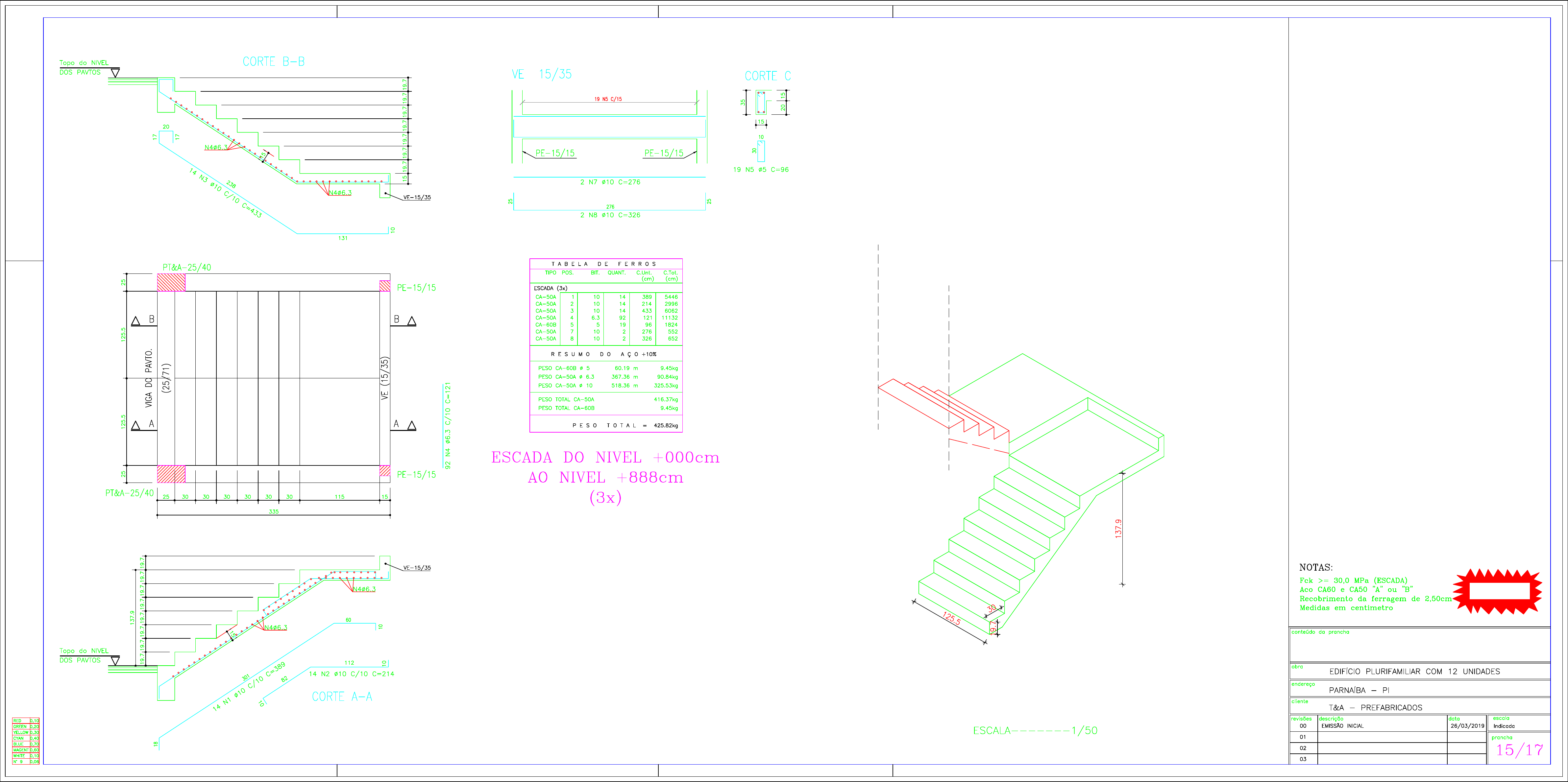 DET. ESCADA EM PERSPECTIVA ARMAÇÃO DA ESCADA 12 UNDS AutoCAD SHX Text AO NIVEL +888cm AutoCAD SHX Text ESCADA DO NIVEL +000cm AutoCAD SHX Text (3x) AutoCAD SHX Text ESCALA-------1/50 AutoCAD SHX Text 137.9 AutoCAD SHX Text 0,30 AutoCAD SHX Text 0,40 AutoCAD SHX Text 0,70 AutoCAD SHX Text 0,60 AutoCAD SHX Text 0,20 AutoCAD SHX Text 0,10 AutoCAD SHX Text 0,06 AutoCAD SHX Text 0,10 AutoCAD SHX Text MAGENT AutoCAD SHX Text WHITE AutoCAD SHX Text N%%d 9 AutoCAD SHX Text YELLOW AutoCAD SHX Text CYAN AutoCAD SHX Text BLUE AutoCAD SHX Text GREEN AutoCAD SHX Text RED AutoCAD SHX Text 15/17 AutoCAD SHX Text revisões AutoCAD SHX Text escala AutoCAD SHX Text Indicada AutoCAD SHX Text data AutoCAD SHX Text prancha AutoCAD SHX Text conteúdo da prancha AutoCAD SHX Text endereço AutoCAD SHX Text cliente AutoCAD SHX Text obra AutoCAD SHX Text PARNAÍBA - PI AutoCAD SHX Text EDIFÍCIO PLURIFAMILIAR COM 12 UNIDADES AutoCAD SHX Text 26/03/2019 AutoCAD SHX Text 00 AutoCAD SHX Text descrição AutoCAD SHX Text EMISSÃO INICIAL AutoCAD SHX Text Fck >= 30,0 MPa (ESCADA) AutoCAD SHX Text Recobrimento da ferragem de 2,50cm AutoCAD SHX Text Aco CA60 e CA50 "A" ou "B" AutoCAD SHX Text NOTAS: AutoCAD SHX Text Medidas em centimetro AutoCAD SHX Text T&A - PREFABRICADOS AutoCAD SHX Text 01 AutoCAD SHX Text 02 AutoCAD SHX Text 03 AutoCAD SHX Text (25/71) AutoCAD SHX Text VIGA DO PAVTO. AutoCAD SHX Text VE (15/35) AutoCAD SHX Text A AutoCAD SHX Text A AutoCAD SHX Text B AutoCAD SHX Text B AutoCAD SHX Text 14 N1 %%C10 C/10 C=389 AutoCAD SHX Text 18 AutoCAD SHX Text 301 AutoCAD SHX Text 60 AutoCAD SHX Text 10 AutoCAD SHX Text 14 N2 %%C10 C/10 C=214 AutoCAD SHX Text CORTE A-A AutoCAD SHX Text 14 N3 %%C10 C/10 C=433 AutoCAD SHX Text 92 N4 %%C6.3 C/10 C=121 AutoCAD SHX Text CORTE B-B AutoCAD SHX Text 2 N7 %%C10 C=276 AutoCAD SHX Text 2 N8 %%C10 C=326 AutoCAD SHX Text 25 AutoCAD SHX Text 25 AutoCAD SHX Text 276 AutoCAD SHX Text 19 N5 %%C5 C=96 AutoCAD SHX Text 30 AutoCAD SHX Text 10 AutoCAD SHX Text 19 N5 C/15 AutoCAD SHX Text CORTE C AutoCAD SHX Text VE 15/35 AutoCAD SHX Text 10 AutoCAD SHX Text 112 AutoCAD SHX Text 82 AutoCAD SHX Text 10 AutoCAD SHX Text 10 AutoCAD SHX Text 131 AutoCAD SHX Text 238 AutoCAD SHX Text 17 AutoCAD SHX Text 20 AutoCAD SHX Text 17 AutoCAD SHX Text T A B E L A D E F E R R O S AutoCAD SHX Text C.Tot. AutoCAD SHX Text C.Unt. AutoCAD SHX Text QUANT. AutoCAD SHX Text BIT. AutoCAD SHX Text POS. AutoCAD SHX Text TIPO AutoCAD SHX Text (cm) AutoCAD SHX Text (cm) AutoCAD SHX Text ESCADA (3x) AutoCAD SHX Text CA-50A AutoCAD SHX Text 1 AutoCAD SHX Text 10 AutoCAD SHX Text 14 AutoCAD SHX Text 389 AutoCAD SHX Text 5446 AutoCAD SHX Text CA-50A AutoCAD SHX Text 2 AutoCAD SHX Text 10 AutoCAD SHX Text 14 AutoCAD SHX Text 214 AutoCAD SHX Text 2996 AutoCAD SHX Text CA-50A AutoCAD SHX Text 3 AutoCAD SHX Text 10 AutoCAD SHX Text 14 AutoCAD SHX Text 433 AutoCAD SHX Text 6062 AutoCAD SHX Text CA-50A AutoCAD SHX Text 4 AutoCAD SHX Text 6.3 AutoCAD SHX Text 92 AutoCAD SHX Text 121 AutoCAD SHX Text 11132 AutoCAD SHX Text CA-60B AutoCAD SHX Text 5 AutoCAD SHX Text 5 AutoCAD SHX Text 19 AutoCAD SHX Text 96 AutoCAD SHX Text 1824 AutoCAD SHX Text CA-50A AutoCAD SHX Text 7 AutoCAD SHX Text 10 AutoCAD SHX Text 2 AutoCAD SHX Text 276 AutoCAD SHX Text 552 AutoCAD SHX Text CA-50A AutoCAD SHX Text 8 AutoCAD SHX Text 10 AutoCAD SHX Text 2 AutoCAD SHX Text 326 AutoCAD SHX Text 652 AutoCAD SHX Text R E S U M O D O A Ç O +10% AutoCAD SHX Text PESO CA-60B %%C 5 AutoCAD SHX Text 9.45kg AutoCAD SHX Text 60.19 m AutoCAD SHX Text PESO CA-50A %%C 6.3 AutoCAD SHX Text 90.84kg AutoCAD SHX Text 367.36 m AutoCAD SHX Text PESO CA-50A %%C 10 AutoCAD SHX Text 325.53kg AutoCAD SHX Text 518.36 m AutoCAD SHX Text PESO TOTAL CA-50A AutoCAD SHX Text 416.37kg AutoCAD SHX Text PESO TOTAL CA-60B AutoCAD SHX Text 9.45kg AutoCAD SHX Text P E S O T O T A L = 425.82kg AutoCAD SHX Text PE-15/15 AutoCAD SHX Text PE-15/15 AutoCAD SHX Text PE-15/15 AutoCAD SHX Text PE-15/15 AutoCAD SHX Text PT&A-25/40 AutoCAD SHX Text PT&A-25/40 AutoCAD SHX Text DOS PAVTOS AutoCAD SHX Text Topo do NIVEL AutoCAD SHX Text DOS PAVTOS AutoCAD SHX Text Topo do NIVEL AutoCAD SHX Text VE-15/35 AutoCAD SHX Text VE-15/35 AutoCAD SHX Text N4%%C6.3 AutoCAD SHX Text N4%%C6.3 AutoCAD SHX Text N4%%C6.3 AutoCAD SHX Text N4%%C6.3 AutoCAD SHX Text 125.5 AutoCAD SHX Text 30 AutoCAD SHX Text 19.7 Sheets and Views Model