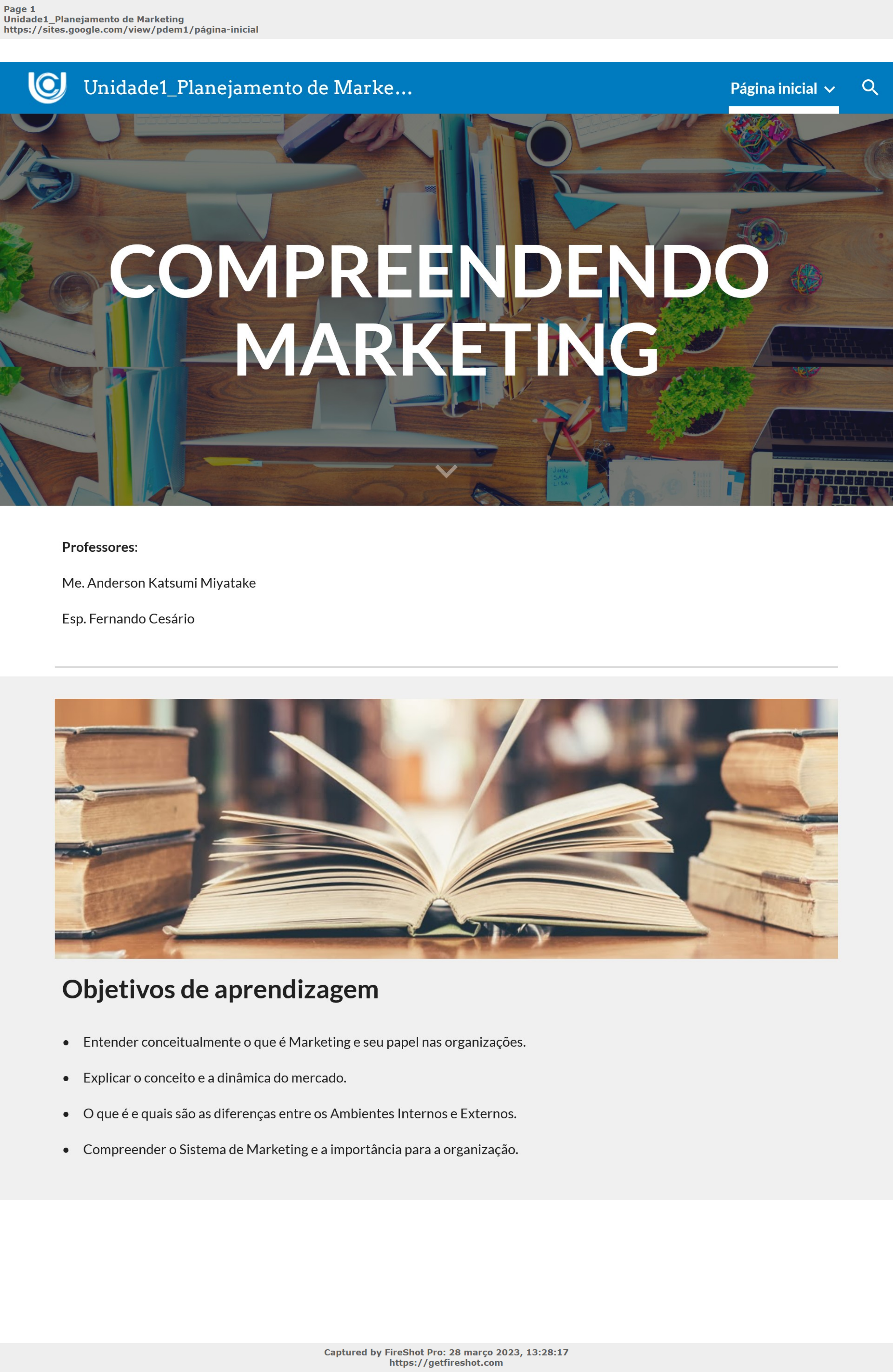 Unidade1_Planejamento de Marketing Página inicial Pular para o conteúdo principal Pular para a navegação COMPREENDENDO MARKETING Professores : Me. Anderson Katsumi Miyatake Esp. Fernando Cesário Objetivos de aprendizagem • Entender conceitualmente o que é Marketing e seu papel nas organizações. • Explicar o conceito e a dinâmica do mercado. • O que é e quais são as diferenças entre os Ambientes Internos e Externos. • Compreender o Sistema de Marketing e a importância para a organização. https://sites.google.com/view/pdem1/p�gina-inicial https://getfireshot.com https://sites.google.com/view/pdem1/p%C3%A1gina-inicial https://sites.google.com/view/pdem1/p%C3%A1gina-inicial Plano de estudo • Conceitos gerais sobre o Marketing • Definições Mercado • Ambiente de Marketing • Sistema de Marketing Introdução Antes de iniciarmos o conteúdo previsto neste livro, precisamos, primeiramente, entender alguns conceitos básicos que participam dos assuntos que aqui serão tratados. Ainda existem muitas dúvidas sobre a disciplina de marketing, o seu papel, as suas responsabilidades e o quanto deve participar ou não de discussões e ações de ordem estratégica. Neste sentido, a primeira definição conceitual que trago é sobre Marketing, pois apesar de a palavra ser amplamente difundida e comentada, poucos sabem de fato o seu real sentido, criando, em muitos casos, um erro de compreensão. Essa interpretação incorreta, via de regra, posiciona o marketing como sendo essencialmente uma disciplina de ordem criativa e publicitária, portanto, sem atribuições analíticas. De acordo com Kotler (1998, p. 27), “Marketing é um processo social e gerencial pelo qual indivíduos e grupos obtêm o que necessitam e desejam através da criação, oferta e troca de produtos de valor com outros”. Neste sentido, o marketing contemporâneo exige das empresas que suas atividades estejam além do desenvolvimento de um produto ou serviço, isto é, que seus produtos e serviços sejam adequados às necessidades dos consumidores, mas mais do que isso, que esses se conectem com seus clientes e prospects de tal forma que suas mensagens e seus atributos tragam significado neste processo e apoie as vendas. O profissional que trabalha com Marketing precisa ter uma visão integrada e apurada de todo o ambiente de marketing e conhecer de perto as forças e limitações técnicas e estruturais da sua empresa. Necessariamente, deve conhecer e monitorar seus concorrentes, assim como manter seus olhos atentos às mudanças comportamentais de clientes e prospects , além de permanecer informado quanto às questões macroambientais, economia, política e outras variáveis; só com uma visão realmente ampla e integrada do ambiente de marketing, esse poderá interferir no meio, de forma a gerar valor e, consequentemente, trazer resultados claros à organização. Somado a tudo isso, temos ainda um excesso de ofertas no mercado, marcas e produtos para os mais diversos perfis de público, enfim, uma infinidade de possibilidades que demandam esforços ainda maiores em comunicação, o que gera na contramão uma saturação de informações lançadas aos consumidores e prospects , que tornam as decisões de marketing ainda mais difíceis e, consequentemente, exigem inteligência ainda maior destes profissionais que buscam o uso de KPIs ( Key Performance Indicators ) e https://sites.google.com/view/pdem1/p�gina-inicial https://getfireshot.com métricas bem definidas para a avaliação dos resultados das ações de marketing, desde os produtos lançados até as estratégias de comunicação utilizadas. Isso tudo, porém, não é uma tarefa fácil e, ao longo desta unidade, vamos buscar elementos fundamentais, baseados na literatura e também em conteúdos mercadológicos, que permitam a ampliação da visão sobre o mercado em geral e, consequentemente, tornar mais claro o entendimento de qual é o papel do marketing em organizações dos mais diversos segmentos, tamanhos e tempo de atuação. Avançar DOWNLOAD PDF UNICESUMAR | UNIVERSO EAD https://sites.google.com/view/pdem1/p�gina-inicial https://getfireshot.com https://sites.google.com/view/pdem1/p%C3%A1gina-inicial/unidade-1 https://drive.google.com/file/d/1heucUdoUzv6Fg19WyQZUroo40vg-JfVe/view?usp=sharing Unidade1_Planejamento de Marketing Página inicial Pular para o conteúdo principal Pular para a navegação Conceitos Gerais sobre o Marketing Caro(a) aluno(a), o Marketing corresponde a um campo de estudo não somente abrangente, mas extremamente complexo e estratégico. O ambiente do marketing possui uma variedade grande de atores, mas aquele que possui maior força dentro deste cenário é o cliente, peça fundamental que determina a temperatura do mercado – oportuno e de crescimento ou escasso e recessivo. O ambiente do marketing também demonstra o quanto empresas, por meio de seus produtos e serviços, estão conseguindo se conectar positivamente com seus clientes e prospects . Para Las Casas (2006, p. 10), o conceito de Marketing: [...] engloba todas as atividades concernentes às relações de troca, orientadas para a satisfação dos desejos e necessidades dos consumidores, visando alcançar determinados objetivos de empresas ou indivíduos e considerando sempre o ambiente de atuação e o impacto que essas relações causam no bem estar social. Existem dois aspectos importantes na citação. O primeiro é o ambiente de atuação. O gestor de marketing deve considerar a situação e as condições do momento e as perspectivas do futuro, para que possa intervir no ambiente de modo a trazer o maior número de benefícios para os clientes, desde que não acarrete em prejuízos graves para a organização. O outro é o impacto na sociedade, pois, com a preocupação atual de sustentabilidade e preservação do ambiente, a atividade de marketing não mais se restringe só ao aumento do consumo, mas de incentivar e realizar ações 